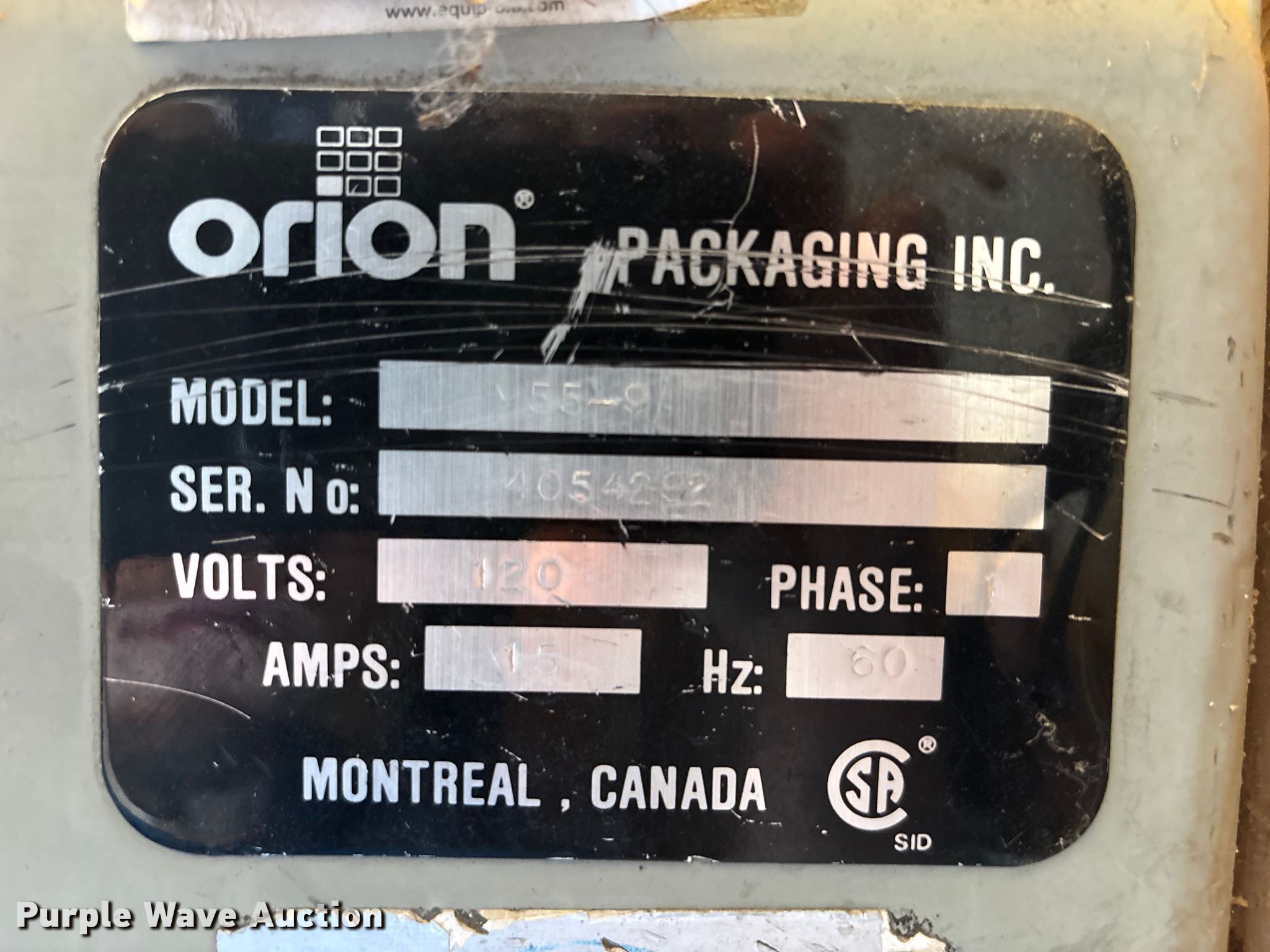 Purple Wave is selling a used Other Industrial or Business in Missouri. This item is a Orion 55-9 pallet wrap machine with the following: Serial: 4054292