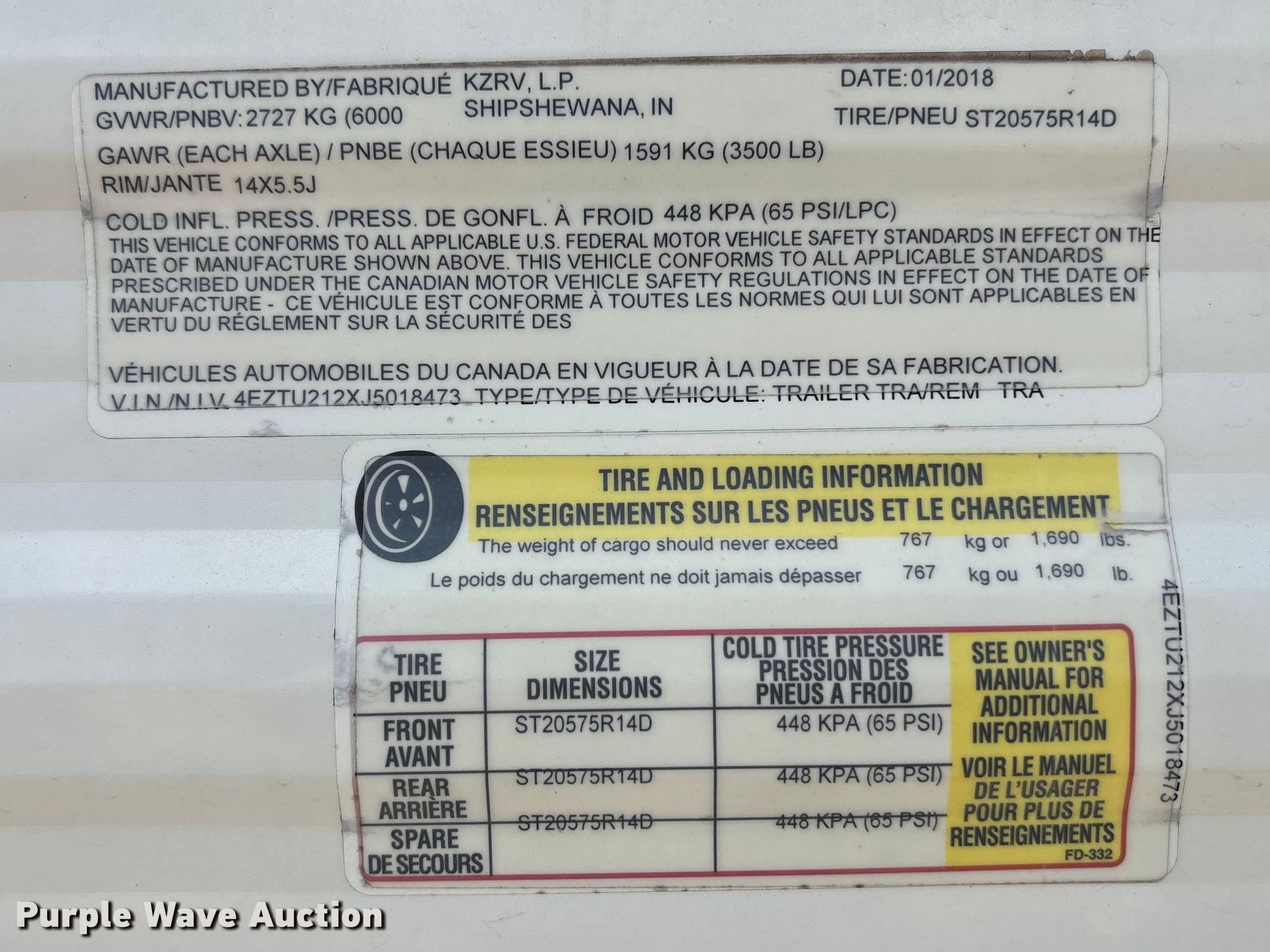 2018 Kz-rv Sportsmen camper | Wednesday April 08 Vehicles and Equipment Auction