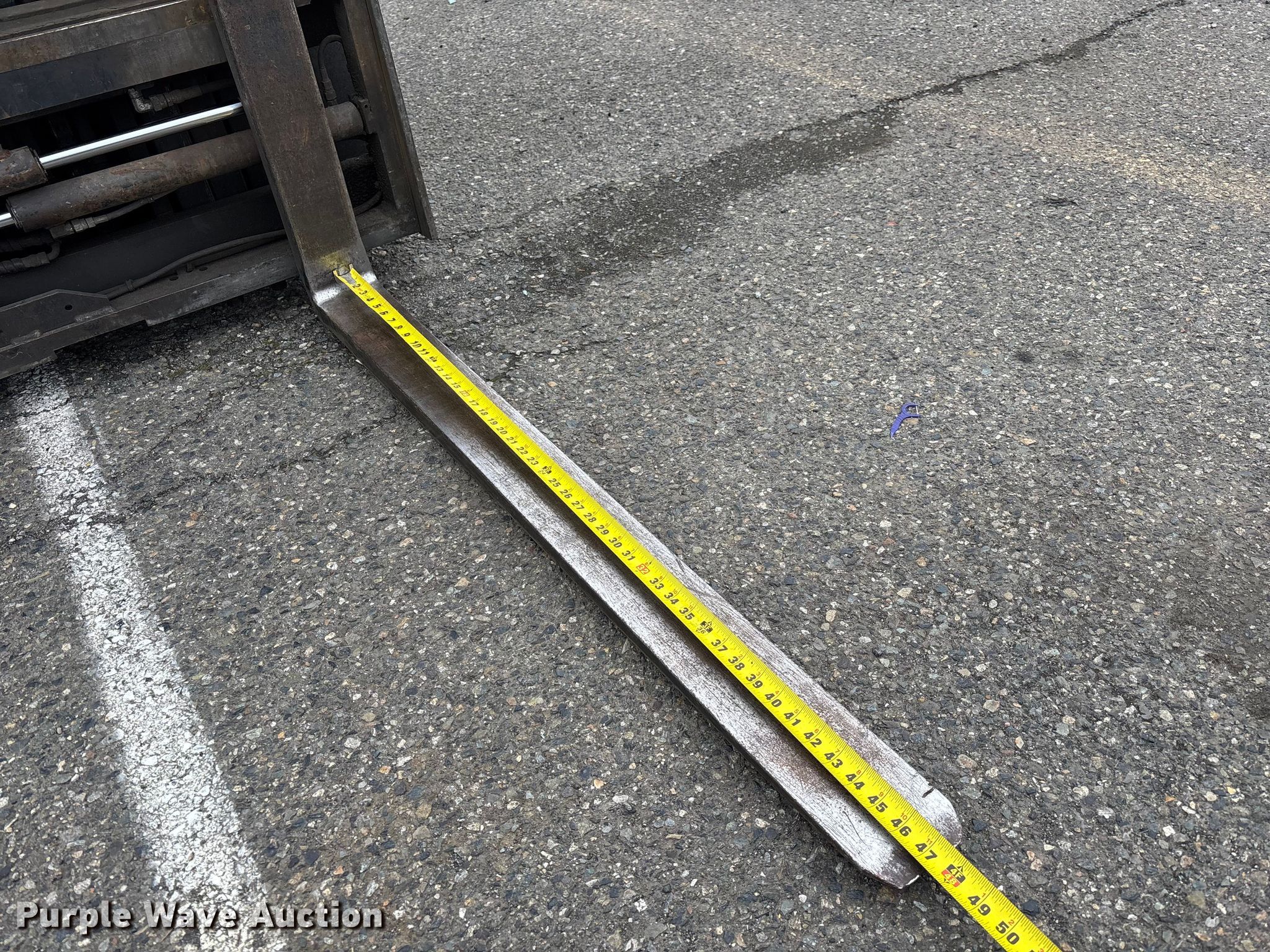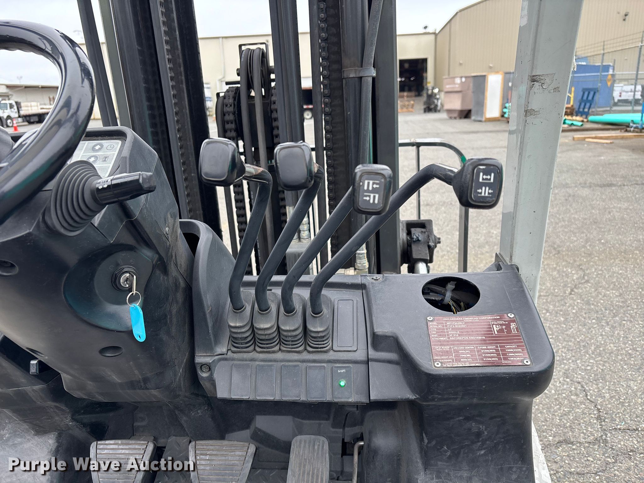 2017 UniCarriers PF50 forklift. Hours: 8,616 on meter, Miles or hours may vary, unit still in use, Serial: P1F2-9H22601, Unit #: SFS3014. Engine GCT K21L, Displacement: 2.1L, Cylinders: 4, Fuel type: LPG LP bottle: Not included. Transmission Automatic. Operators station OROPS, Canopy. Features Maximum lift capacity: 3,325 lbs, Maximum lift height: 203", Collapsed mast height: 89", Mast stages: 3, Side shift, Mast tilt, Fork positioner, Fork length: 48". Tires Front: 7.00-12, Rear: 6.00-9, Solid. Notes Warning indicator: Master warning, Oil pressure. Ferguson. Seattle, WA 98106