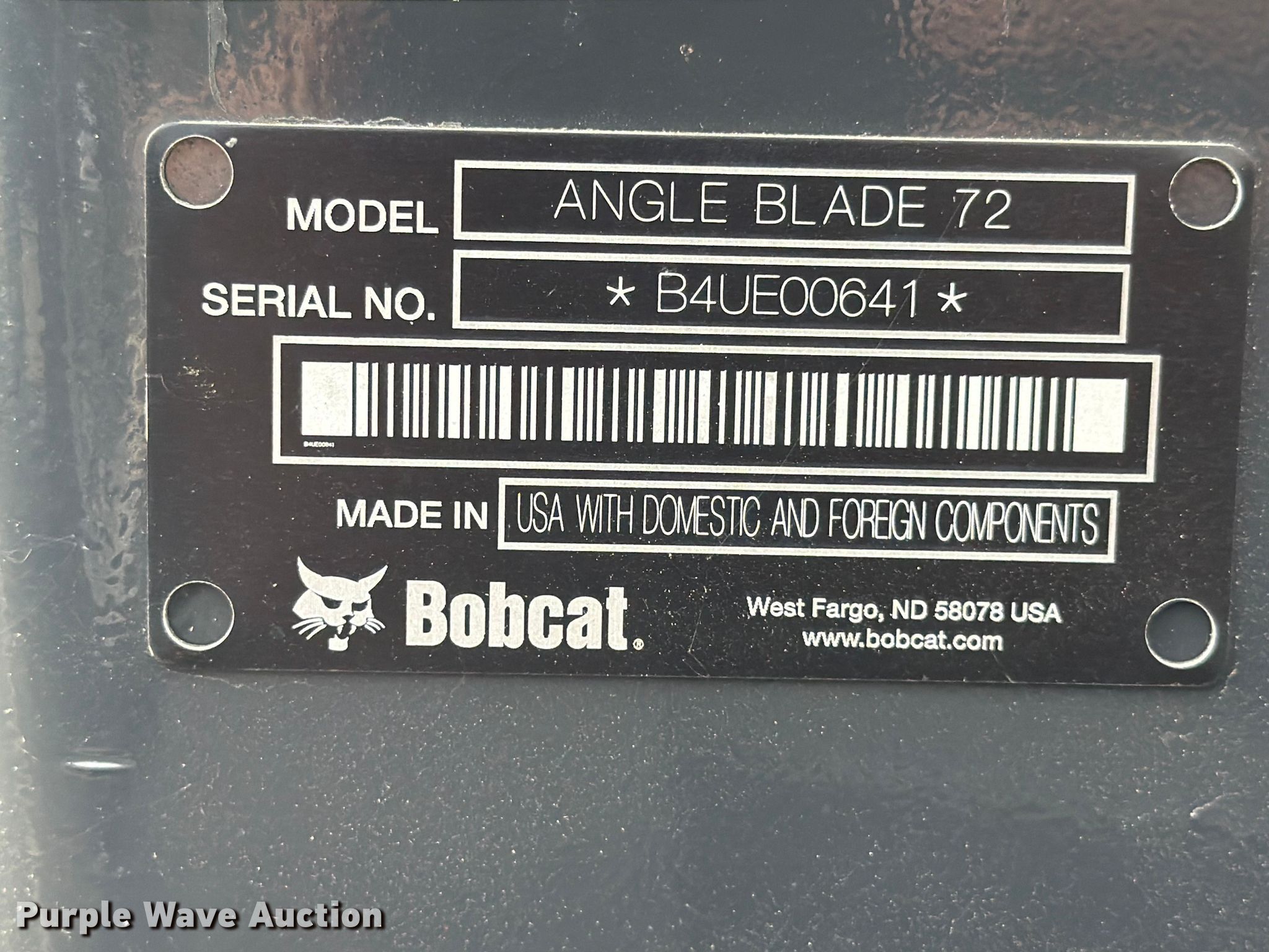 Purple Wave is selling a used Ag Equip. Other in Texas. This item is a Bobcat Angle Blade 72 three point blade with the following: Serial: B4UE00641, Unit #: 1296086