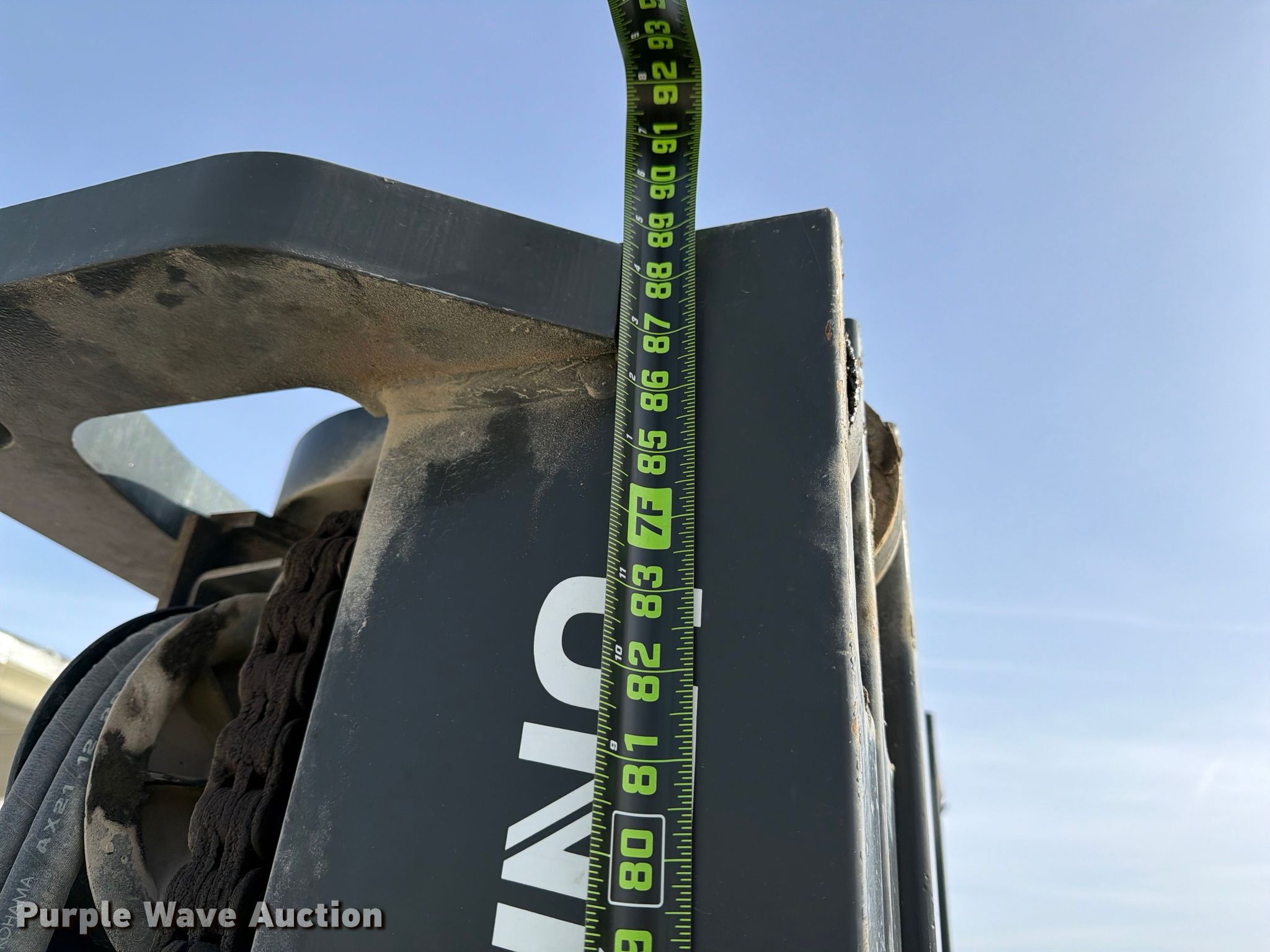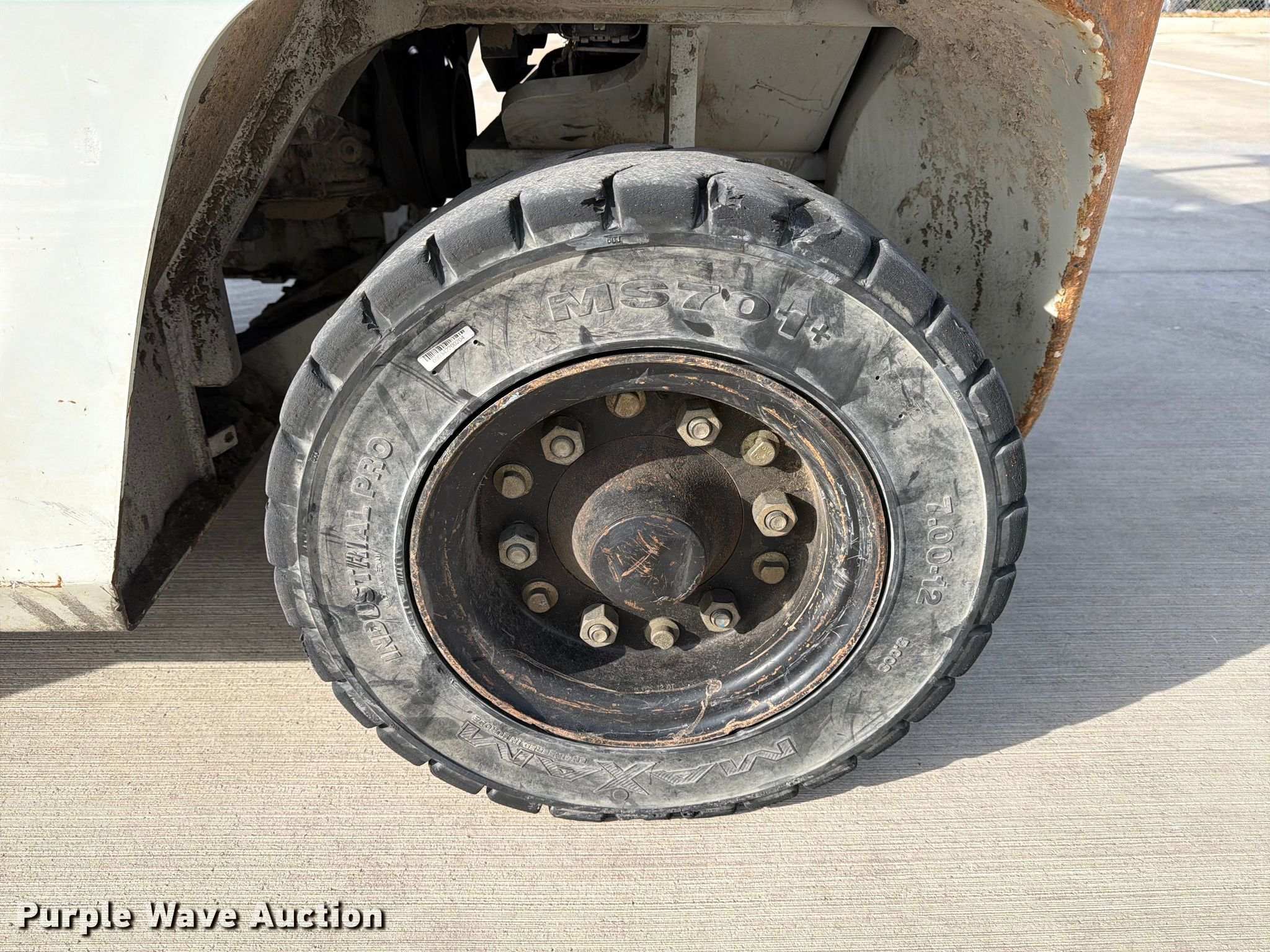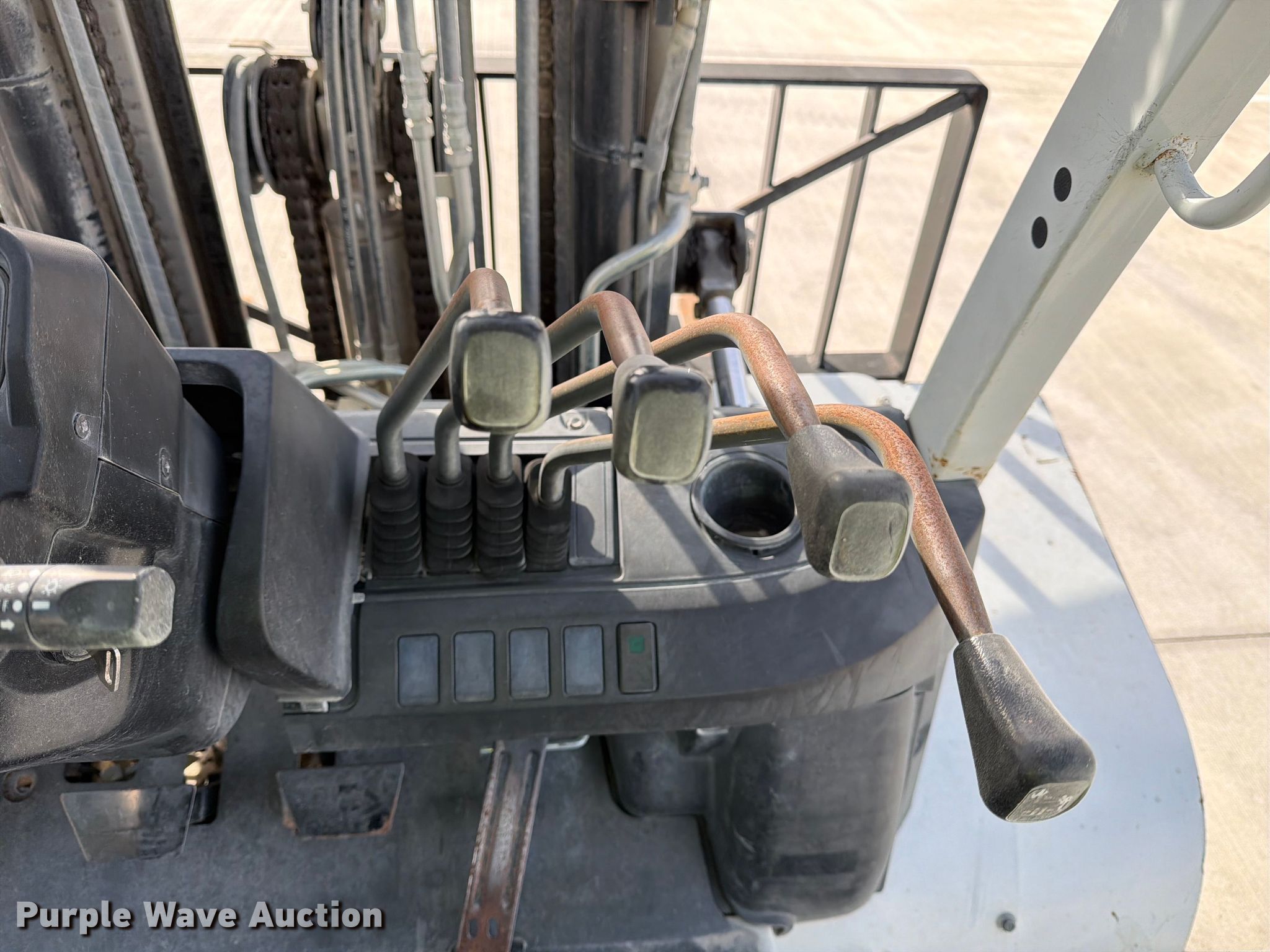 2018 UniCarriers PF80YLP forklift. Hours: 3,643 on meter, Serial: J1F4-981861, Unit #: SFS3113. Engine GCT TB45 L, Displacement: 4.5L, Cylinders: 5, Fuel type: LPG LP bottle: Not included. Transmission Automatic. Operators station OROPS, Canopy. Features Maximum lift capacity: 7,270 lbs, Maximum lift height: 187", Collapsed mast height: 89", Mast stages: 3, Side shift, Mast tilt, Fork positioner, Fork length: 59". Tires Front: 8.25-15, Rear: 7.00-12, Solid. Notes Warning indicator: Master warning, Brake. Ferguson. San Marcos, TX 78666