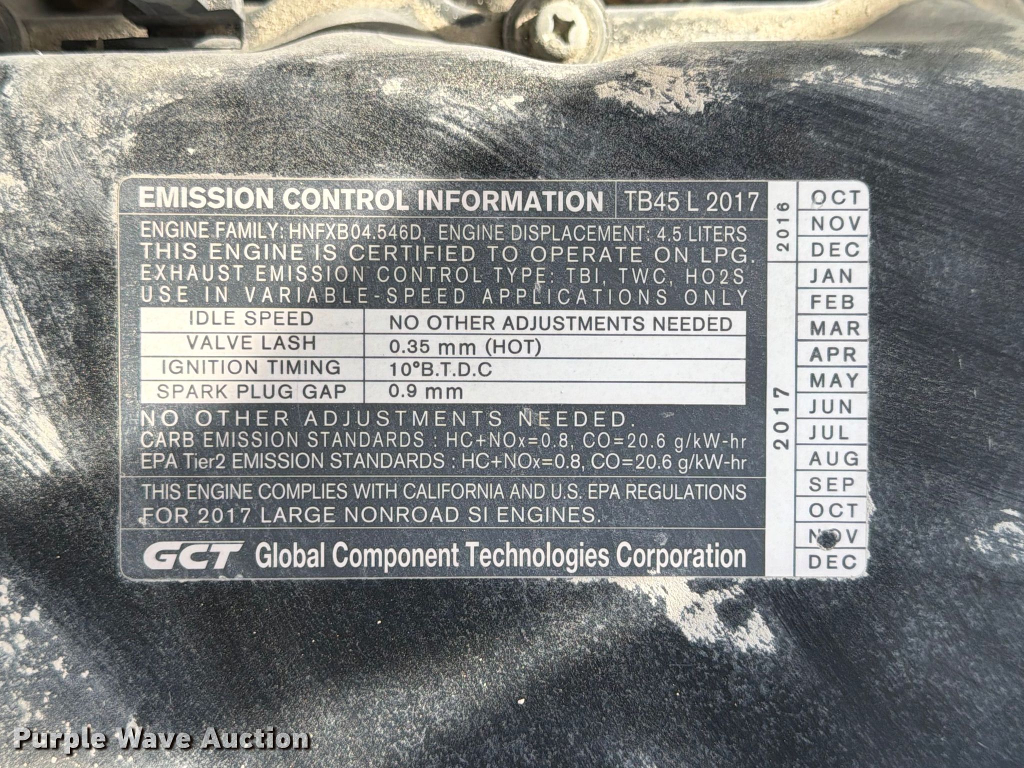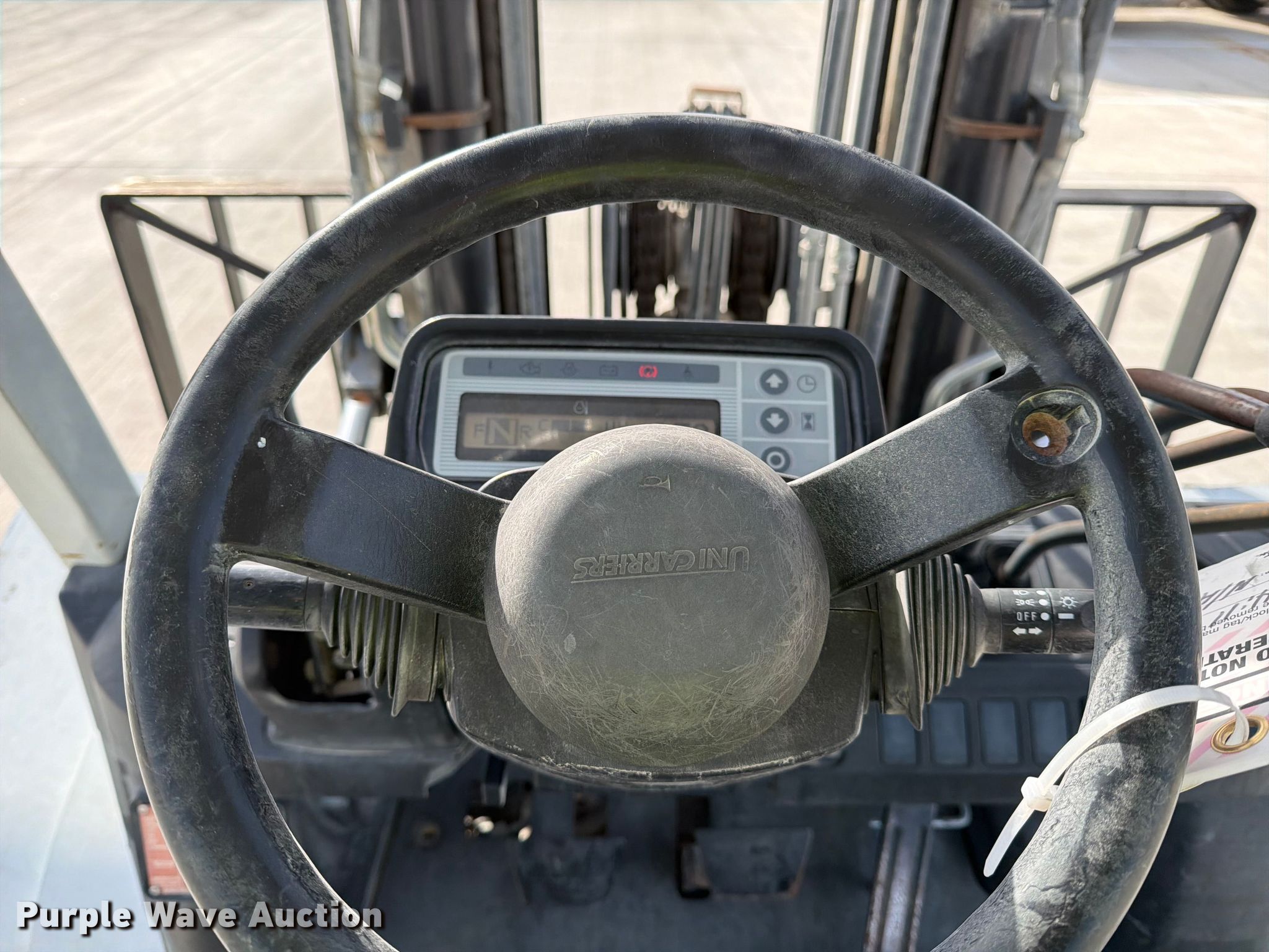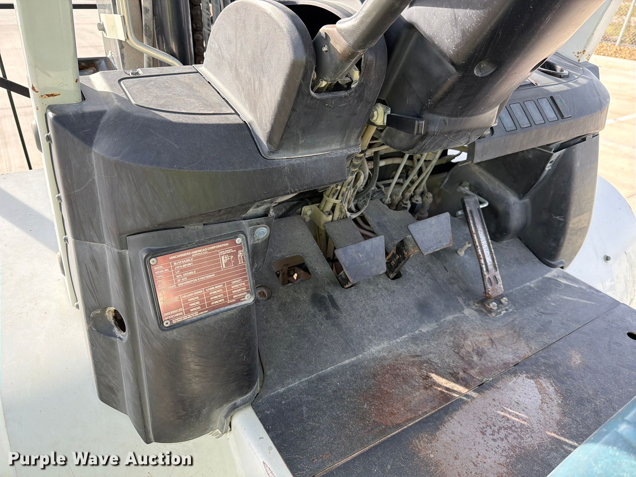 2018 UniCarriers PF80YLP forklift. Hours: 3,643 on meter, Serial: J1F4-981861, Unit #: SFS3113. Engine GCT TB45 L, Displacement: 4.5L, Cylinders: 5, Fuel type: LPG LP bottle: Not included. Transmission Automatic. Operators station OROPS, Canopy. Features Maximum lift capacity: 7,270 lbs, Maximum lift height: 187", Collapsed mast height: 89", Mast stages: 3, Side shift, Mast tilt, Fork positioner, Fork length: 59". Tires Front: 8.25-15, Rear: 7.00-12, Solid. Notes Warning indicator: Master warning, Brake. Ferguson. San Marcos, TX 78666