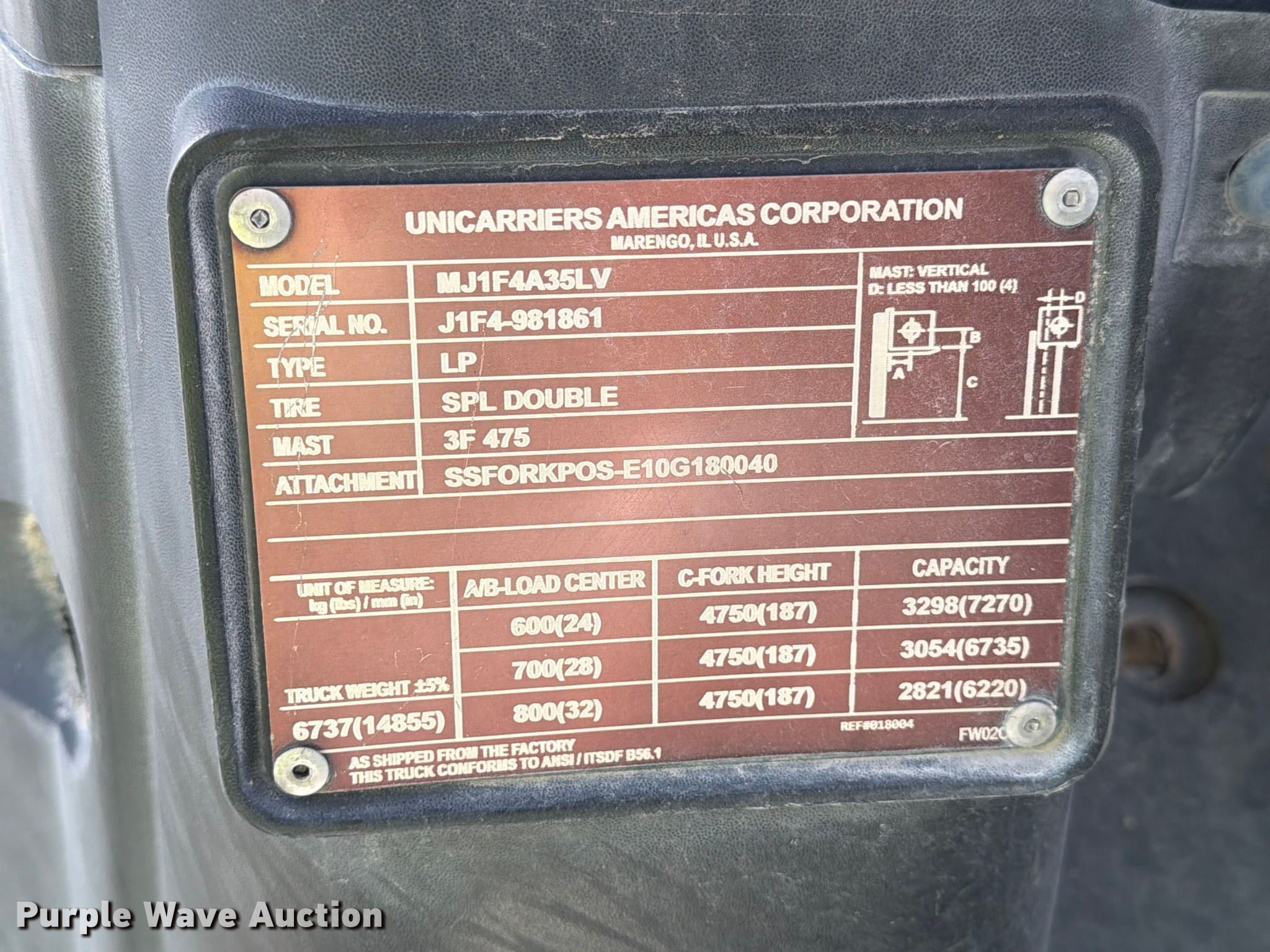 2018 UniCarriers PF80YLP forklift for sale in San Marcos, Texas. Item FB8013 will sell on April 8th, 2026.