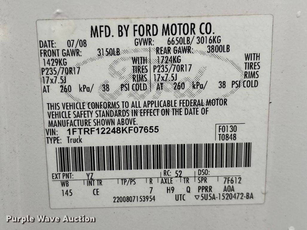 Take a look at this used 2008 Ford F150 pickup truck being sold on April 8th, 2026 in the Wednesday April 08 Vehicles and Equipment Auction made by Ford. Take a look at all of the item information below or take a look at similar auctions for Pickups and Vans.