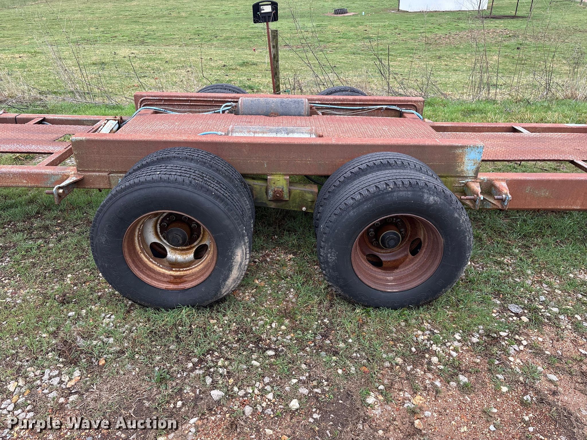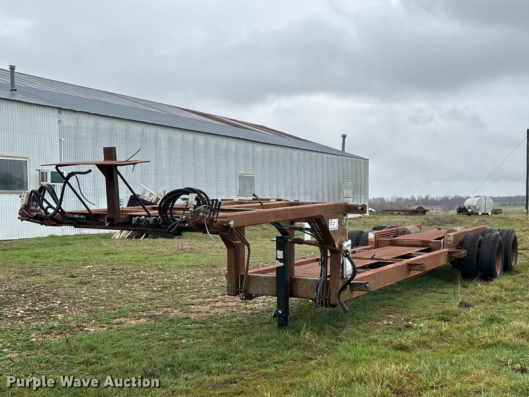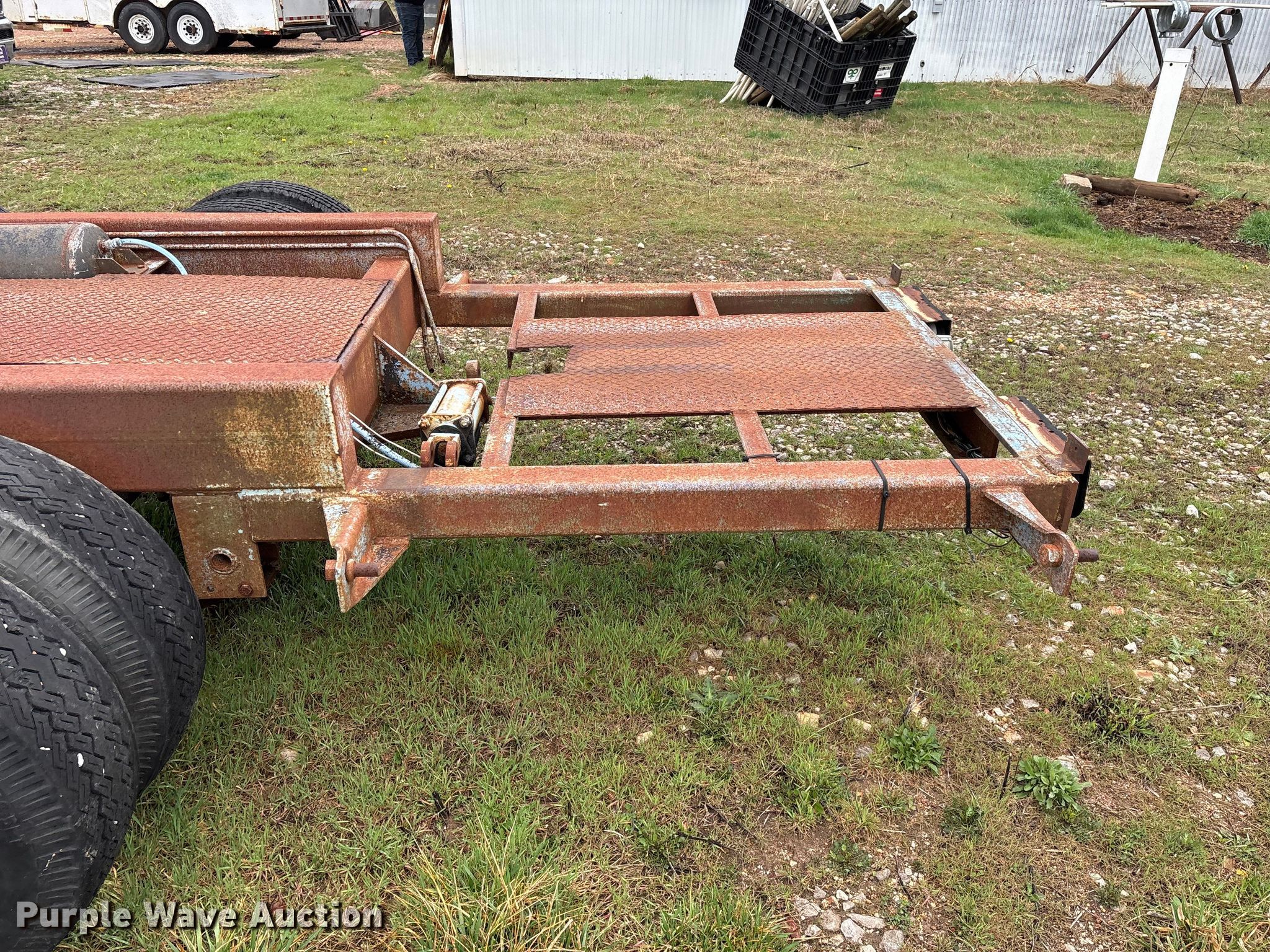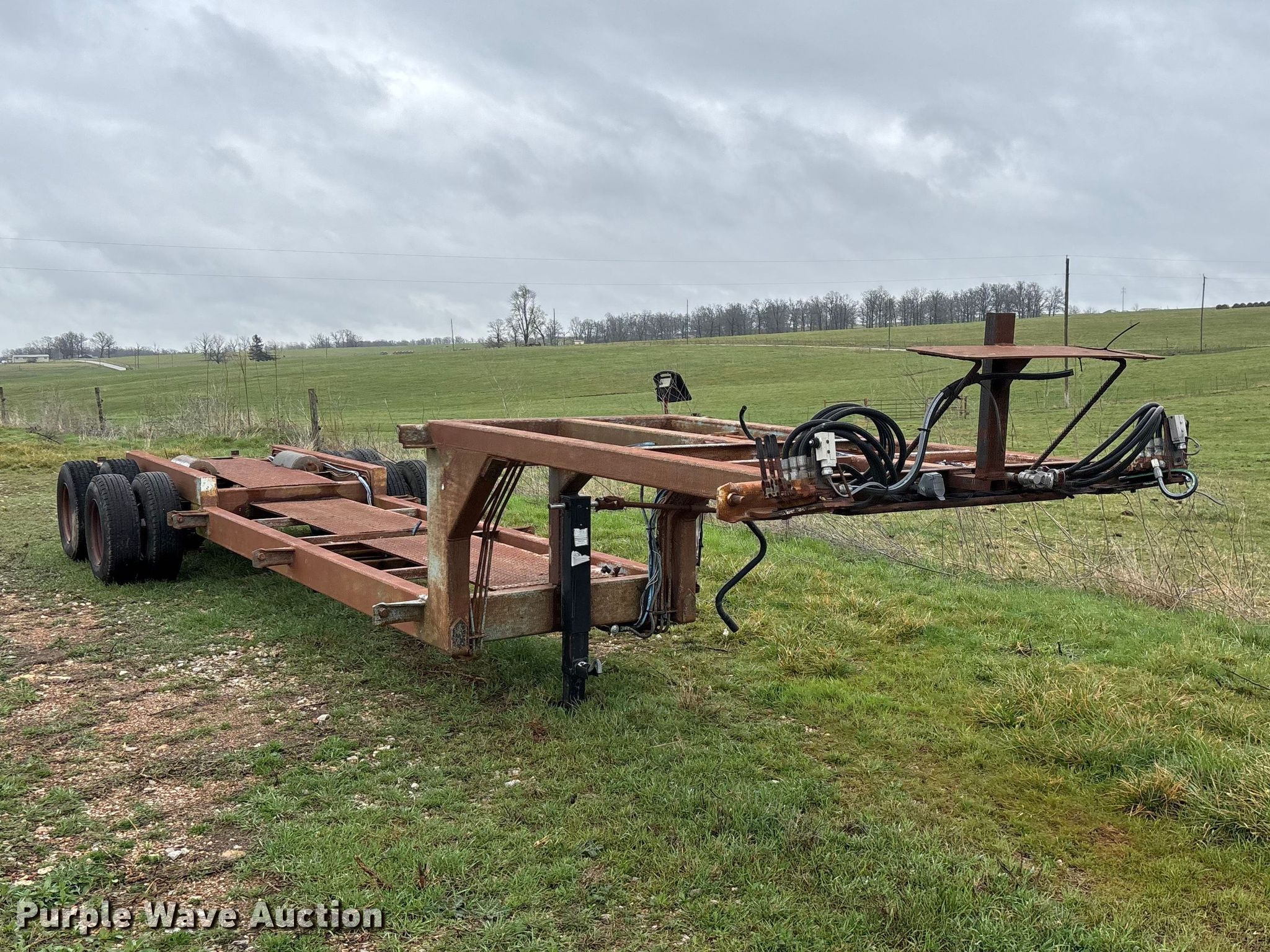 1987 Shop built trailer. VIN: DRX000089304MO. Dimensions Overall Length: 32' 10", Width: 93", Deck Length: 23' 9", Width: 50", Deck height: 30". Features Deck type: Steel. Chassis Landing gear: Single, Suspension: Spring, Brakes: Air, Axles: Tandem. Tires Steel wheels, Size: 9.50R16.5LT. Notes Unknown operating condition of self-contained hydraulics. Missouri title. Title distribution may be delayed up to 14 days from verification of funds. Aurora, MO 65605