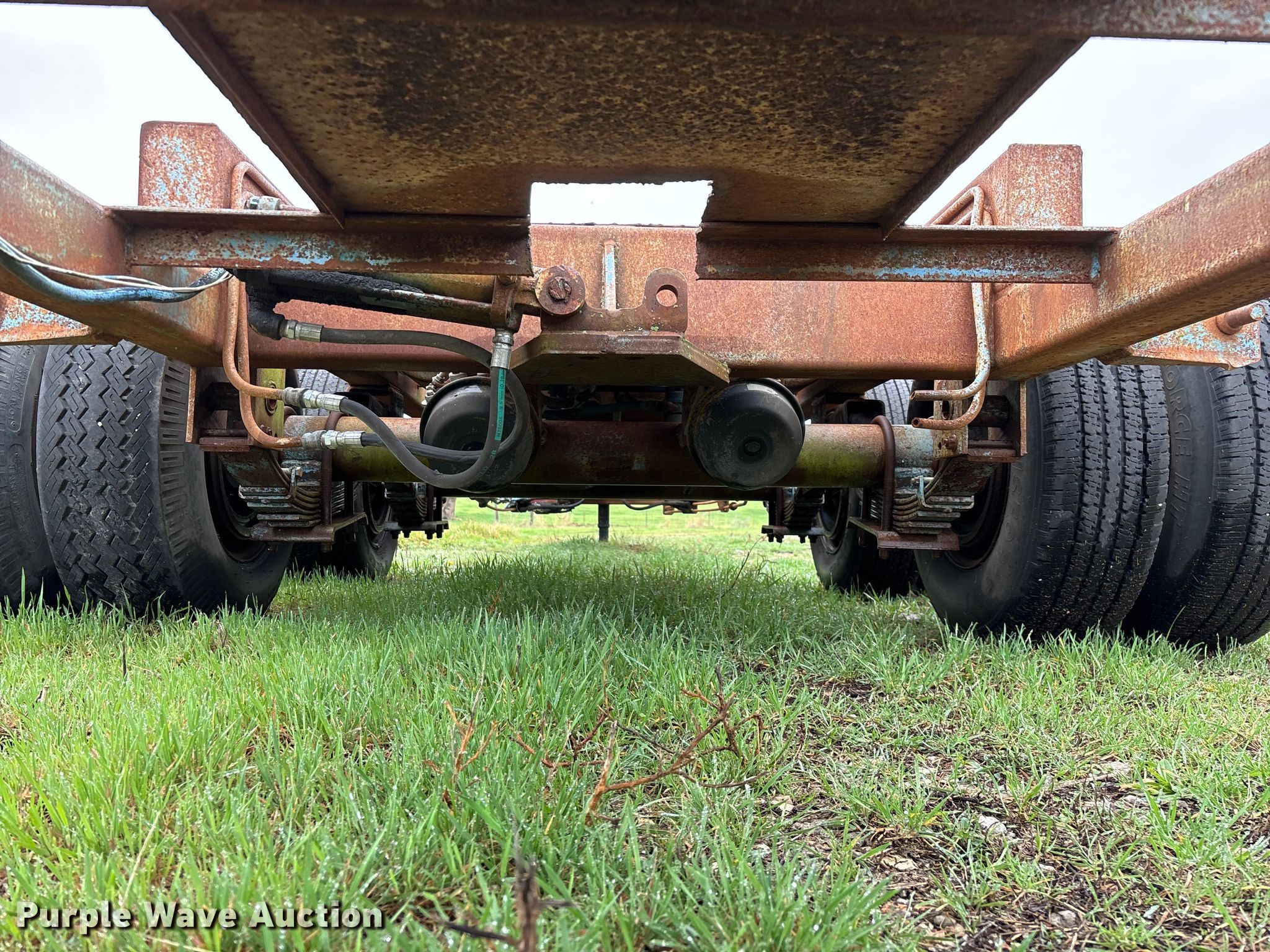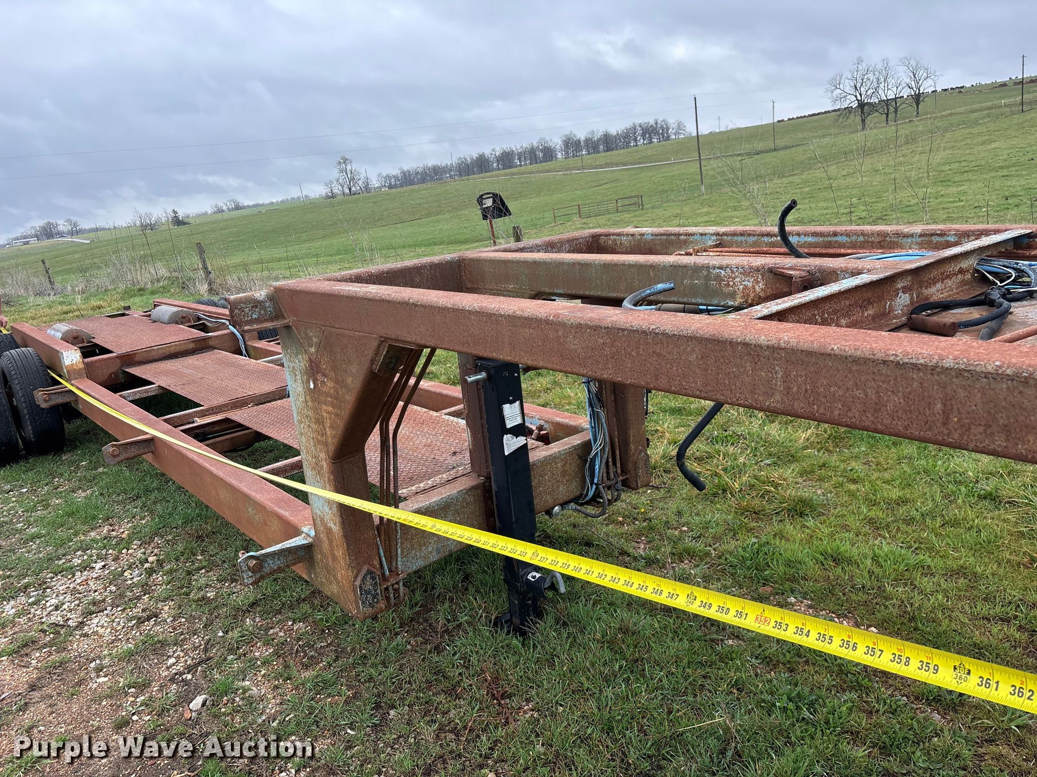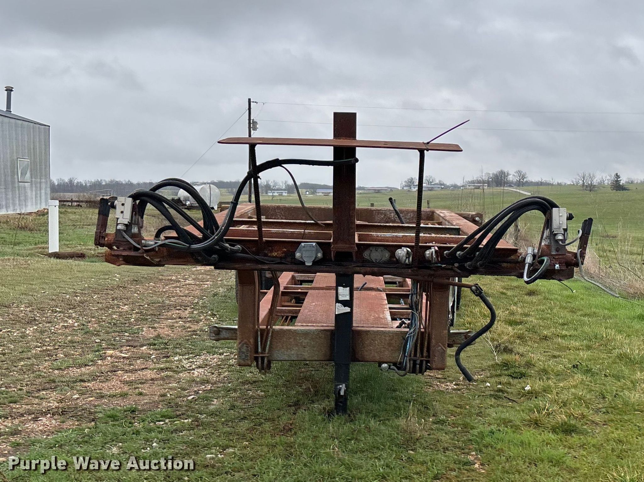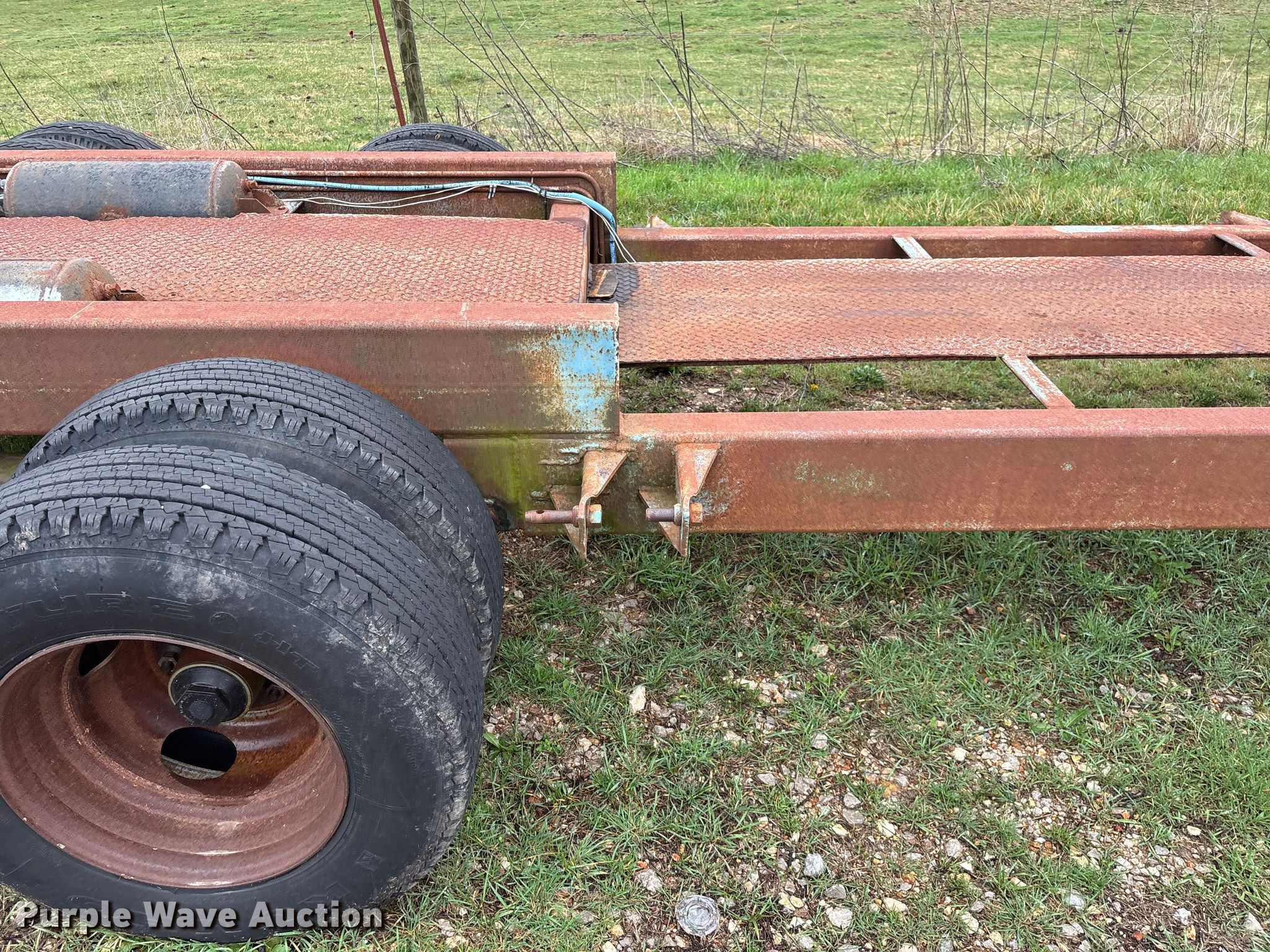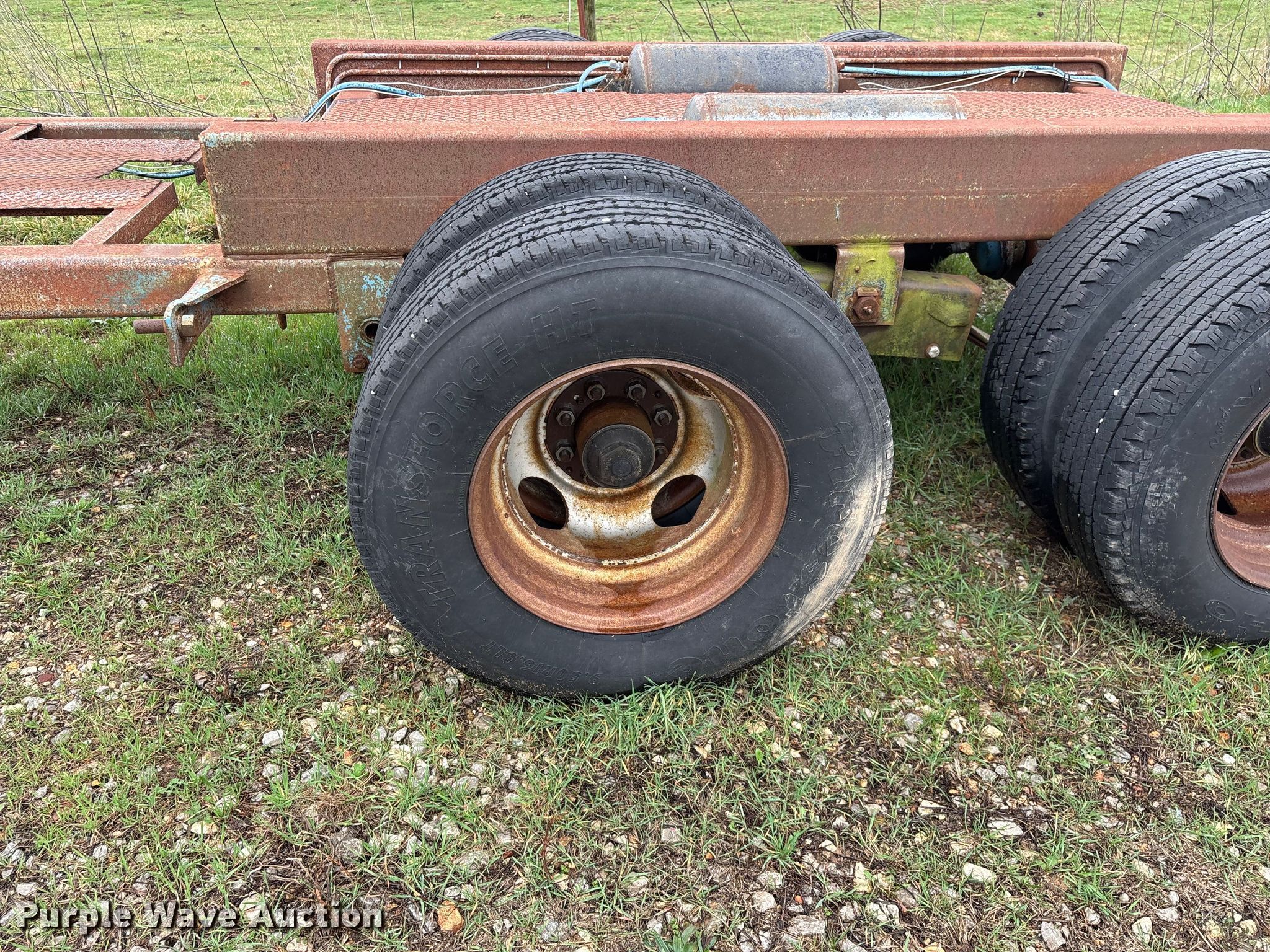 1987 Shop built trailer. VIN: DRX000089304MO. Dimensions Overall Length: 32' 10", Width: 93", Deck Length: 23' 9", Width: 50", Deck height: 30". Features Deck type: Steel. Chassis Landing gear: Single, Suspension: Spring, Brakes: Air, Axles: Tandem. Tires Steel wheels, Size: 9.50R16.5LT. Notes Unknown operating condition of self-contained hydraulics. Missouri title. Title distribution may be delayed up to 14 days from verification of funds. Aurora, MO 65605