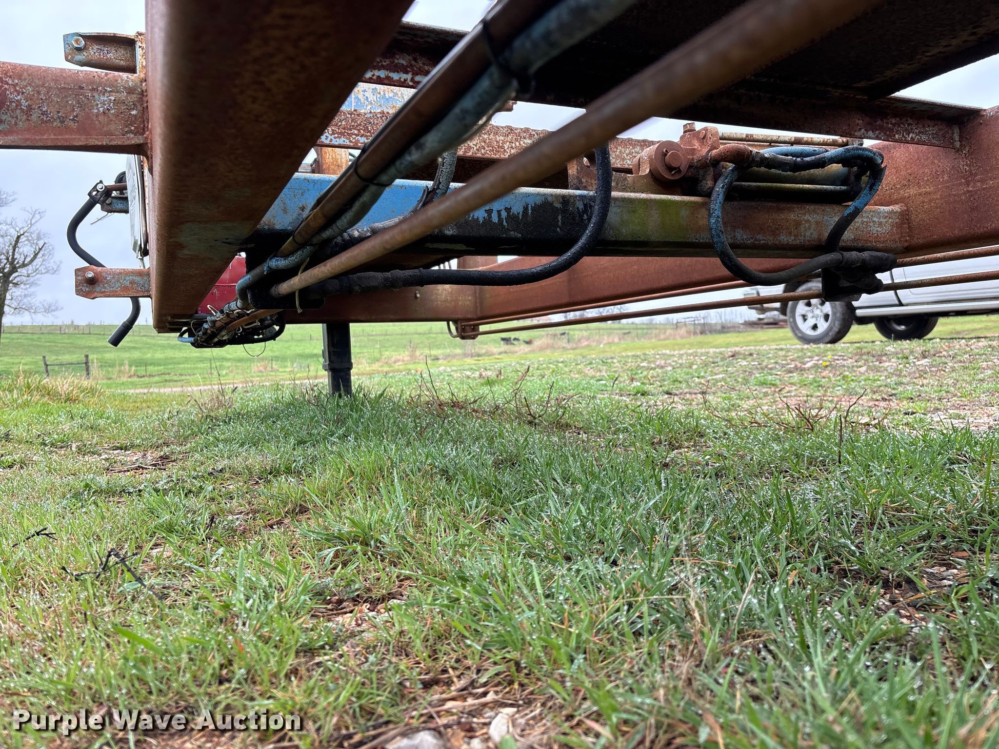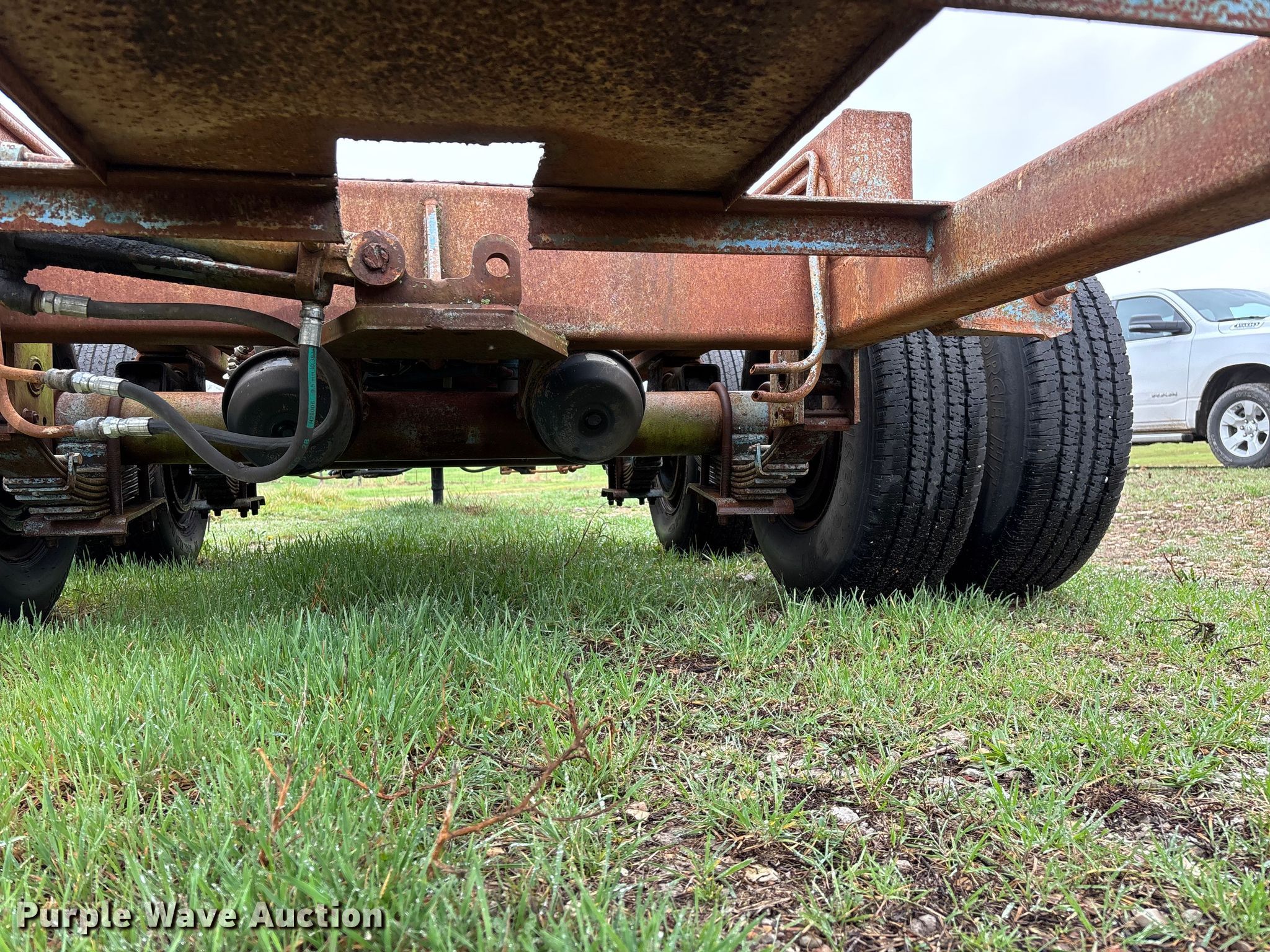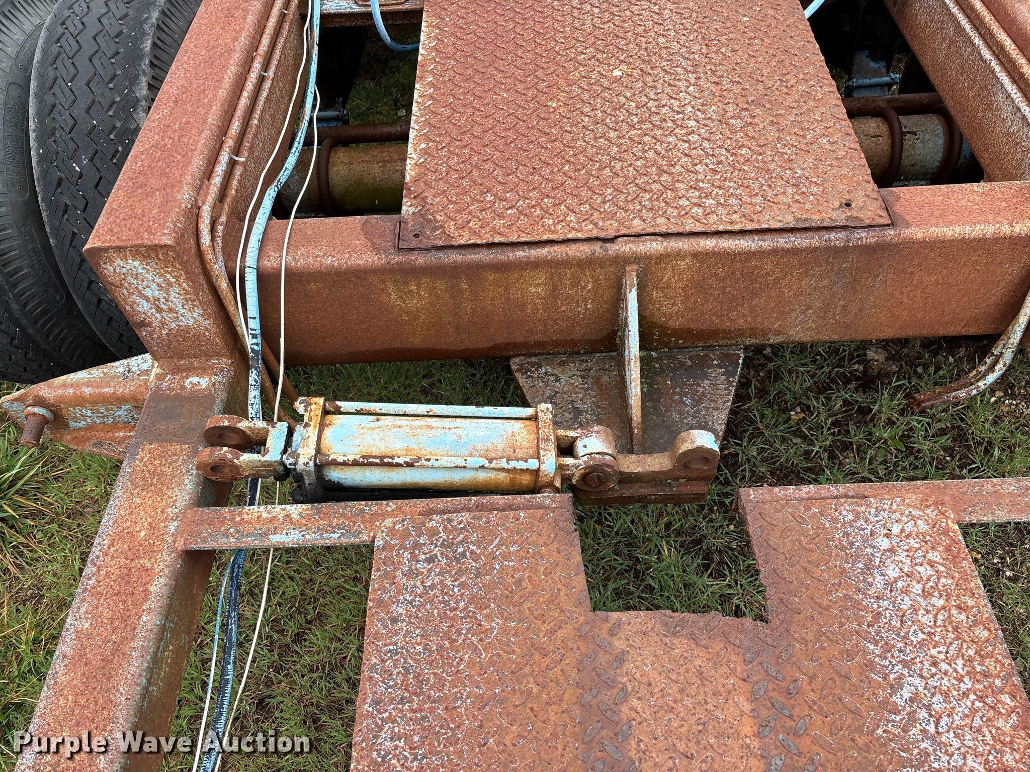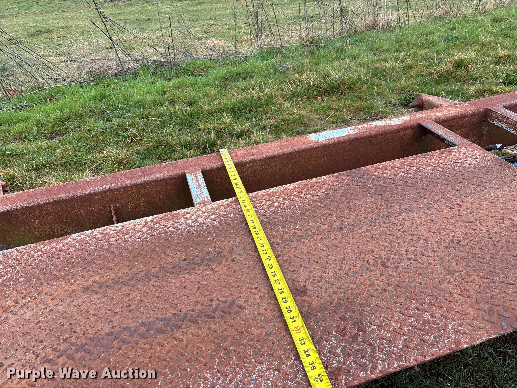 1987 Shop built trailer. VIN: DRX000089304MO. Dimensions Overall Length: 32' 10", Width: 93", Deck Length: 23' 9", Width: 50", Deck height: 30". Features Deck type: Steel. Chassis Landing gear: Single, Suspension: Spring, Brakes: Air, Axles: Tandem. Tires Steel wheels, Size: 9.50R16.5LT. Notes Unknown operating condition of self-contained hydraulics. Missouri title. Title distribution may be delayed up to 14 days from verification of funds. Aurora, MO 65605