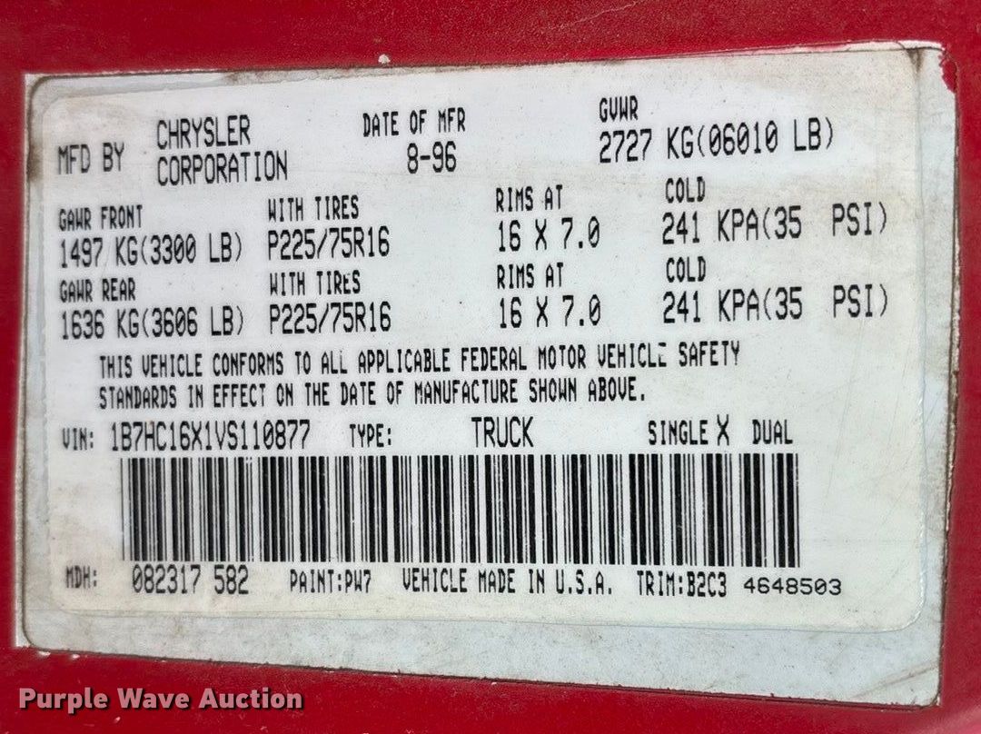 Purple Wave is selling a used 1/2 Ton Pickup or Van in Missouri. This item is a 1997 Dodge Ram 1500 pickup truck with the following: Miles: 110,970 on odometer, VIN: 1B7HC16X1VS110877, Unit #: 05