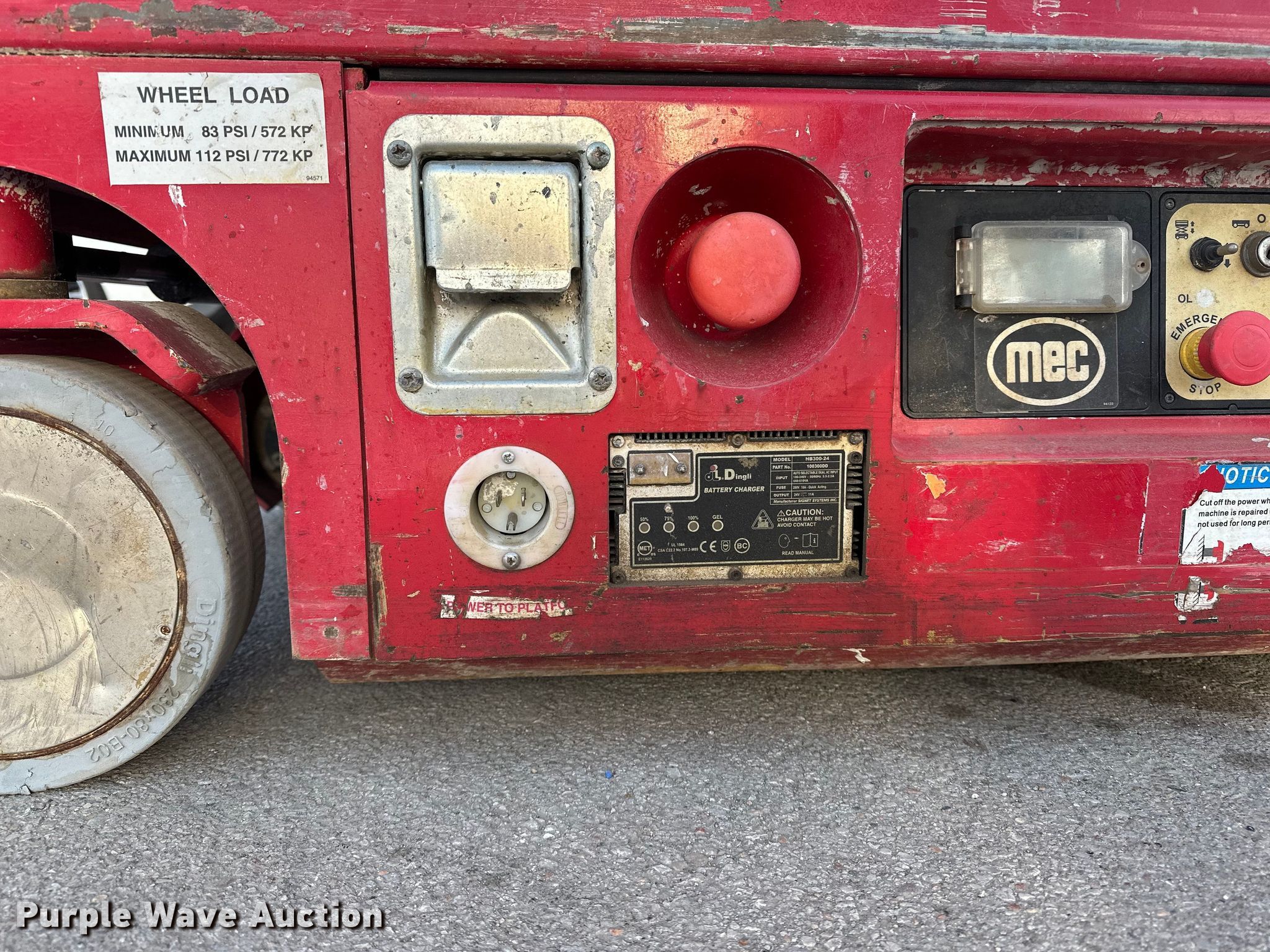 2018 MEC 1330SE scissor lift. Serial: 16302048. Electric Motor Volts: 24. Features Maximum lift capacity: 500 lbs, Maximum lift height: 13', Platform: 51" L x 27" W, AC power outlet, Controls: Platform, Platform extensions: Manual. Tires Tire size: 230x80-B02, Solid. Jordan Truck and Equipment. Waterloo, NE 68069