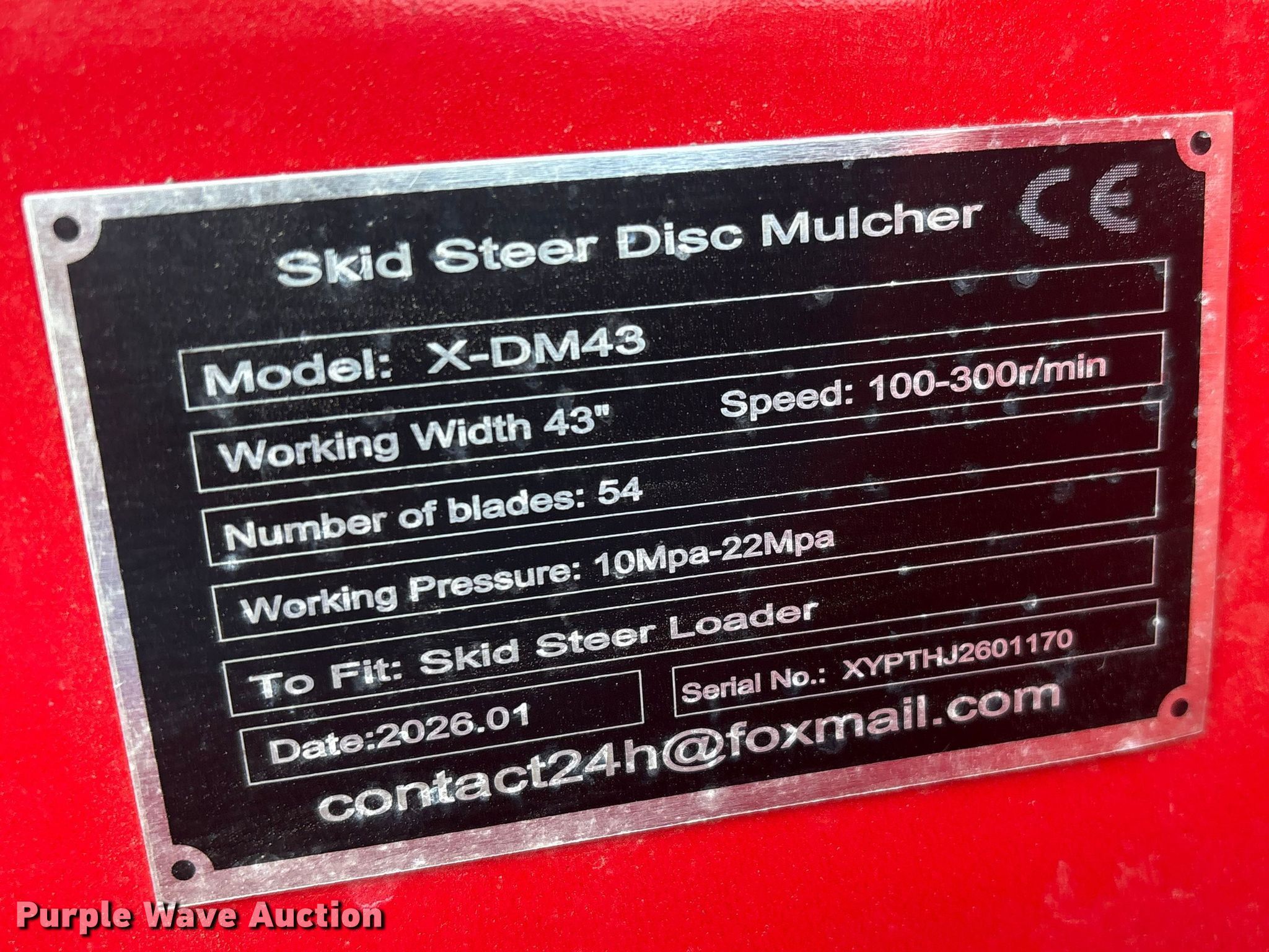 Purple Wave is selling a used Skid Steer Attach. in Nebraska. This item is a 2026 Giyi X-DM43 skid steer mulcher with the following: Serial: XYPTHJ2601170, Width: 41"