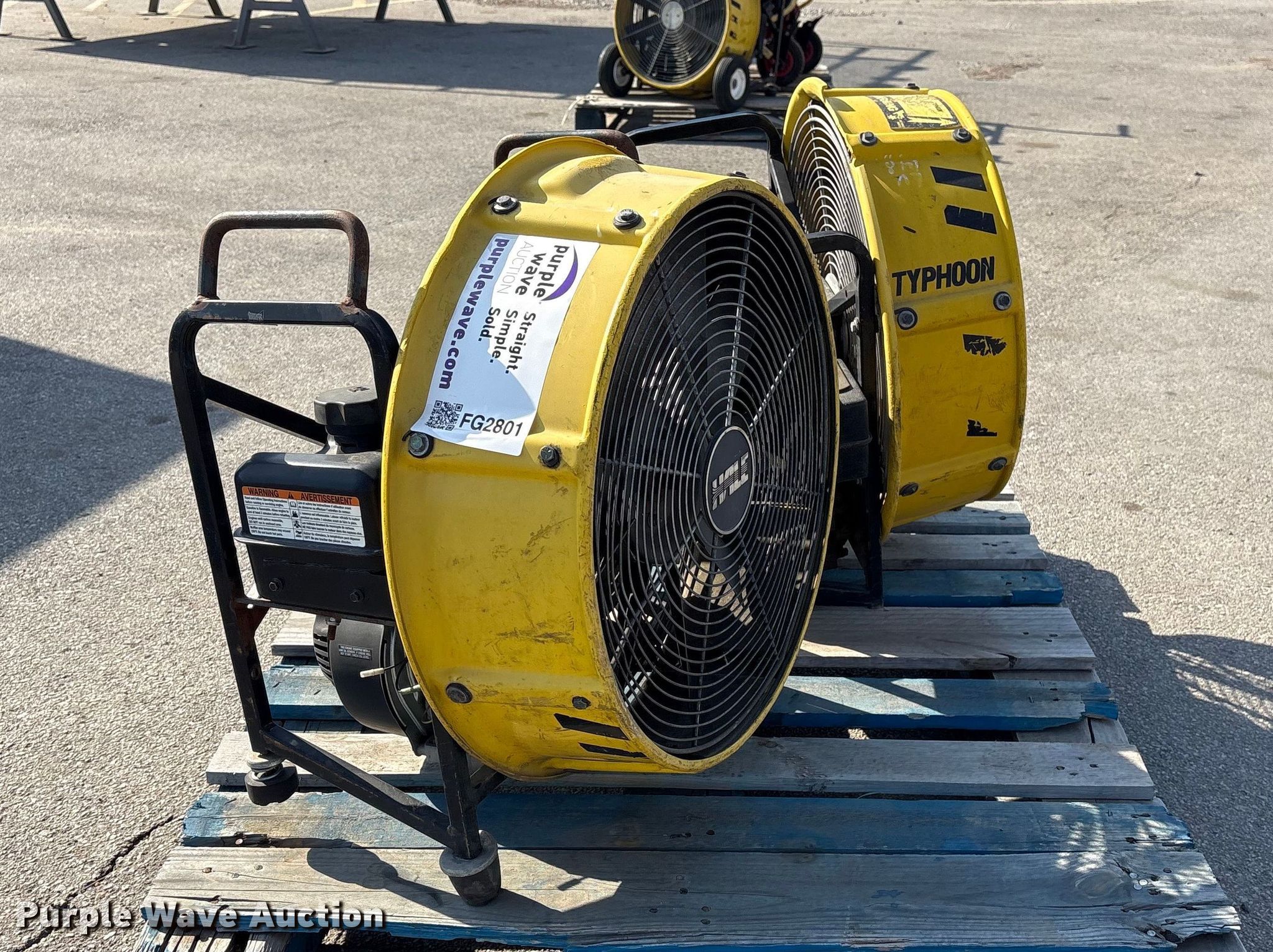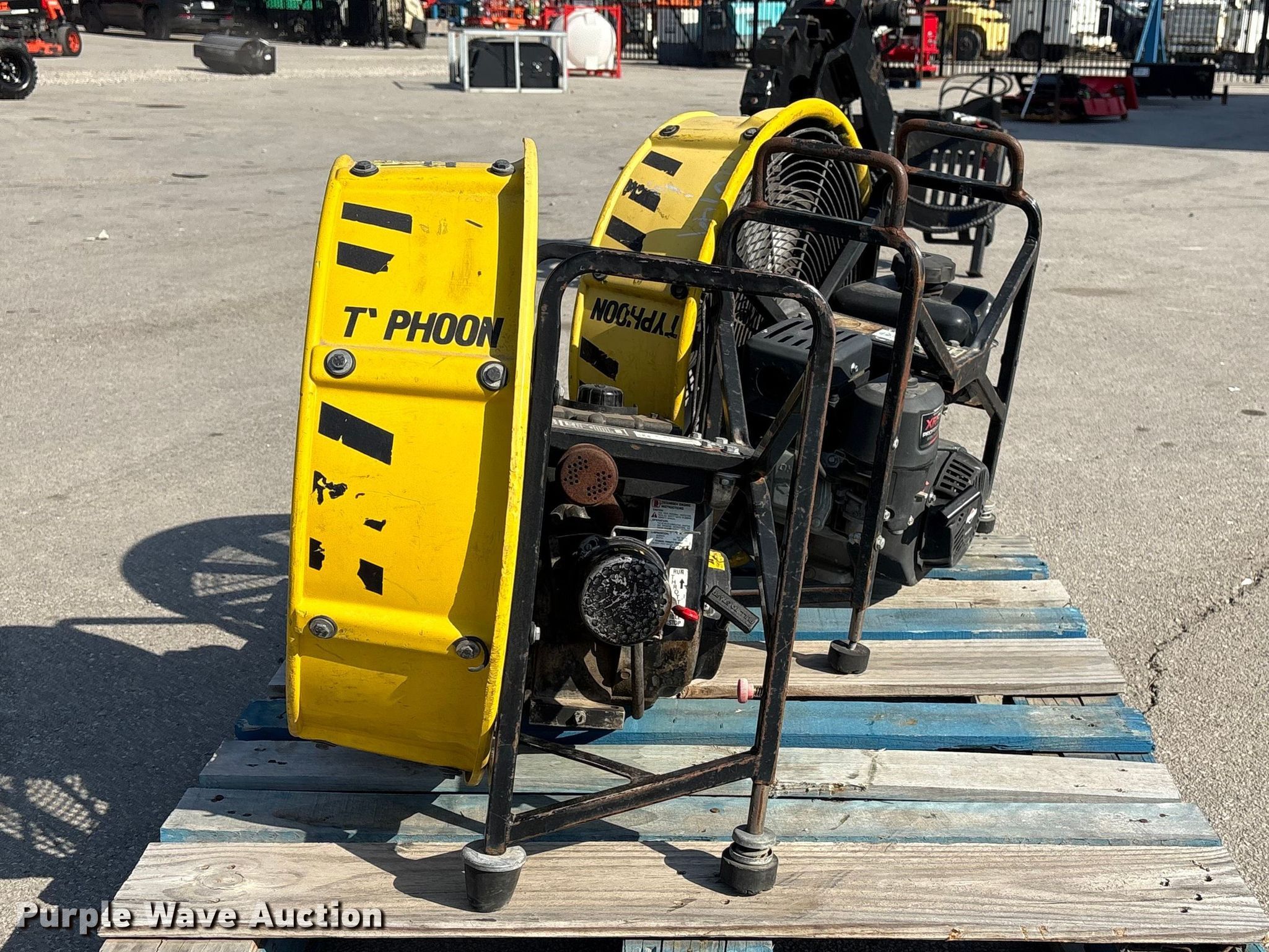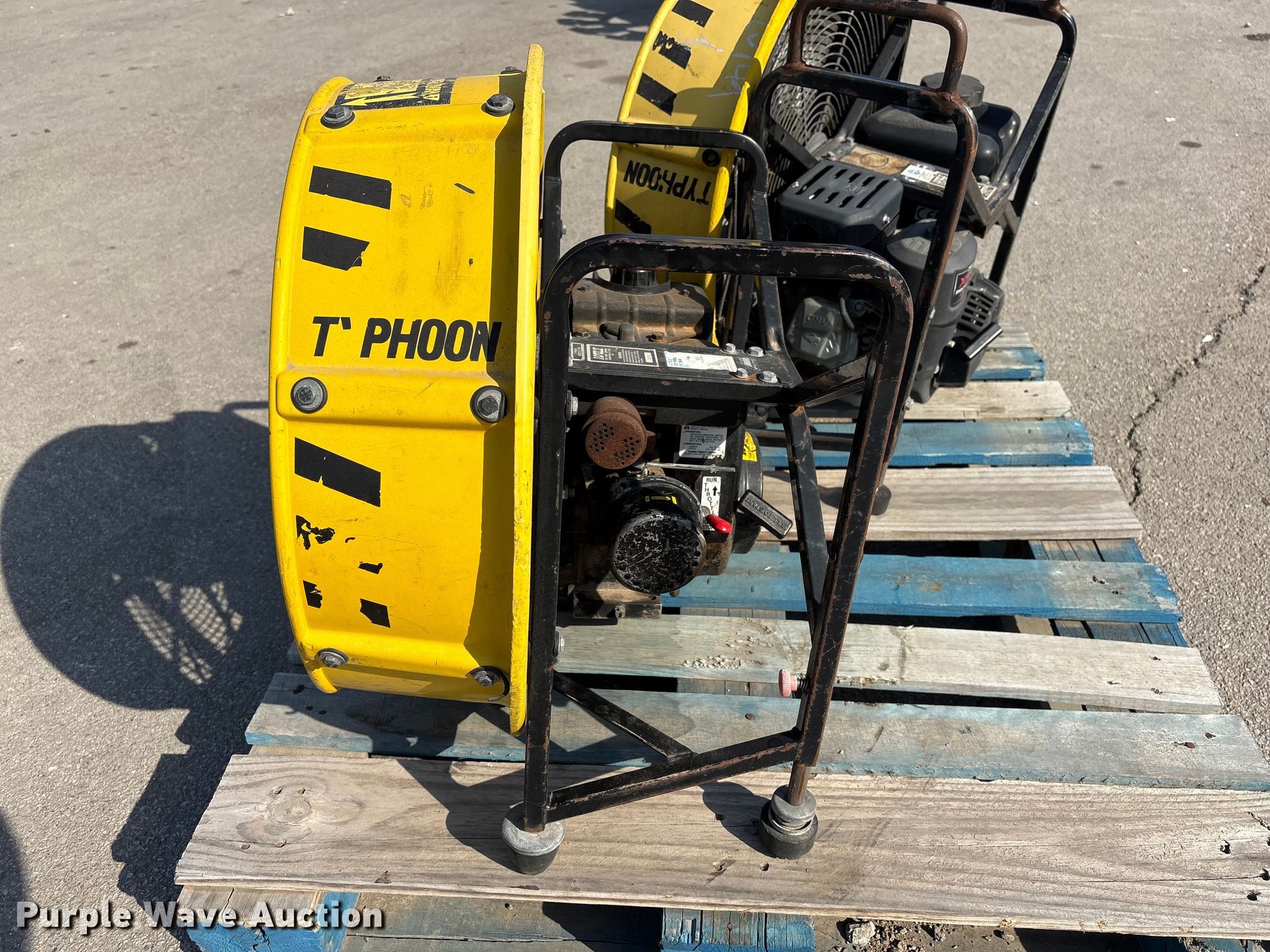 (2) fans. Typhoon 21T5A. Serial: T16791. Engine Tecumseh HP: 5.0. Typhoon 21T5A Serial: T18564. Engine Briggs & Stratton XR950 Displacement: 208cc. Notes Non-operational unit. Jordan Truck and Equipment. Waterloo, NE 68069