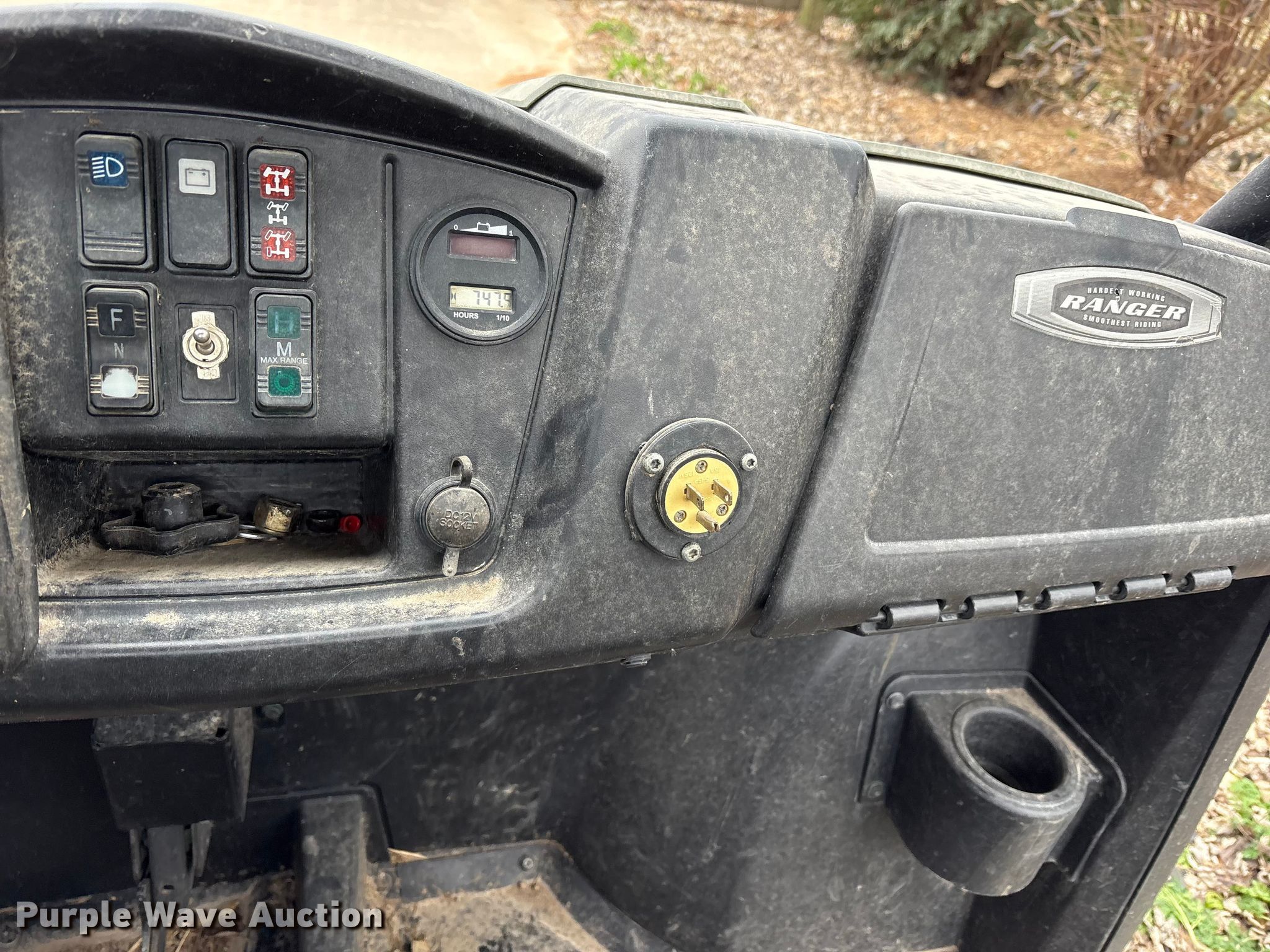 2013 Polaris Ranger EV utility vehicle. Hours: 747 on meter, VIN: 4XARC08G6DE215432. Electric Motor Chassis Four wheel drive/ All wheel drive. Operators station Canopy. Features Dump bed 33" L x 46" W, Dump bed type: Manual. Tires Size: 25x9.00-2. Notes Dead battery, Batteries need replaced. Transfer of ownership documentation will be a bill of sale. Haymarket By Ashbourne Farms. La Grange, KY 40031