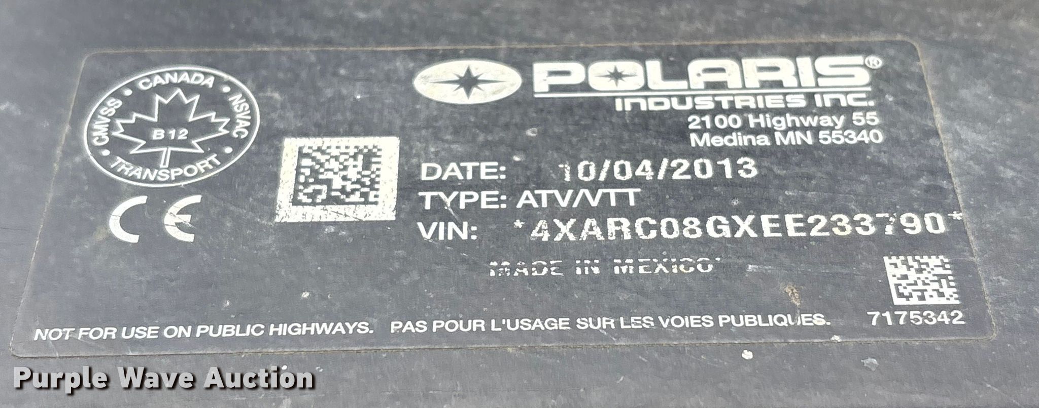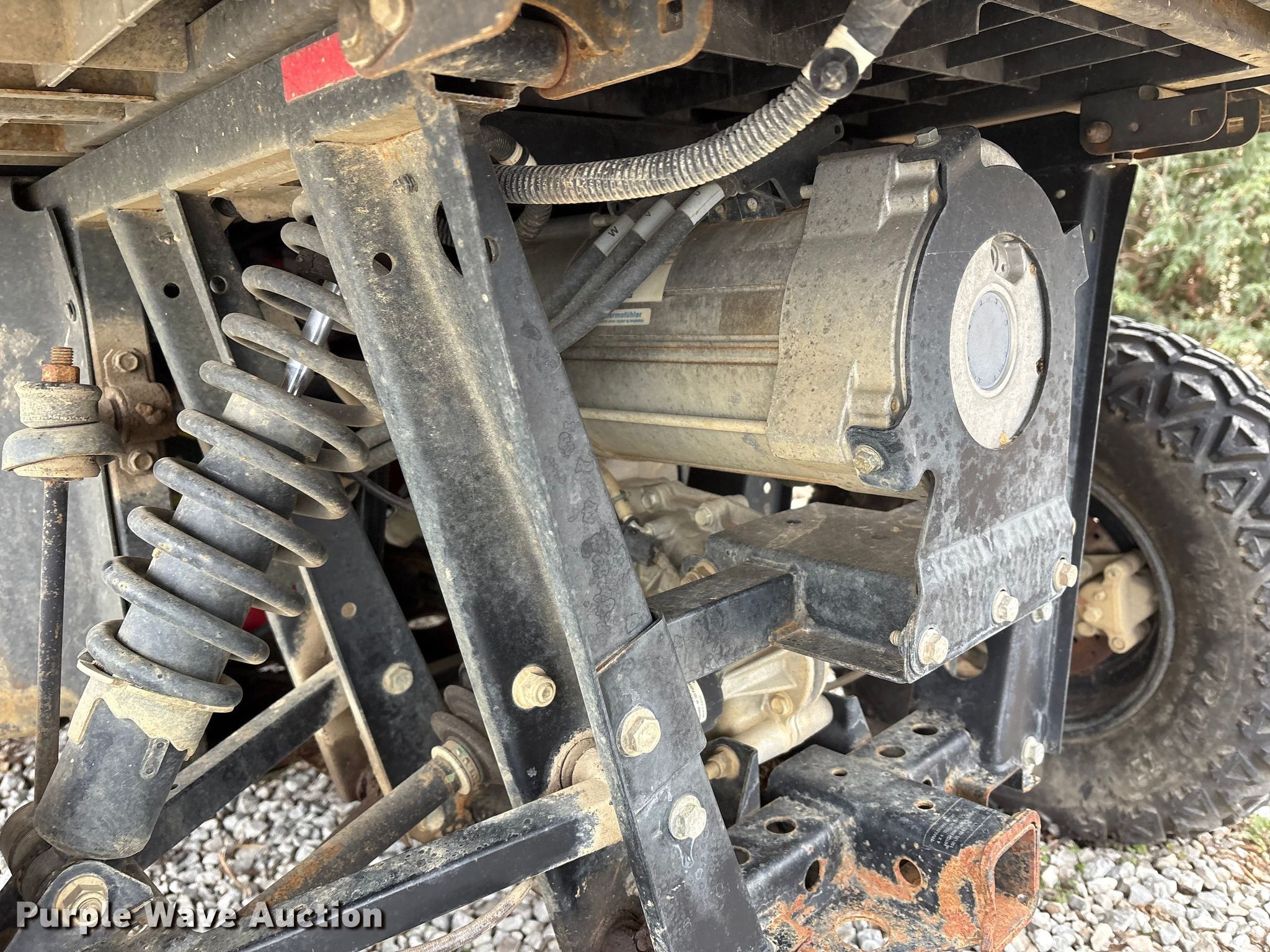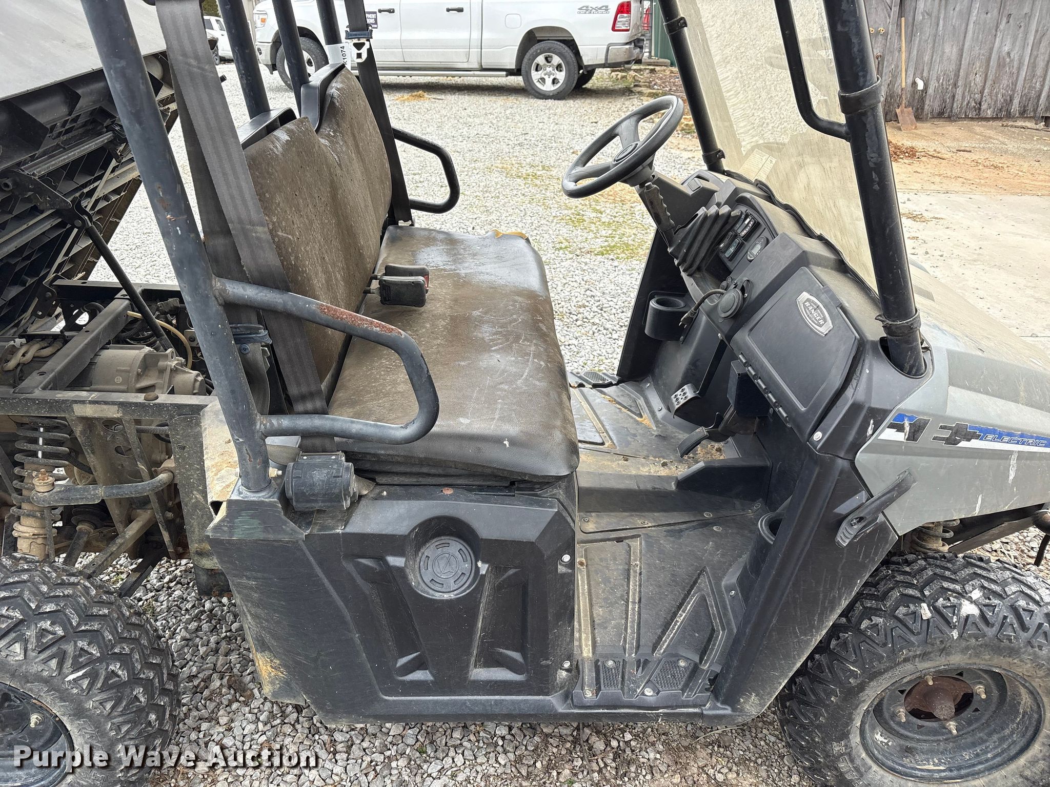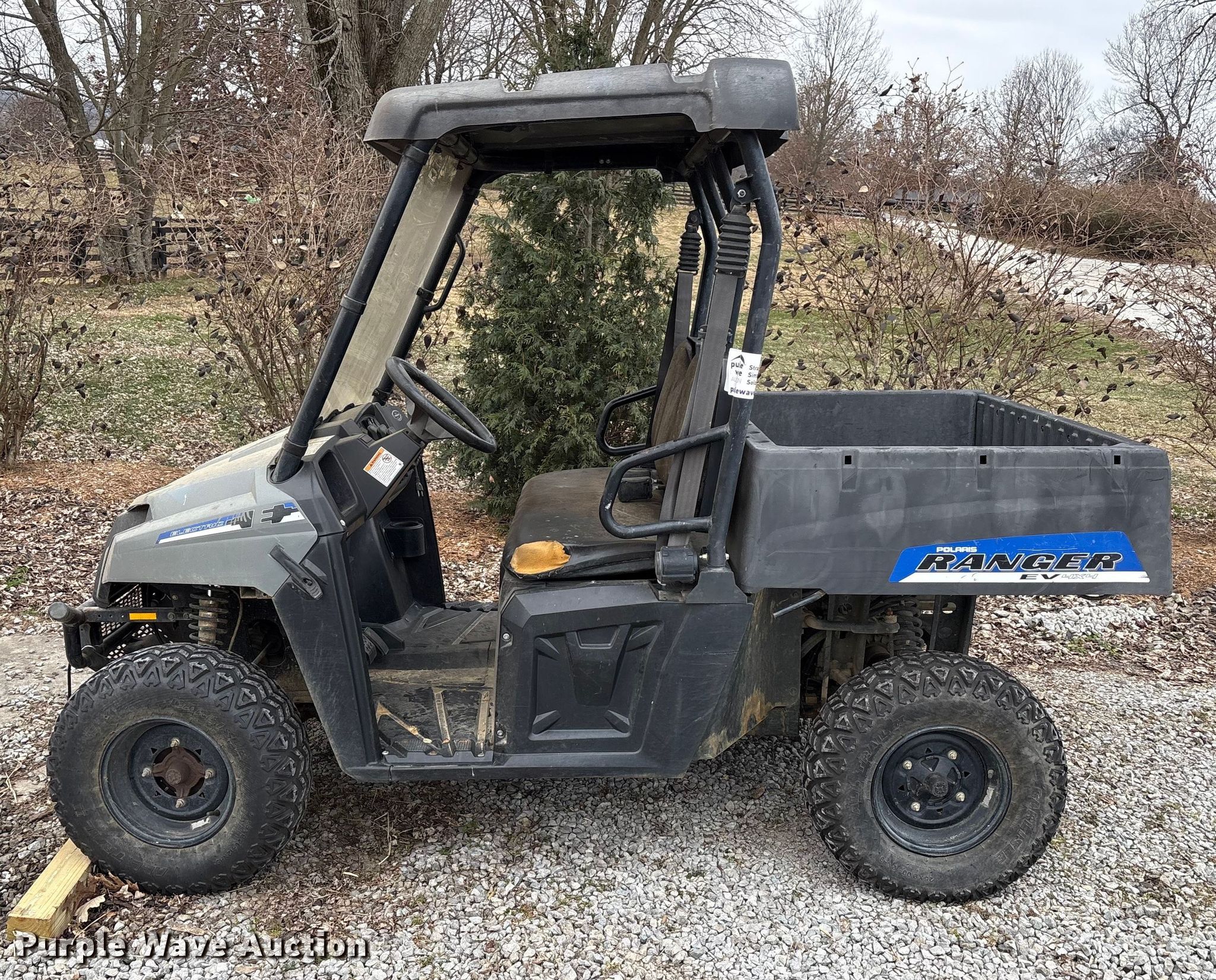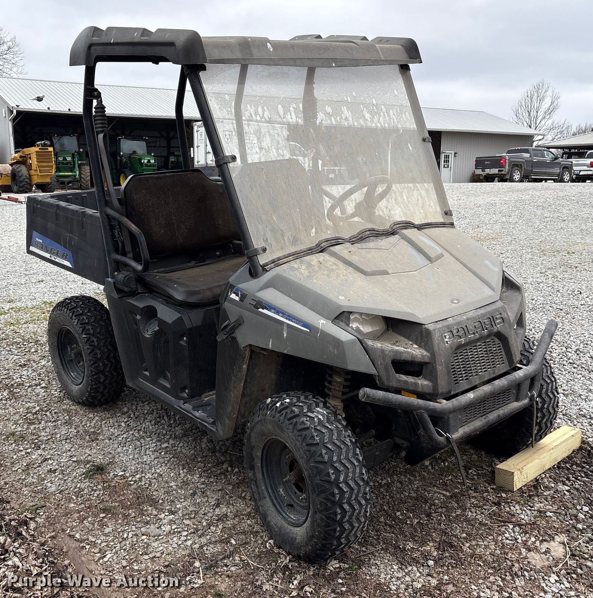 2014 Polaris Ranger EV utility vehicle. Hours: Unknown, VIN: 4XARC08GXEE233790. Electric motor Transmission Automatic. Chassis Four wheel drive/ All wheel drive. Operators station Canopy. Features Dump bed 33" L x 46" W, Dump bed type: Manual. Tires Size: 25x9.00-12. Notes Dead battery, Non-operational hour meter. Transfer of ownership documentation will be a bill of sale. Haymarket By Ashbourne Farms. La Grange, KY 40031