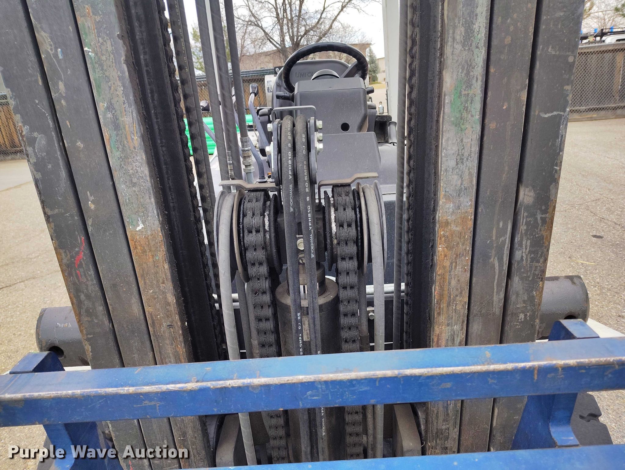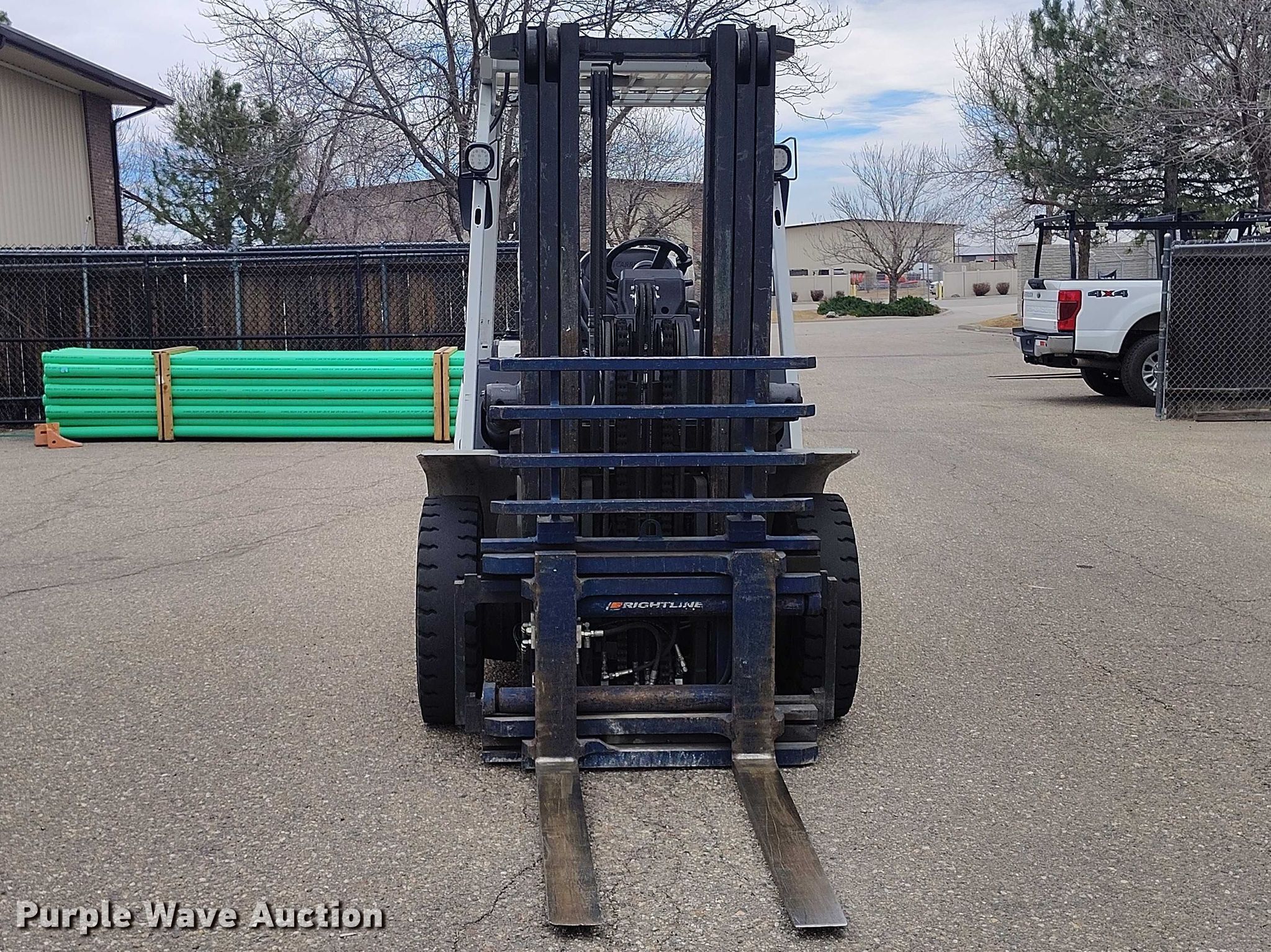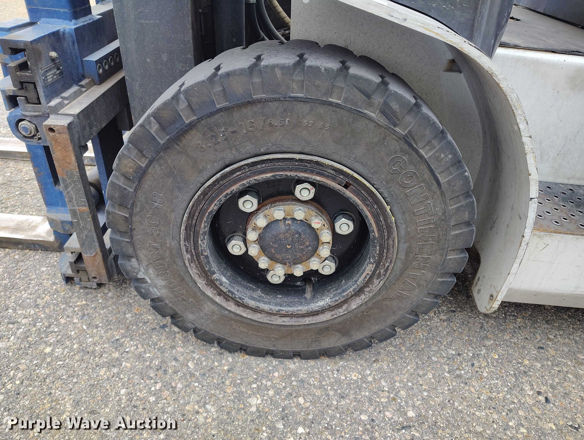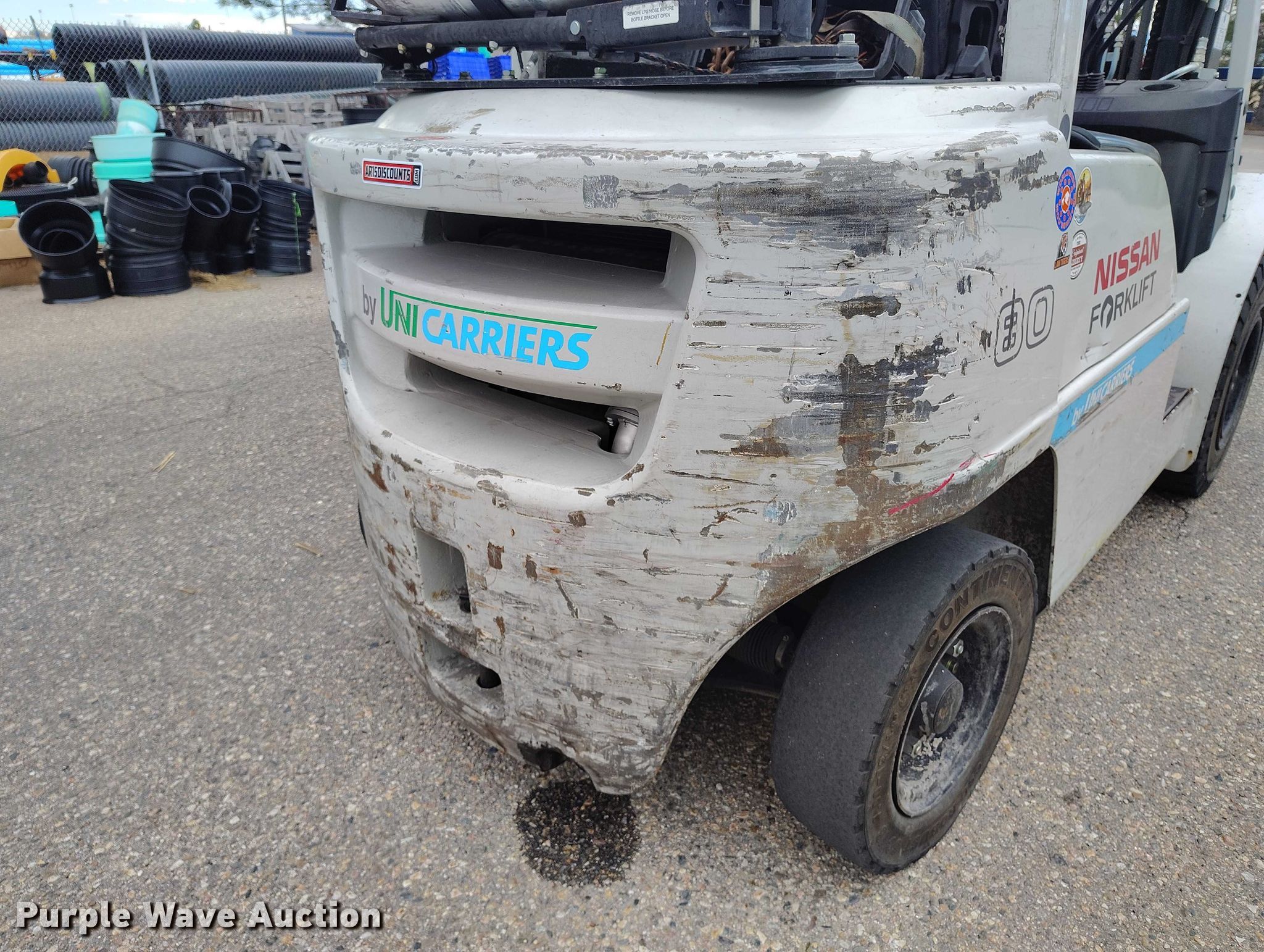 Purple Wave is selling a used Cushion Tire or Pneumatic Forklift in Colorado. This item is a 2015 Nissan PF80 forklift with the following: Hours: 4,369 on meter, Serial: J1F4-980904, Unit #: SFS3111