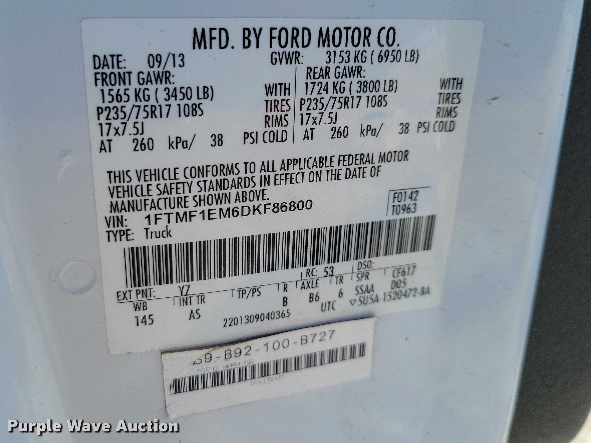- VIN: 1FTMF1EM6DKF86800