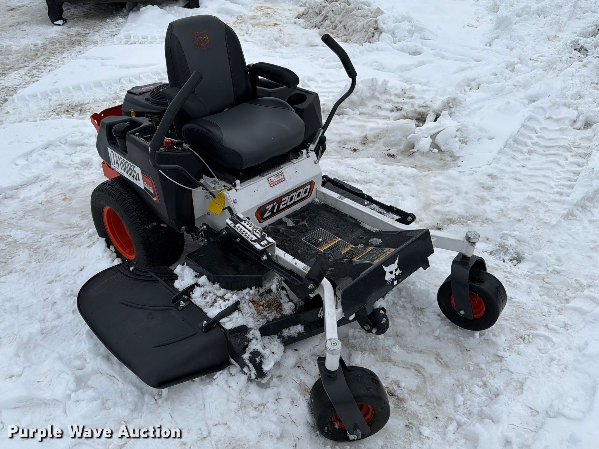 Purple Wave is selling a used Lawn Mower in New York. This item is a Bobcat ZT2000 ZTR lawn mower with the following: Hours: 22 on meter, Cutting width: 48", Serial: 999200205965, Unit #: 74168065