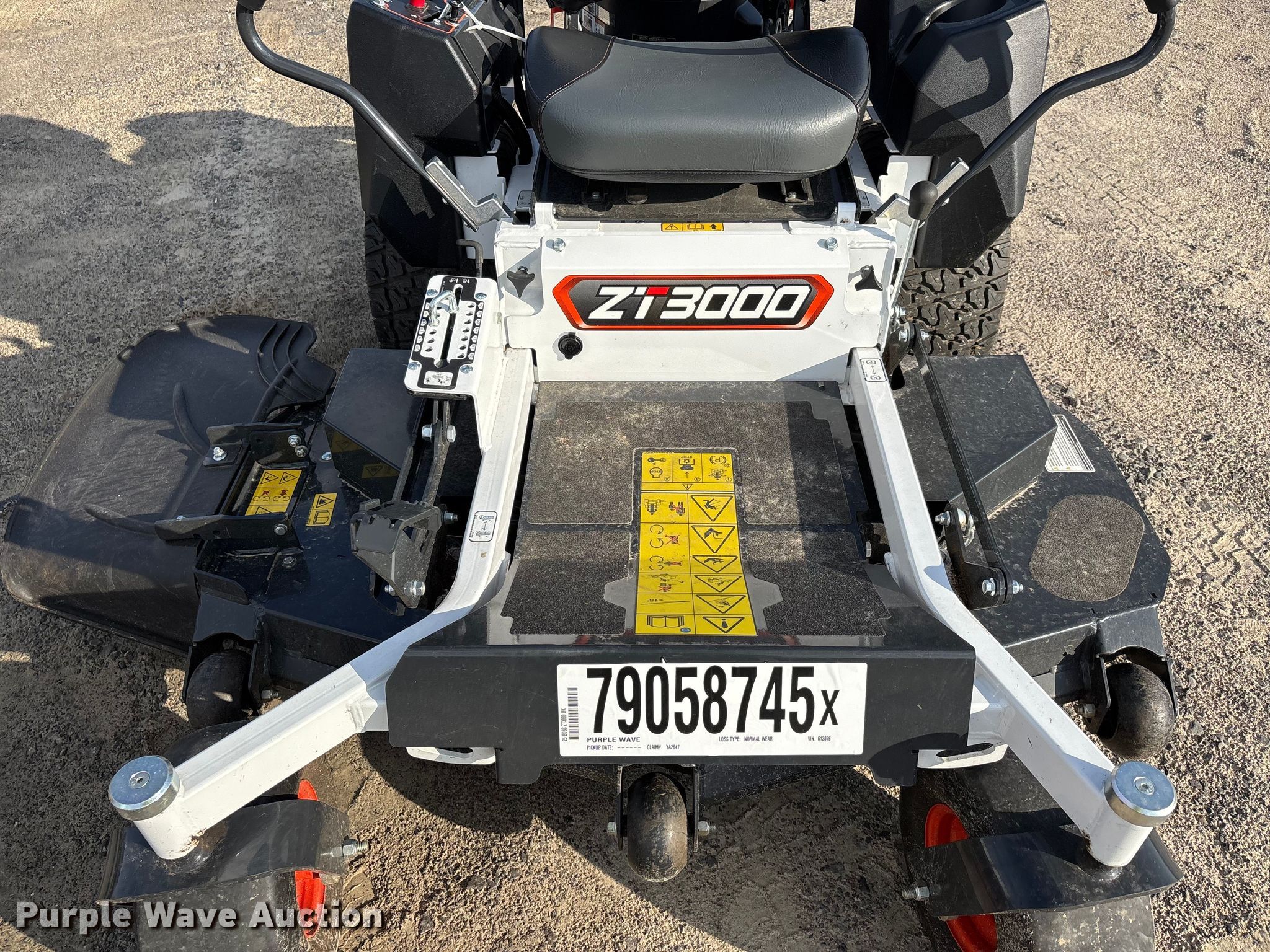 Purple Wave is selling a used Lawn Mower in Arkansas. This item is a Bobcat ZT3000 ZTR lawn mower with the following: Hours: 21 on meter, Cutting width: 54", Serial: B6H612076, Unit #: 79058745