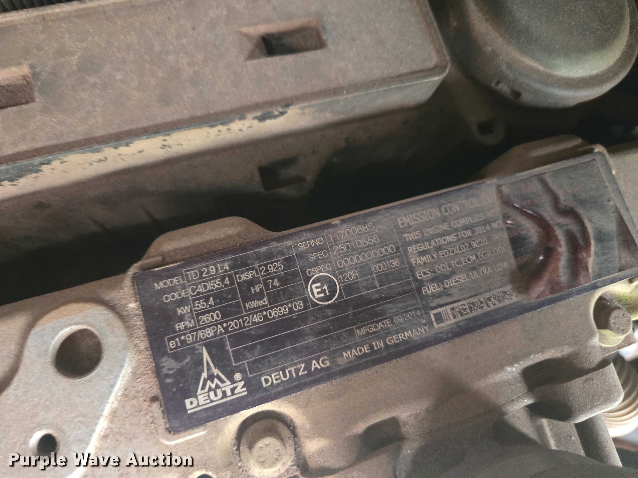 2015 Vermeer BC1000XL wood chipper. Hours: 3,219 on meter, VIN: 1VRY11197F1022602, Unit #: 78599635. Engine Deutz TD2.9L4, Serial: 11700685, Displacement: 2.9L, Cylinders: 4, Fuel type: Diesel, HP: 74. Features Capacity: 12", Throat opening: 17" x 12", Auto feed. Tires Size: 235/80R16. Trailer 14' L x 65" W, Hitch: Pintle, Suspension: Torsion, Axles: Single. Notes Key not included, Tongue bent, Possible fan issues. Buyer responsible for all aspects of loadout and removal. Insurance recovery, stored at a secured facility. Please review REQUIRED REMOVAL INSTRUCTIONS. This is worksite support equipment and will not come with a title. Transfer of ownership documentation will be a bill of sale. Insurance Recovery. 6737 Roosevelt Highway. Fairburn, GA 30213