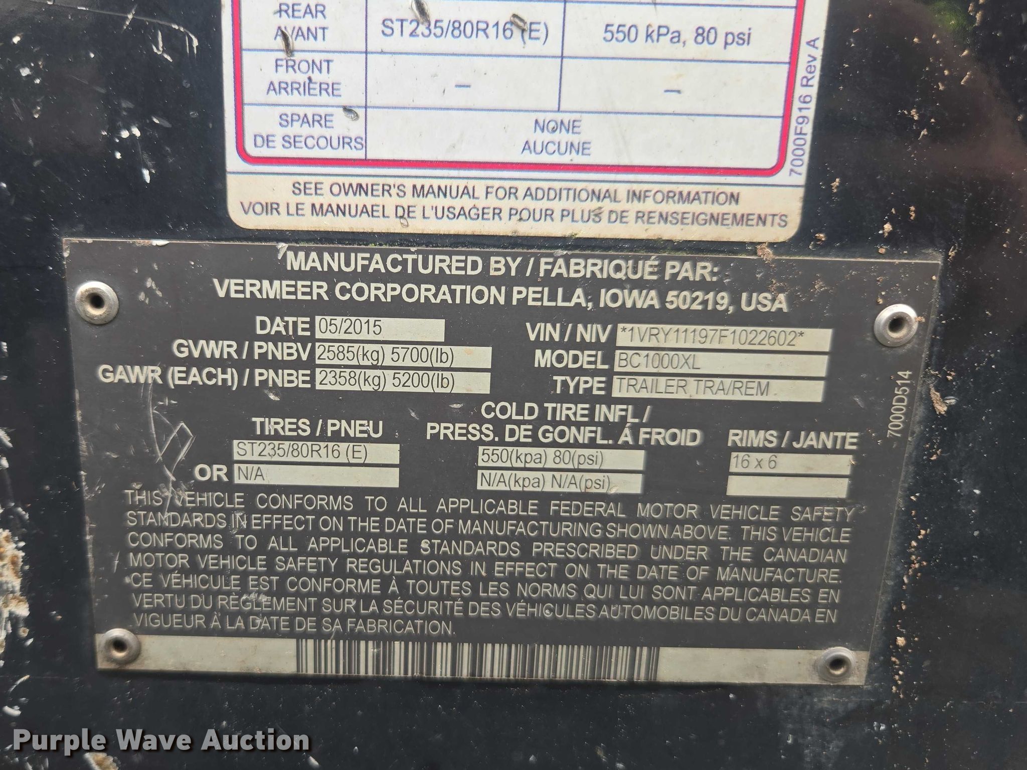 2015 Vermeer BC1000XL wood chipper | Wednesday April 08 Vehicles and Equipment Auction