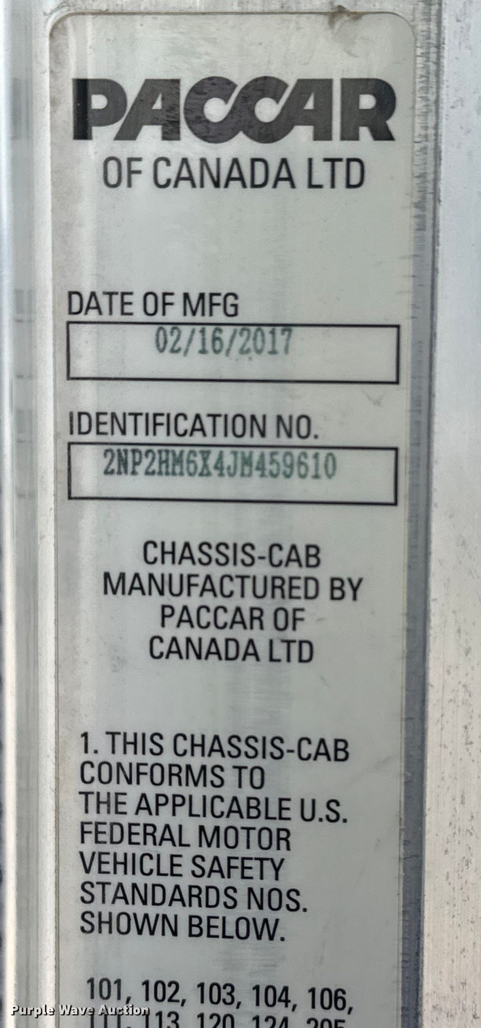 2018 Peterbilt 337 dump flatbed truck. Miles: 294,838 on odometer, Hours: 15,955 on meter, VIN: 2NP2HM6X4JM459610. Engine Paccar, Displacement: 6.7L, Cylinders: 6, Fuel type: Diesel. Transmission Automatic. Chassis Axles: Single, Suspension: Spring, Brakes: Air, PTO, GVWR: 26,000 lbs. Interior AC, Heat, Passenger side power window, Cruise control. Features Bed Dump flatbed, Length: 20' 4", Width: 98", Ram: Dual. Tires Front: 295/75R22.5, Rear: 11R22.5. Notes Windshield chipped or cracked. Oklahoma title. Title distribution may be delayed up to 14 days from verification of funds. Mill Creek lumber & Supply. Tulsa, OK 74145