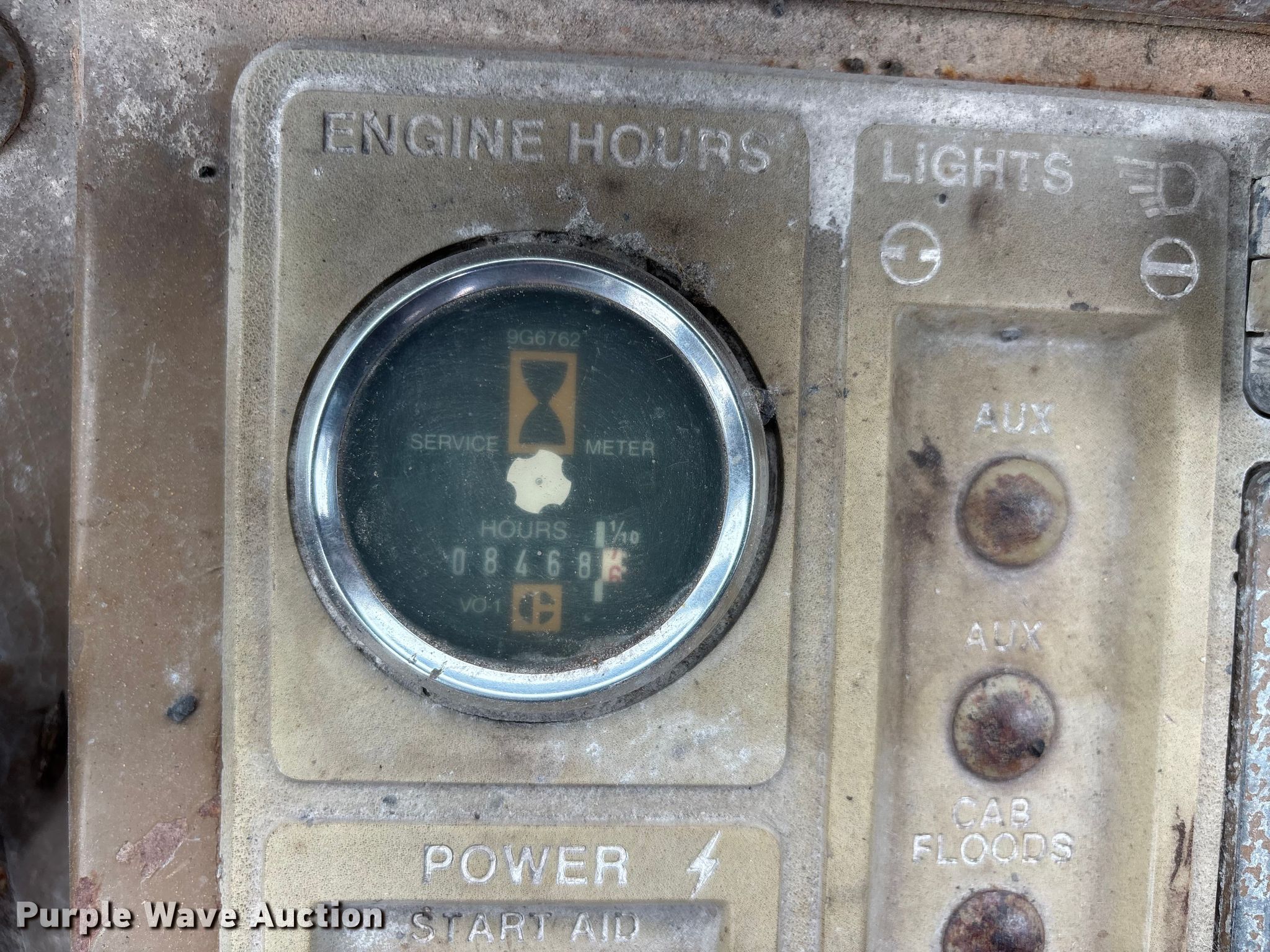 Caterpillar 950B wheel loader. Hours: 8,469 on meter, Serial: 31R00851. Engine Caterpillar 3304, Cylinders: 4, Fuel type: Diesel. Transmission Powershift, 4F - 4R. Operators station Enclosed cab, Heat, Bucket controls: Two-lever. Features Bucket Width: 109", Cutting edge: Bolt-on. Tires Size: 20.5R25. Notes Glass cracked, Engine issues, knocks. Atlas Asphalt Inc.. Batesville, AR 72501