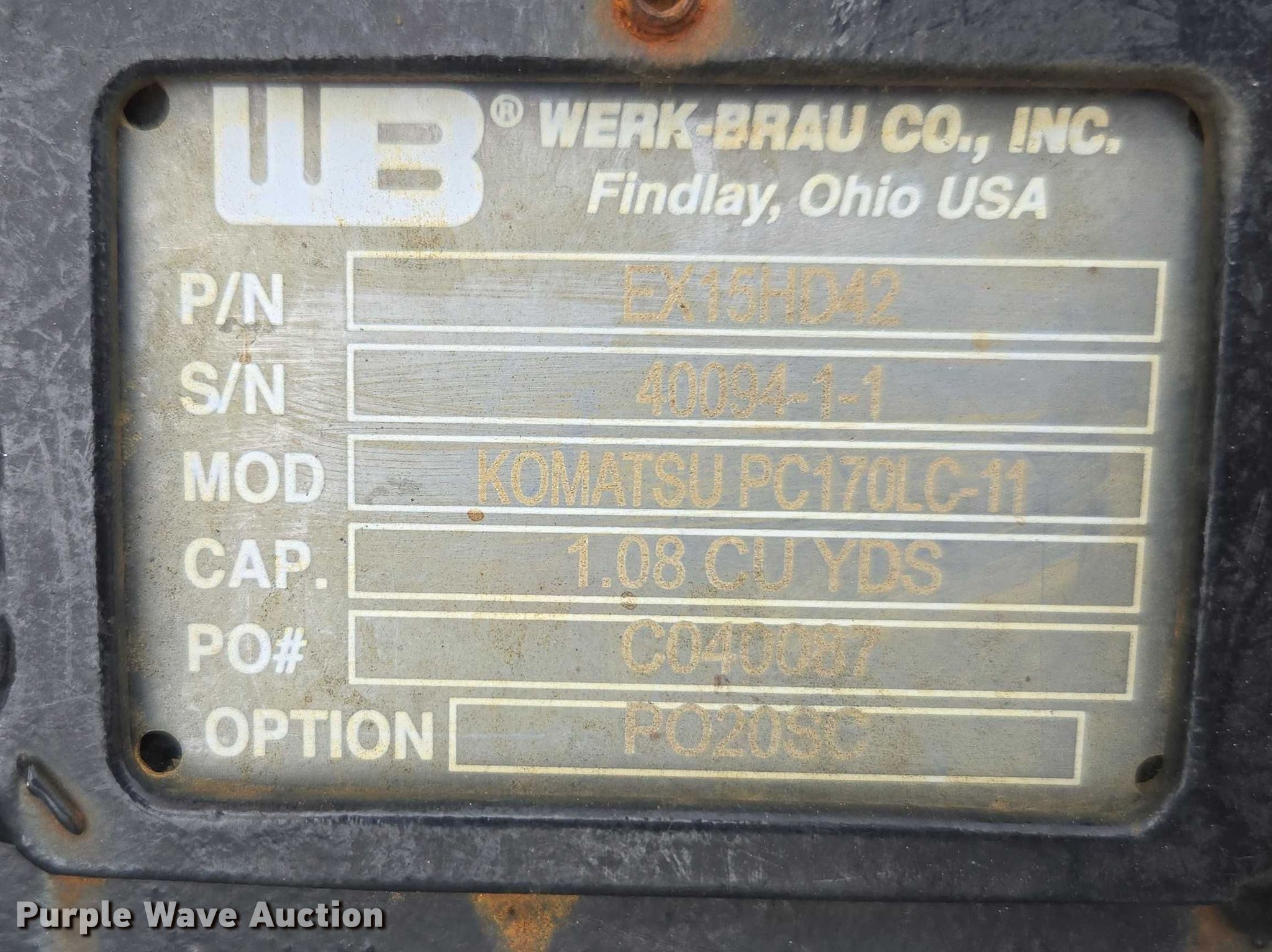 2023 Komatsu PC170LC-11 excavator. Hours: 510 on meter, Serial: KMTPC269JNC036378. Engine Komatsu SAA4D107E-3, Displacement: 4.5L, Cylinders: 6, Fuel type: Diesel. Transmission Hydrostatic, Two speed travel. Operators station Enclosed cab, AC, Heat, Backup camera, Pattern changer. Features Auxiliary hydraulics Two-way, Counter weights, Boom Standard, Stick Stick length: 8' 7", Thumb: Hydraulic Solesbee's, Bucket Werk-Brau, Capacity: 1.08 cu.yd., Width: 42", Cutting edge: Weld-on, Teeth: 5. Tracks Width: 28", Steel, Grouser pads: Triple. Magnolia Energy Services, LLC. Laurel, MS 39440