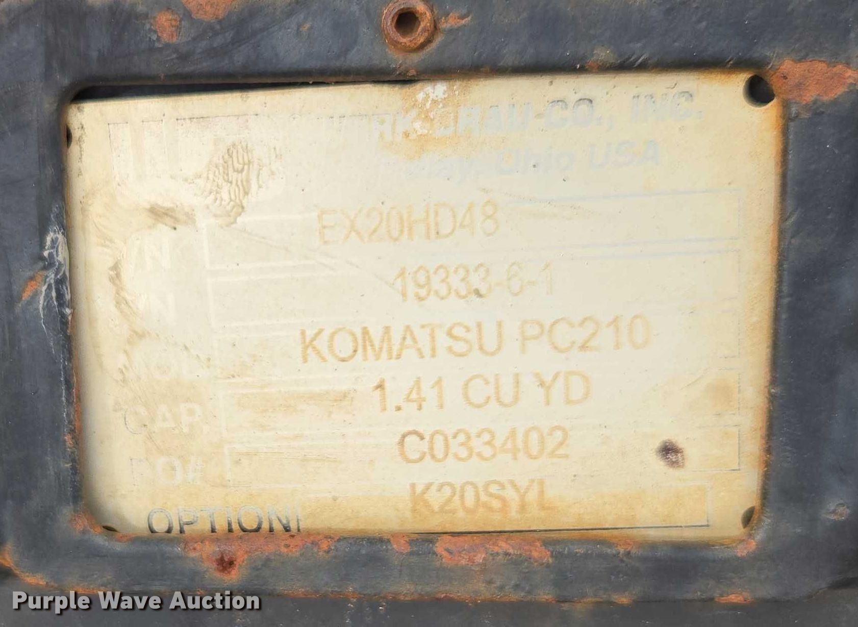 2021 Komatsu PC210LC-11 excavator. Hours: 2,321 on meter, Serial: KMTPC257ALTC81301. Engine Komatsu SAA4D107E-3, Displacement: 6.7L, Cylinders: 6, Fuel type: Diesel. Transmission Hydrostatic, Three speed travel. Operators station Enclosed cab, AC, Heat, Backup camera, Pattern changer. Features Auxiliary hydraulics Two-way, Boom Standard, Stick Stick length: 9' 6", Thumb: Hydraulic, Bucket Werk-Brau, Capacity: 1.41 cu.yd., Width: 48", Cutting edge: Weld-on, Teeth: 6. Tracks Width: 31", Steel, Grouser pads: Triple. Magnolia Energy Services, LLC. Laurel, MS 39440
