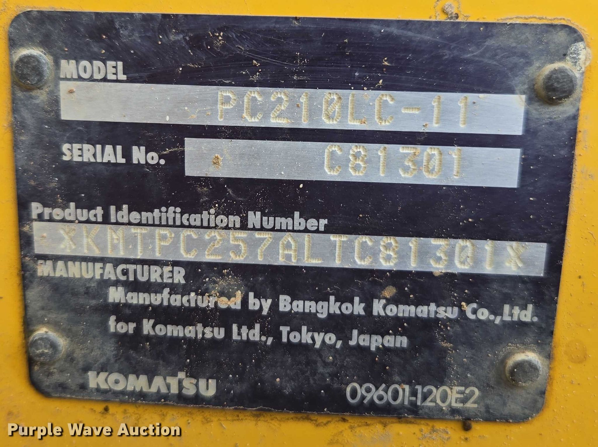 Take a look at this used 2021 Komatsu PC210LC-11 excavator being sold on April 9th, 2026 in the Thursday April 09 Construction Equipment Auction made by Komatsu. Take a look at all of the item information below or take a look at similar auctions for Excavators.