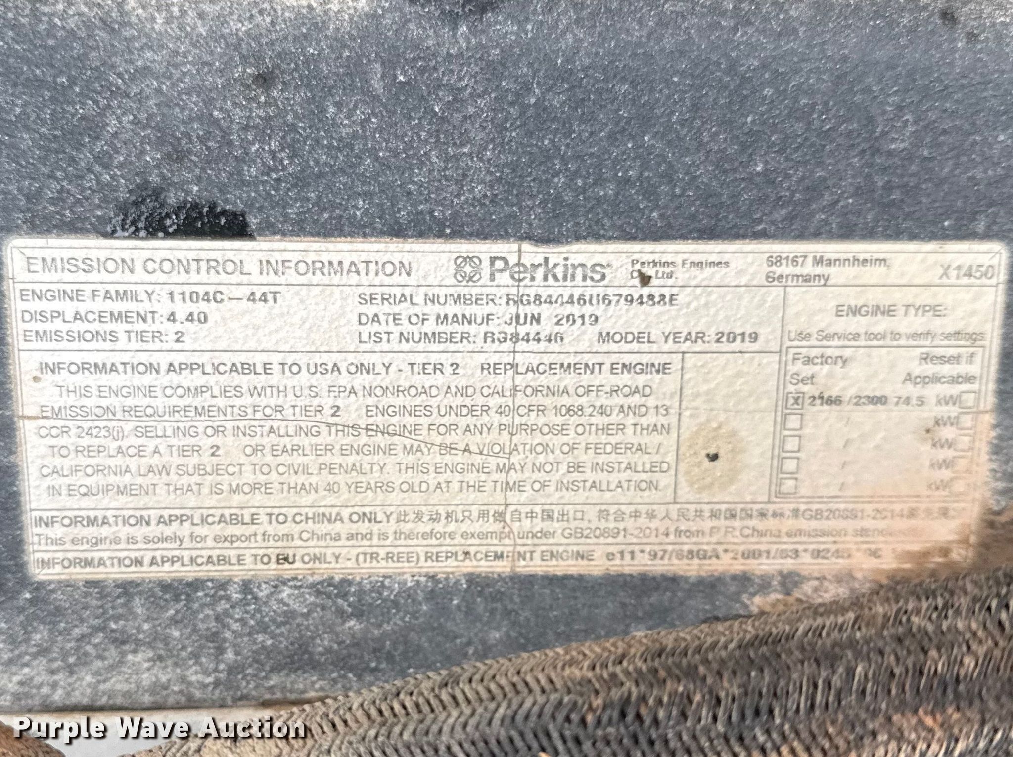 2009 Caterpillar TL943 telehandler. Hours: 45 on meter, Hours: Unknown, Serial: TBL09411. Engine Perkins, Displacement: 4.4L, Cylinders: 4, Fuel type: Diesel. Transmission Shuttle shift, Four wheel drive. Operators station OROPS, Steering: Crab, Four wheel. Features Maximum lift capacity: 9,000 lbs, Maximum lift height: 43', Boom stages: 3, Fork length: 47", Auxiliary hydraulics, Tilt carriage, Hydraulic outriggers, Hydraulic leveling, Quick attach: Manual. Tires Size: 13.00-24. Notes Non-operational hour meter. Emery Sapp & Sons, Inc.. Bucyrus, KS 66013
