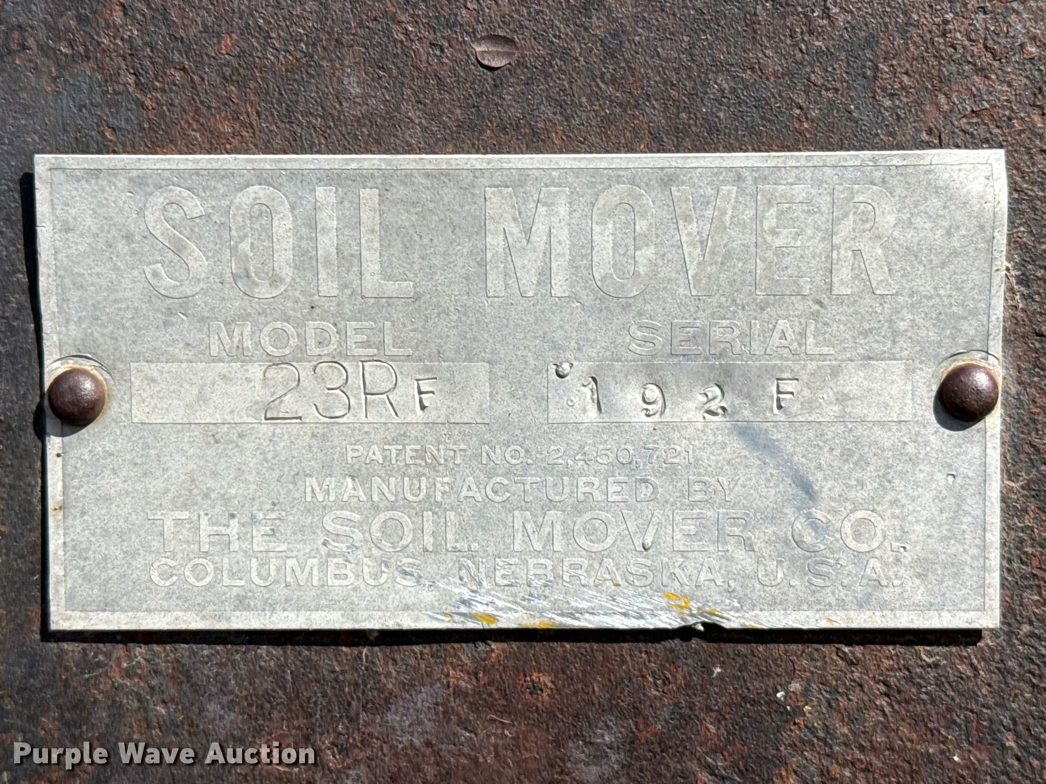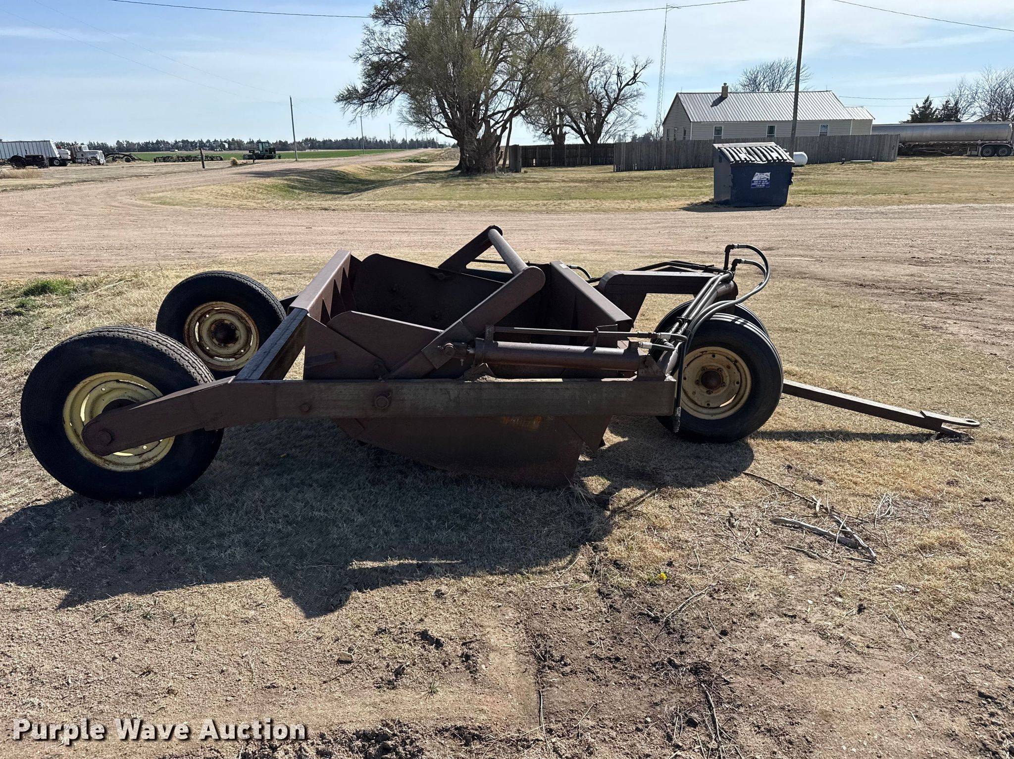 Purple Wave is selling a used Pull Type Scraper in Kansas. This item is a Soil Mover Co 23RF scraper with the following: Serial: 192F