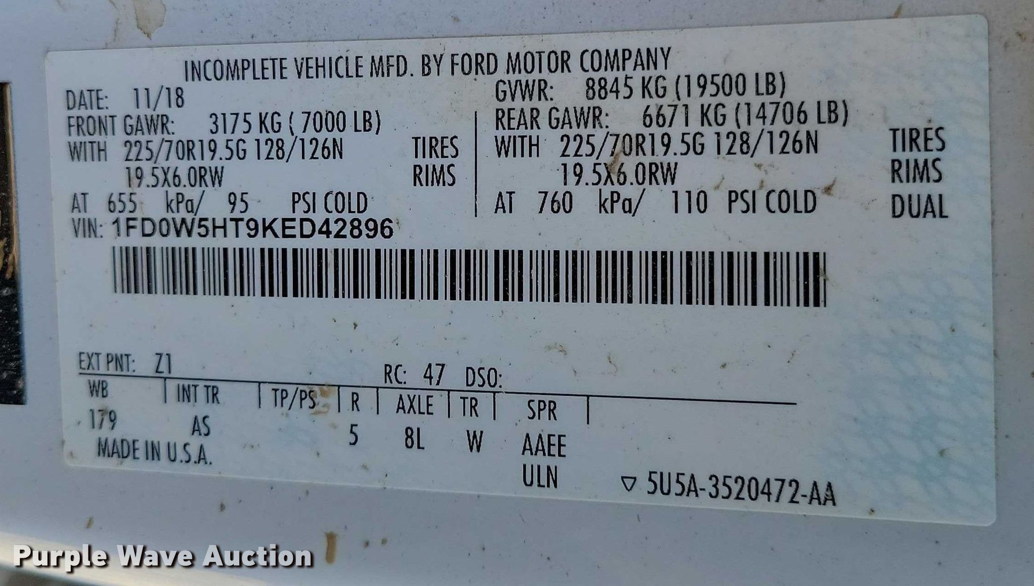 - VIN: 1FD0W5HT9KED42896