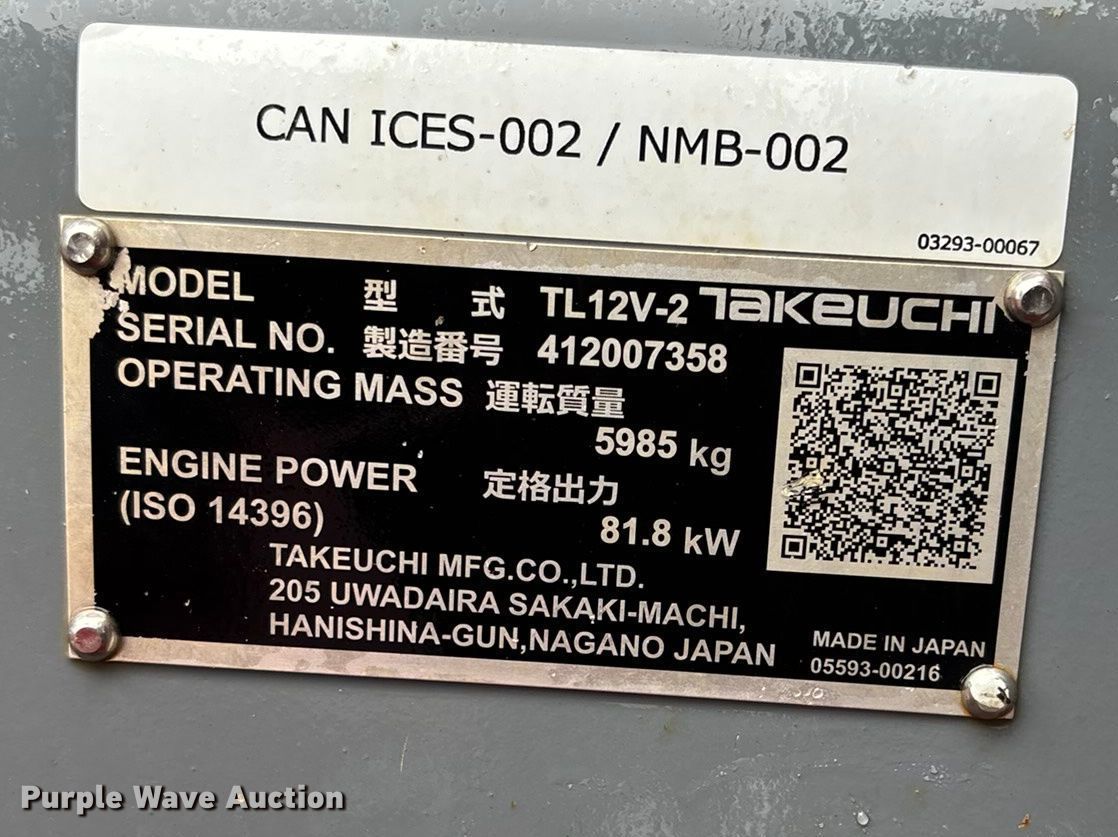 Purple Wave is selling a used Tracked Skid Steer Loader in Missouri. This item is a 2022 Takeuchi TL12V2 tracked skid steer loader with the following: Hours: 1,236 on meter, Serial: 412007358