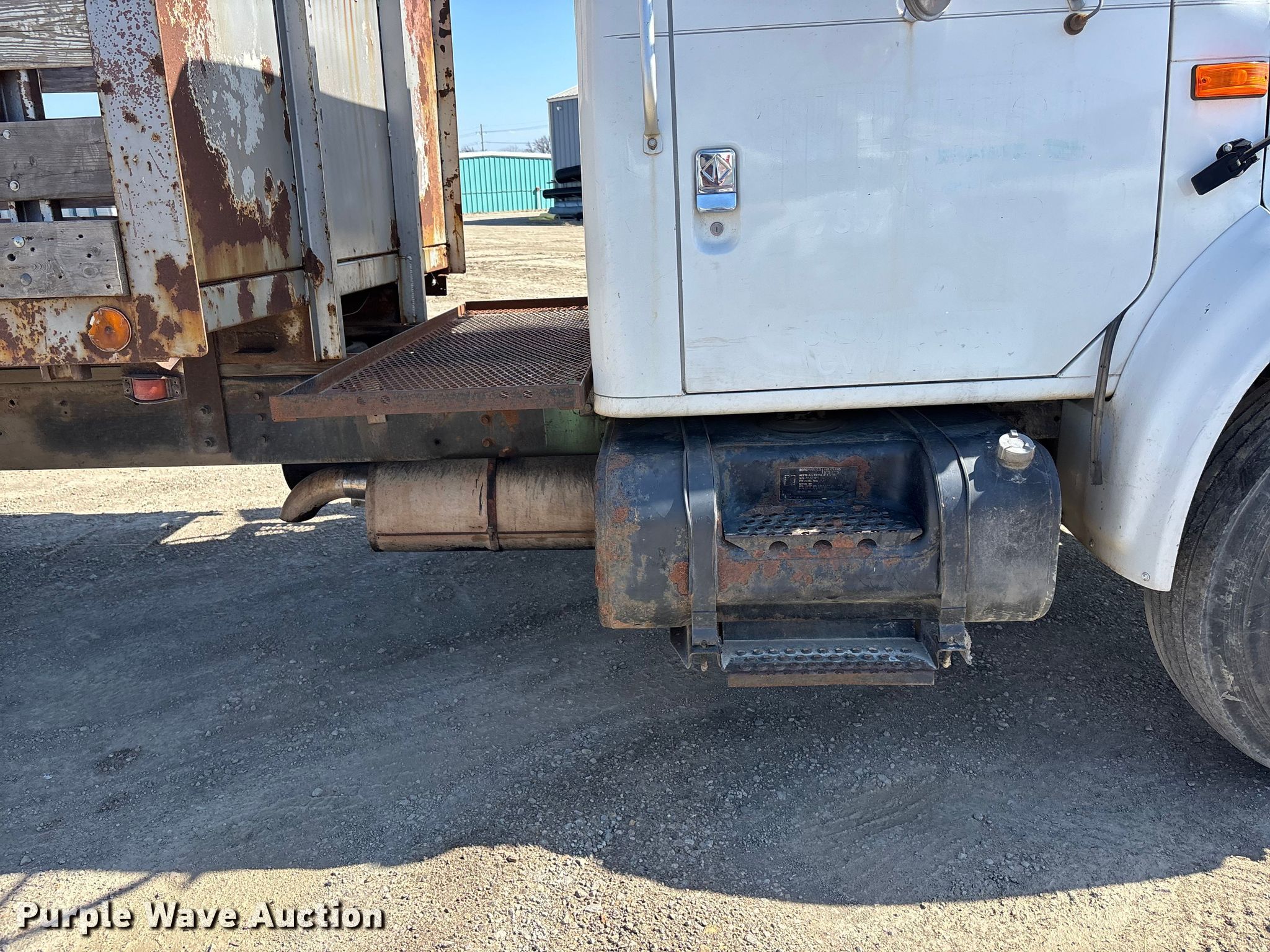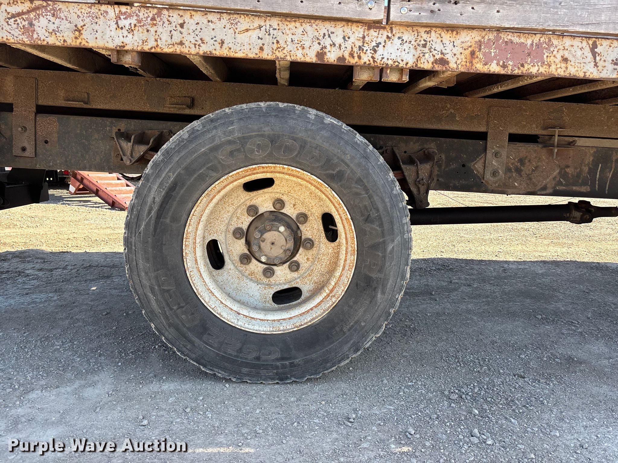 2001 International 4700 flatbed truck. Miles: 289,631 on odometer, Hours: 7,177 on meter, VIN: 1HTSCAAM11H378311. Engine International DT466, Displacement: 7.64L, Cylinders: 6, Fuel type: Diesel. Transmission Manual, Speed: 7. Chassis Axles: Single, Suspension: Spring, Brakes: Hydraulic. Interior AC, Heat, Heated mirrors, Cruise control. Features Bed Flatbed, Length: 23', Width: 96" Removable sides, End gate lift Maxon TE-25, Capacity: 2,500 lbs.. Tires Size: 10 R22.5. Notes Oil leak, Non-operational endgate. Kansas title. Title distribution may be delayed up to 30 days from verification of funds. Hayden Tower Service Inc.. Topeka, KS 66618