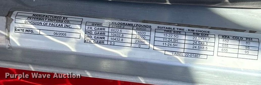 Purple Wave is selling a used Truck Tractor in Kansas. This item is a 2006 Peterbilt 379EXT semi truck with the following: Miles: 775,264 on odometer, Hours: 10,946 on meter, VIN: 1XP5DB0X66D889406