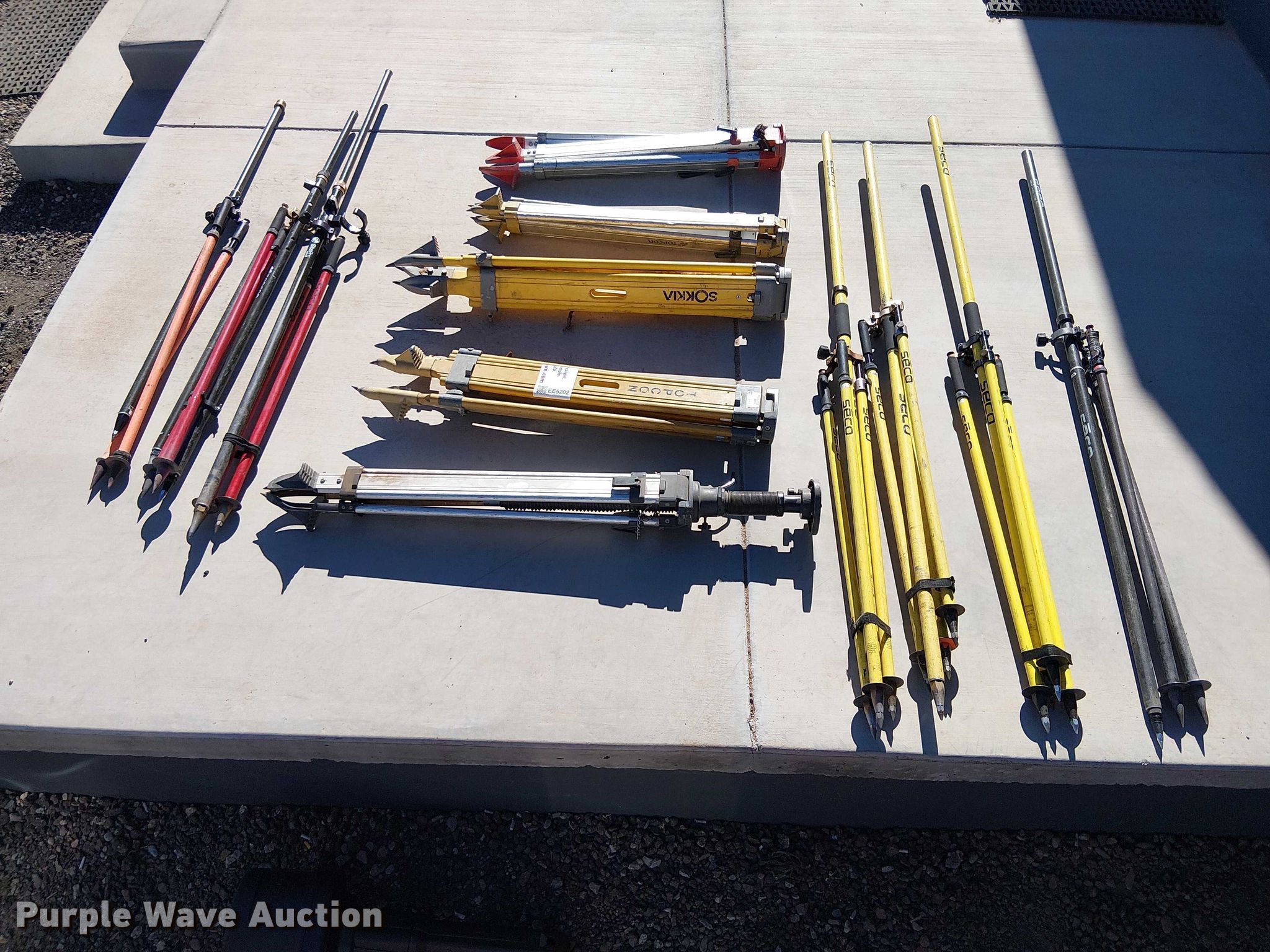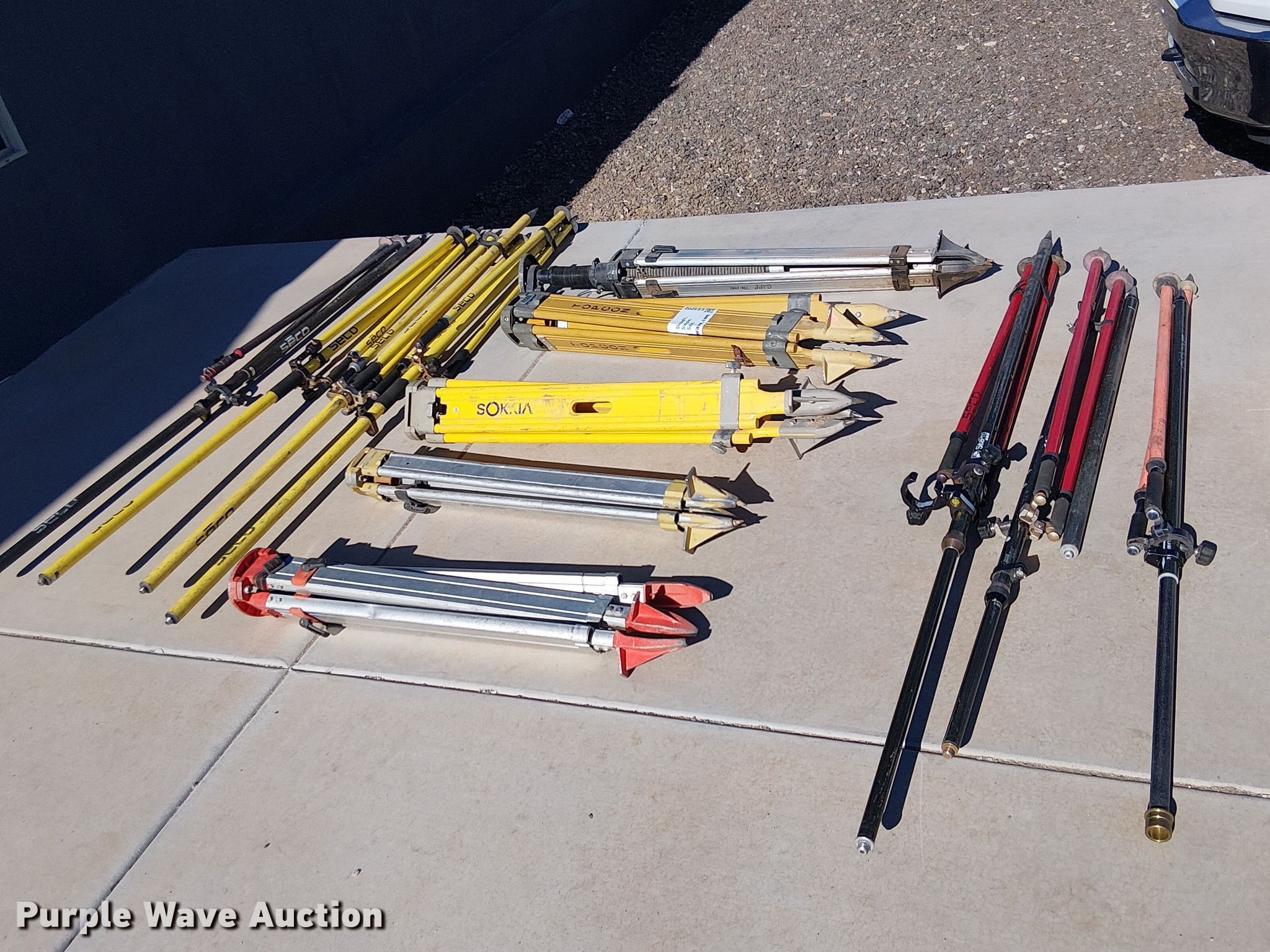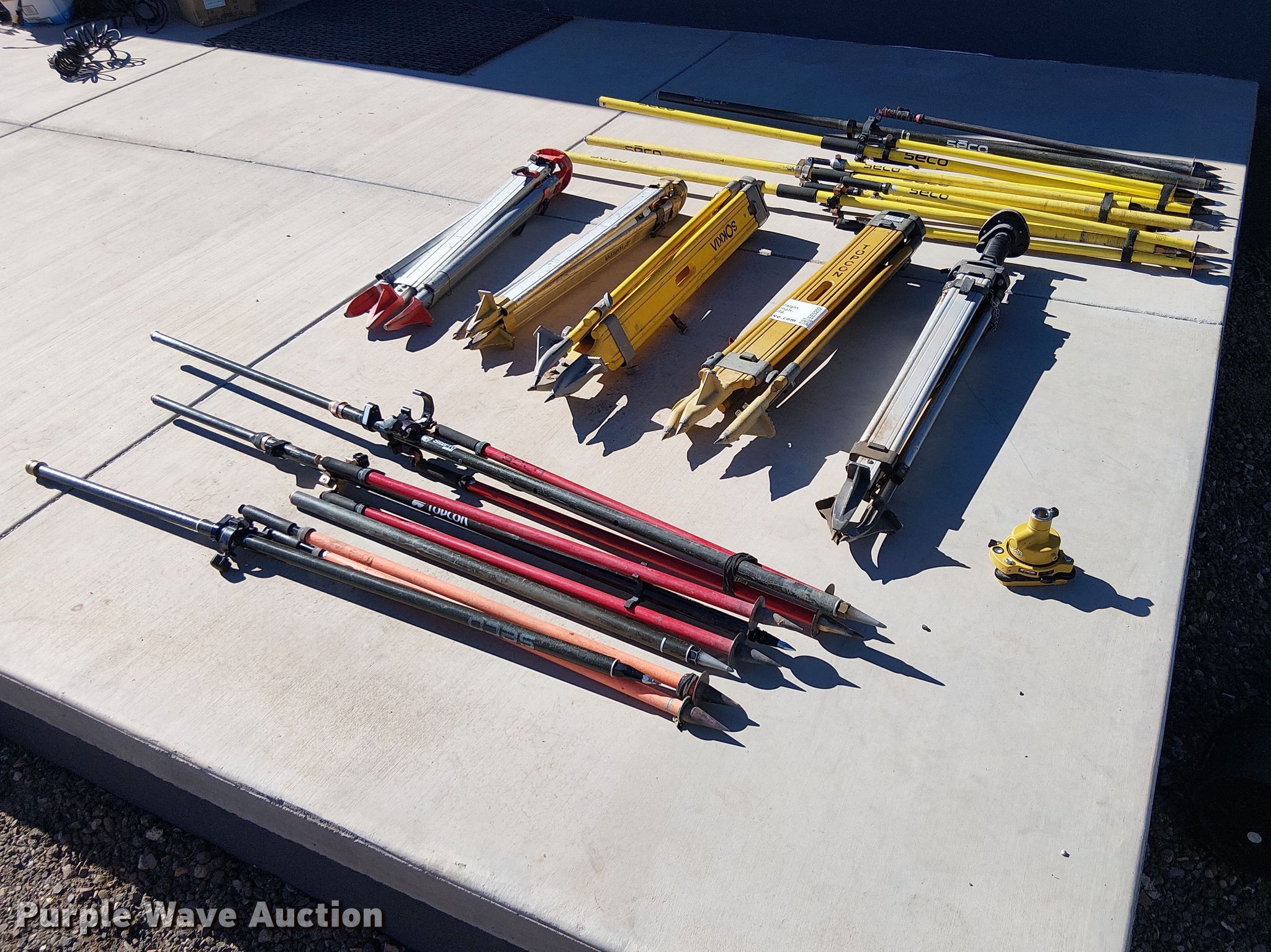 Purple Wave is selling a used Surveying Equip. in Arizona. This item is a (12) tripods with the following: Topcon tripod head