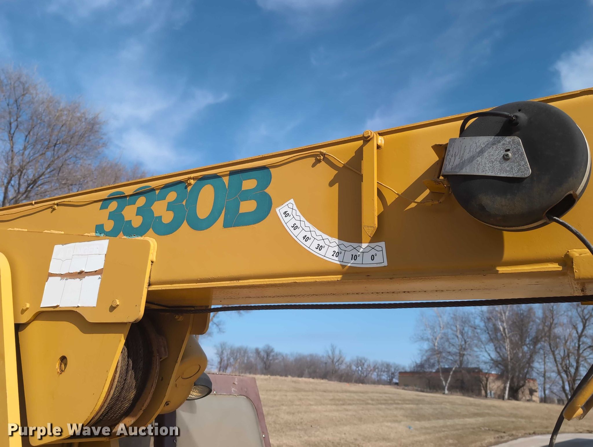 1983 Case 3330B crane. Hours: 2,239 on meter, Serial: 6225632. Engine Case, Cylinders: 4, Fuel type: Diesel. Transmission Manual, Speed: 2. Chassis Axles: Single, Brakes: Hydraulic. Operators station Enclosed cab, Crane controls: Stick. Features Boom Telescopic, Sections: 3, Maximum lift capacity: 800 lbs, Maximum lift height: 26', Stabilizers: 4, Boom controls In-cab, Crane block Sheaves: 1. Tires Size: 10.00R15. Drax Inc. Sun Prairie, WI 53590