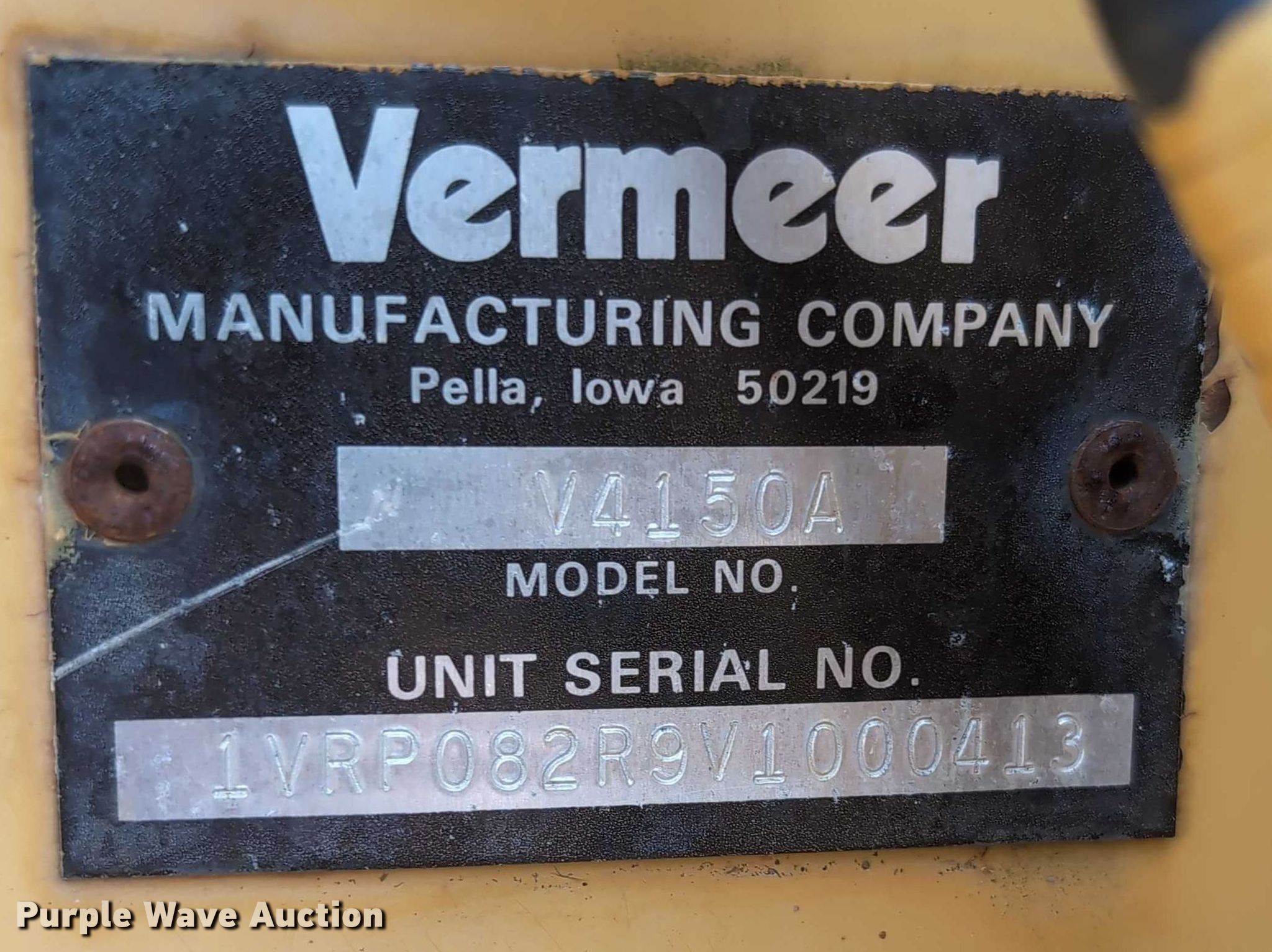 Purple Wave is selling a used Cable Plow in Wisconsin. This item is a 1997 Vermeer V4150a cable plow with the following: Hours: 631 on meter, Serial: 1VRP082R9V1000413