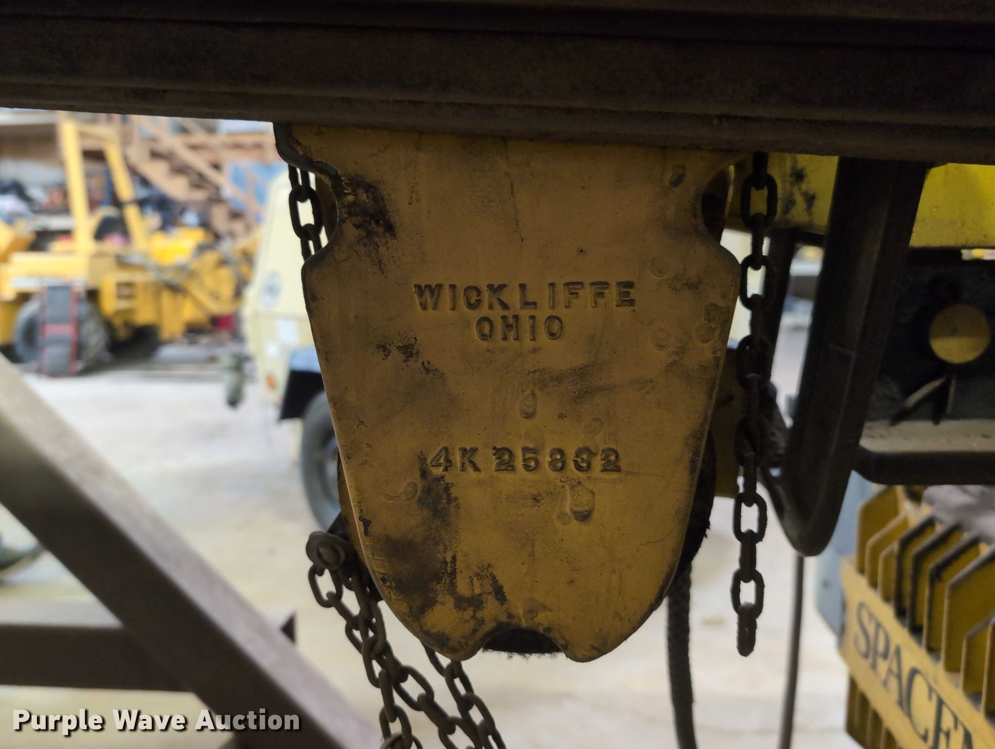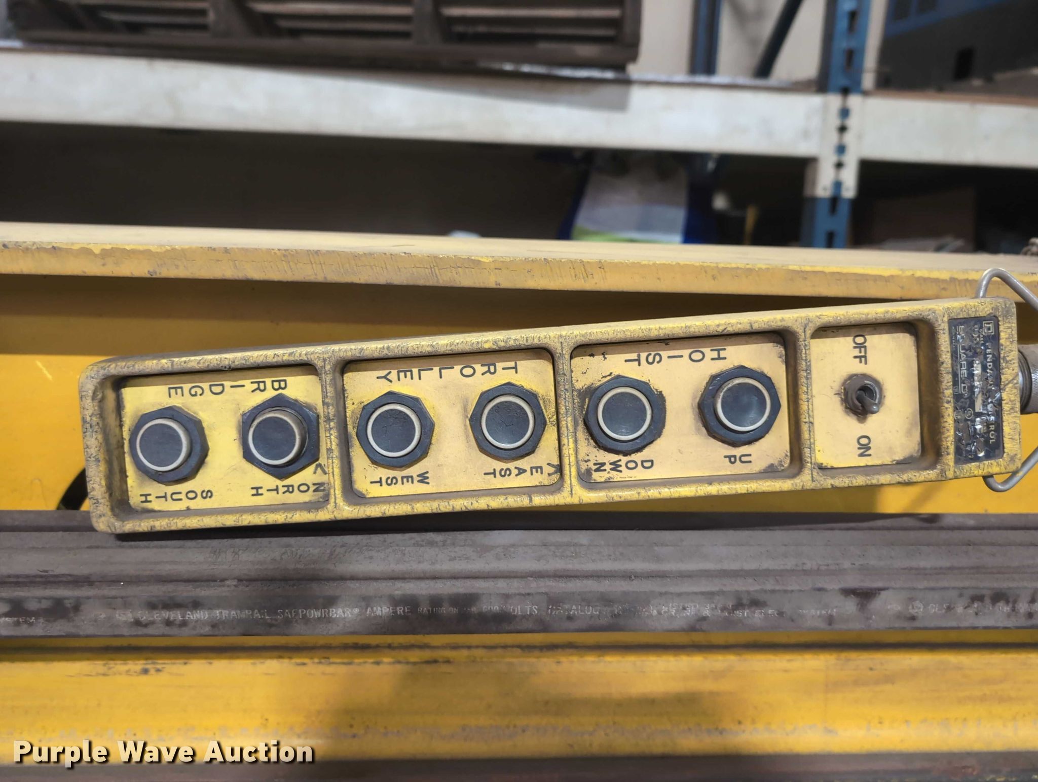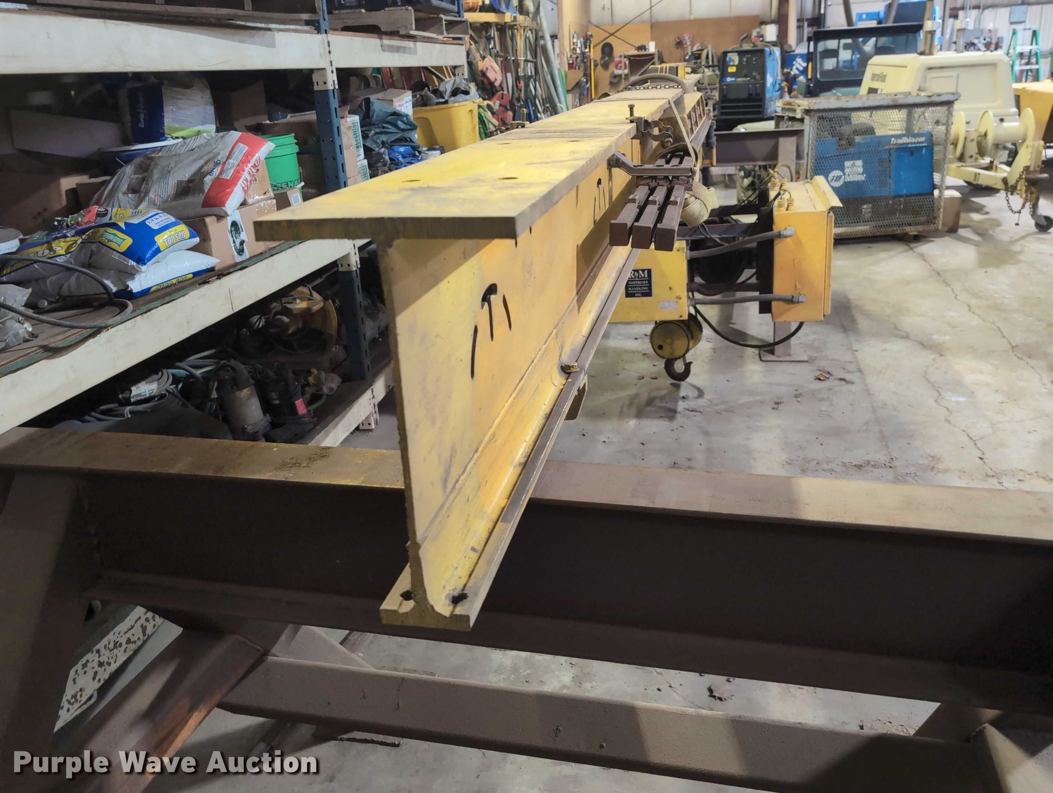 Purple Wave is selling a used Overhead or Straddle Crane in Wisconsin. This item is a Cleveland Tramrail Spacemaster II gantry crane with the following: Serial: 164632BV1