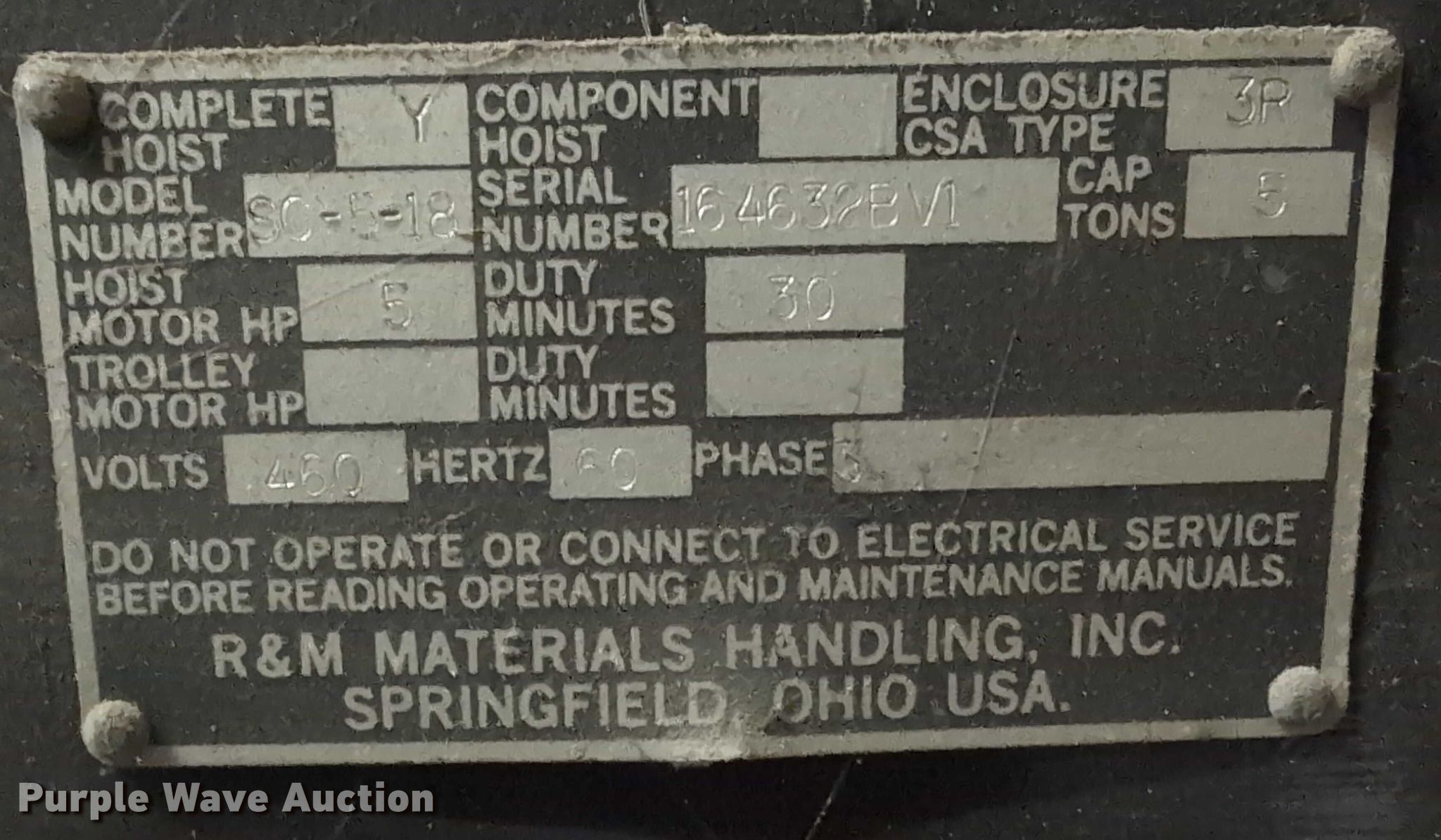 • R&M Material Handling Inc. hoist