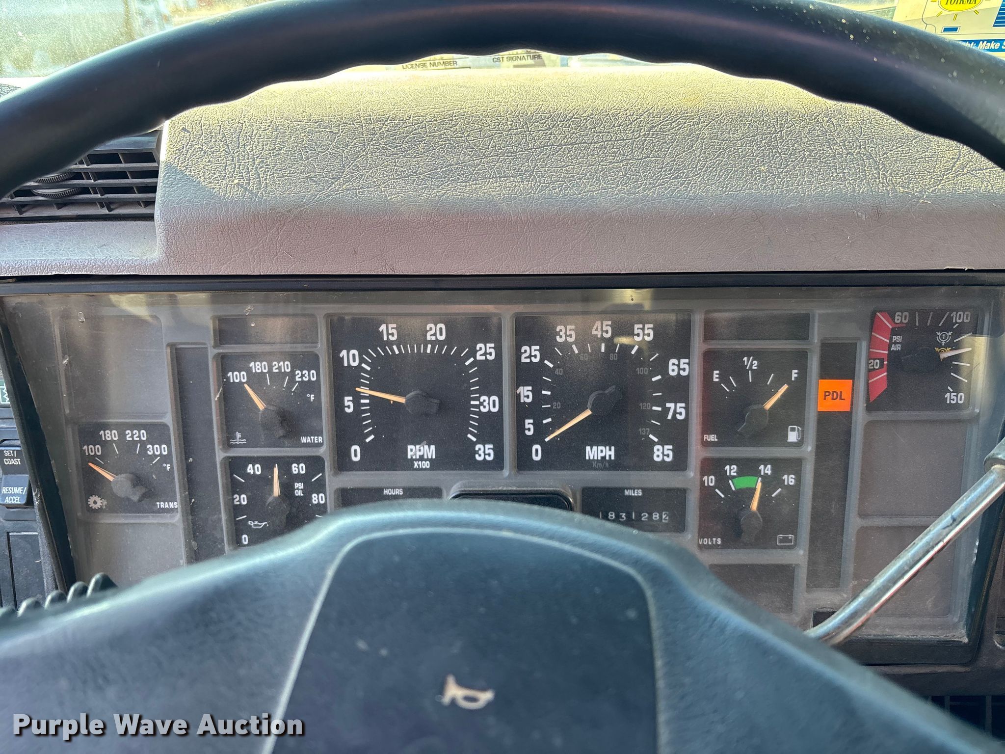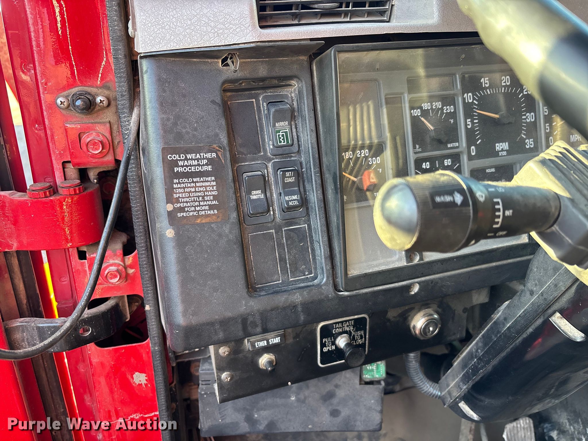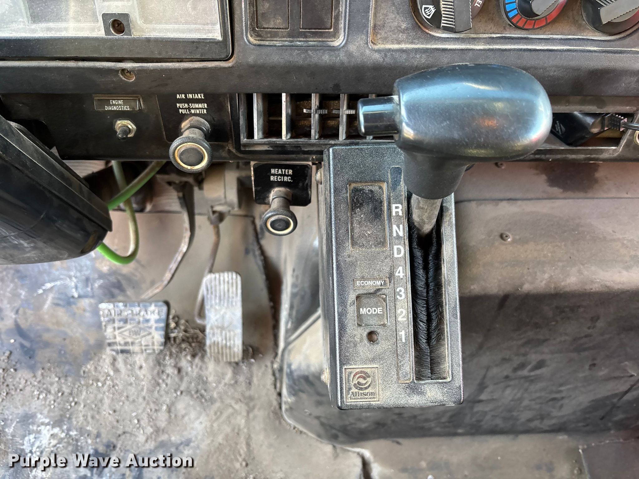 1998 International 4900 dump truck. Miles: 183,127 on odometer, Hours: 9,399 on meter, VIN: 1HTSHAAR0WH505702. Engine International, Displacement: 7.6L, Cylinders: 6, Fuel type: Diesel. Transmission Allison, Automatic. Chassis Axles: Tandem, Differential lock: Inter-axle, Suspension: Spring over walking beam, Brakes: Air, PTO, Wheelbase: 170". Interior Heat, Heated mirrors, Cruise control. Features Bed Dump bed, Length: 13', Width: 96", Bed type: Steel, Ram: Single, End gate: Manual. Tires Size: 11R22.5. Notes Unknown operating condition of heat. Illinois title. Title distribution may be delayed up to 14 days from verification of funds. Mechanical Service Inc.. Galesburg, IL 61401