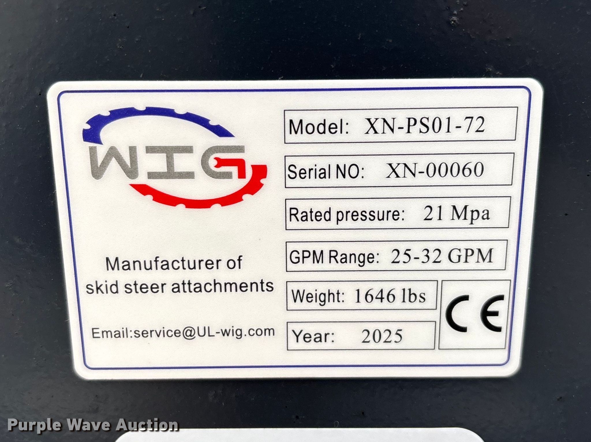 Take a look at this used 2025 WIG XN-PS01-72 skid steer material crusher being sold on April 9th, 2026 in the Thursday April 09 Construction Equipment Auction made by WIG. Take a look at all of the item information below or take a look at similar auctions for Skid Steer Loaders.