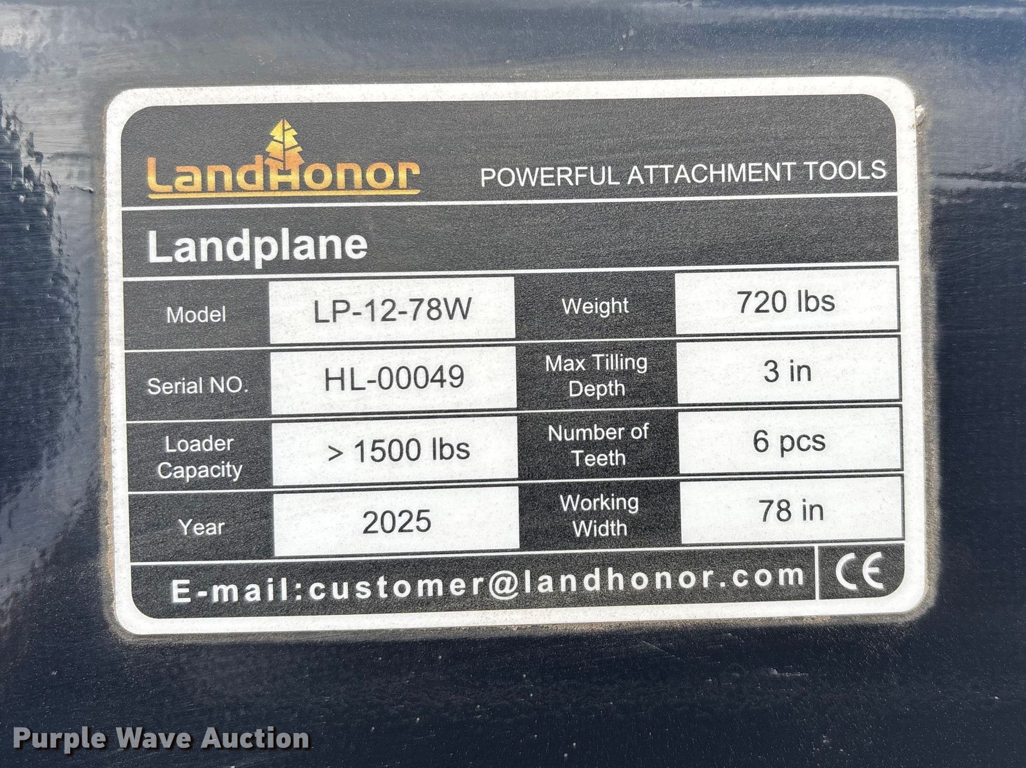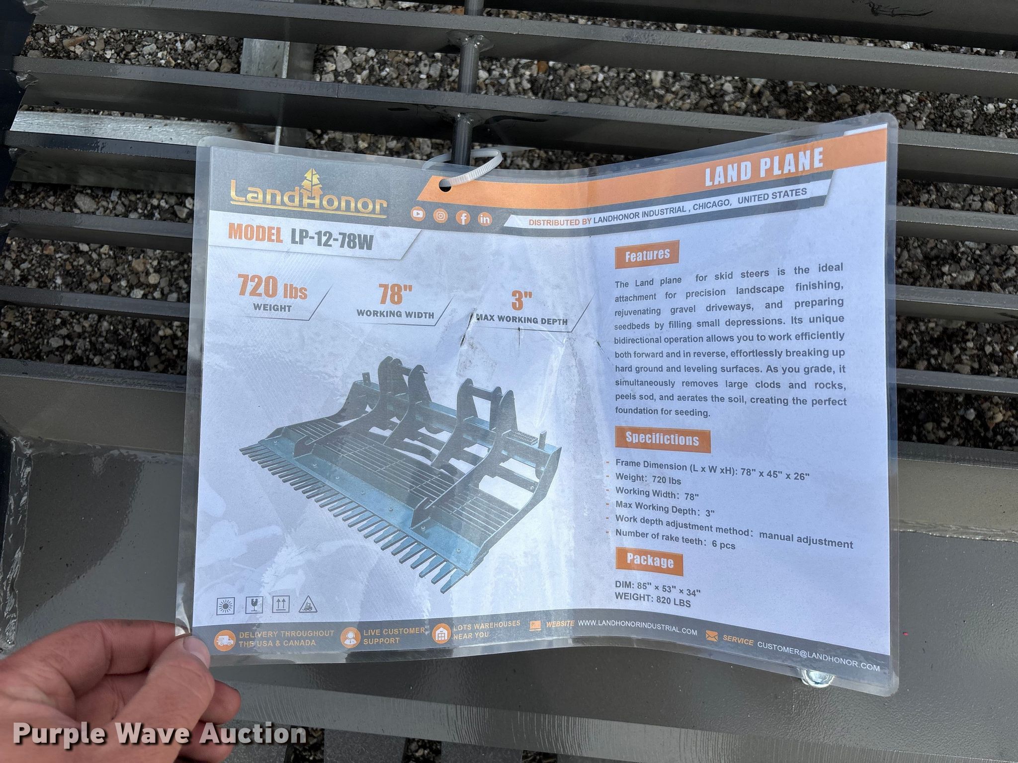 Take a look at this used 2025 Landhonor LP-12-78W skid steer land leveler being sold on April 9th, 2026 in the Thursday April 09 Construction Equipment Auction made by Landhonor. Take a look at all of the item information below or take a look at similar auctions for Skid Steer Loaders.