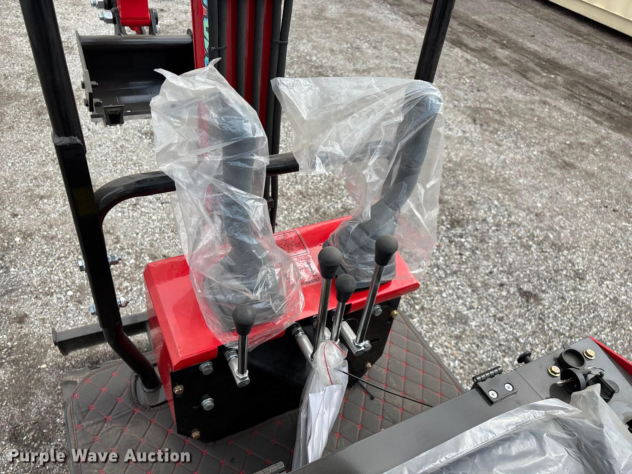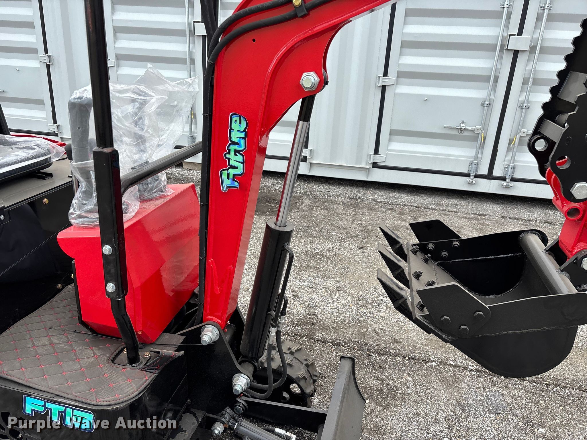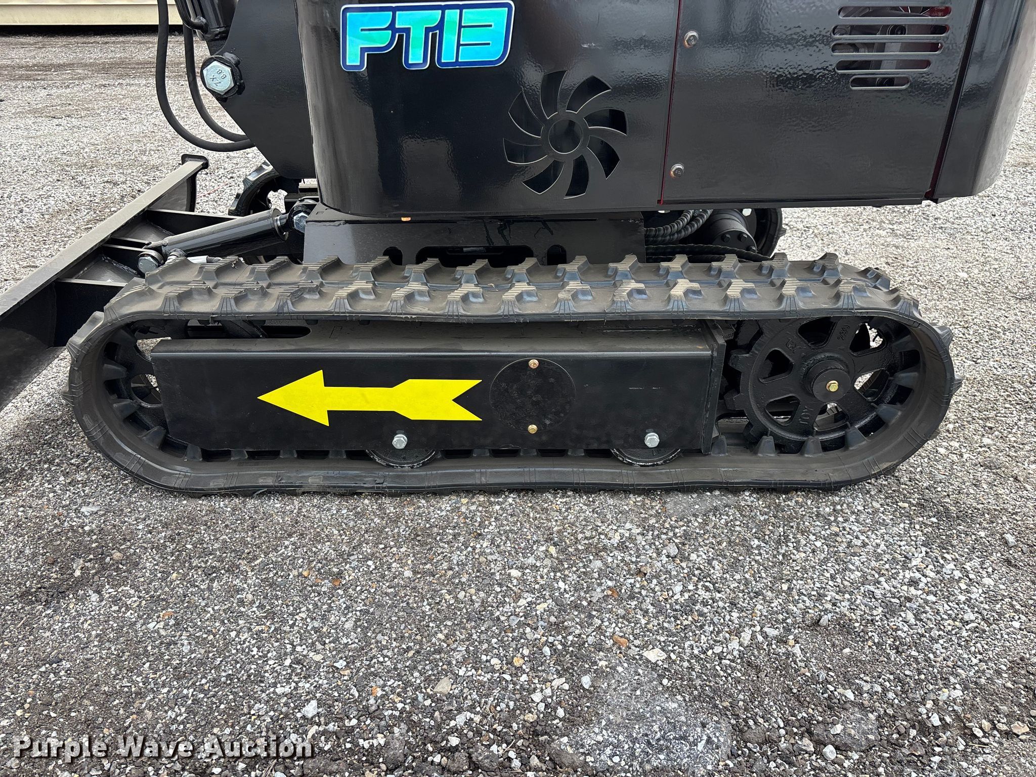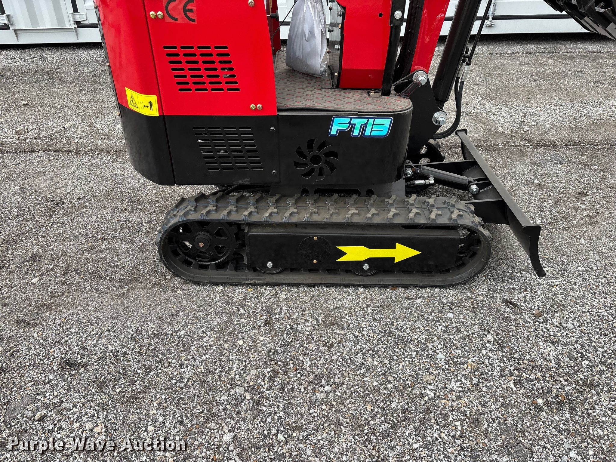 Future FT13 mini excavator. Hours: 0.1 on meter, Serial: 13J251222. Engine Displacement: 420 cc, Cylinders: 1, Fuel type: Gas. Transmission Hydrostatic. Features Auxiliary hydraulics, Backfill blade Width: 36", Boom Standard, Stick Stick length: 31", Thumb: Manual, Bucket Width: 16", Teeth: 3. Tracks Width: 7", Rubber. Rockin H Truck & Equipment Service LLC. Miami, OK 74354
