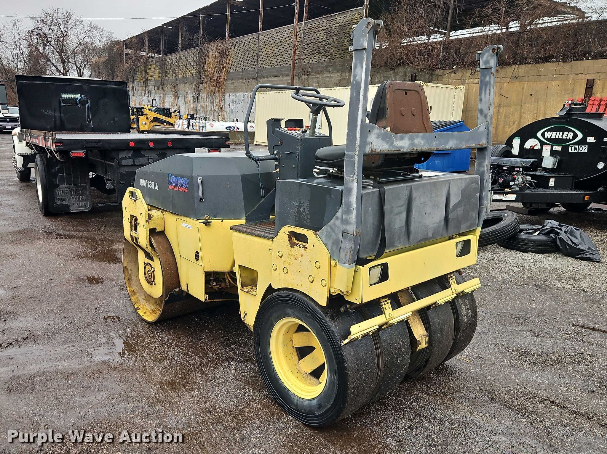 2006 Bomag BW138AC combination vibratory roller. Hours: 3,315 on meter, Serial: 101650151040. Engine Deutz F3L 1011 F, Displacement: 2.049 L, Cylinders: 3, Fuel type: Diesel. Transmission Hydrostatic. Operators station Vandal cover. Features Drum type: Smooth, Front drum Width: 54", Diameter: 31", Rear drum, Drum scrapers: Front, Rear, Water spray applicator: Rear. Tires Size: 225/75-16, Steel wheels. Notes Jump start required during on-site data collection. Conway Asphalt and Paving. Kansas City, MO 64132
