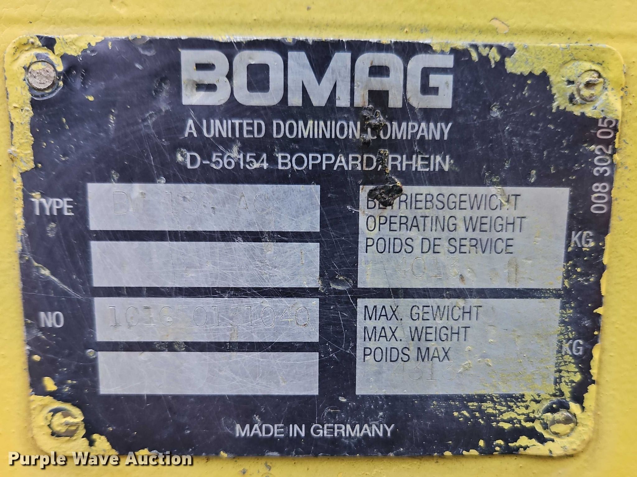 Purple Wave is selling a used Single Drum Roller Compactor in Missouri. This item is a 2006 Bomag BW138AC combination vibratory roller with the following: Hours: 3,315 on meter, Serial: 101650151040