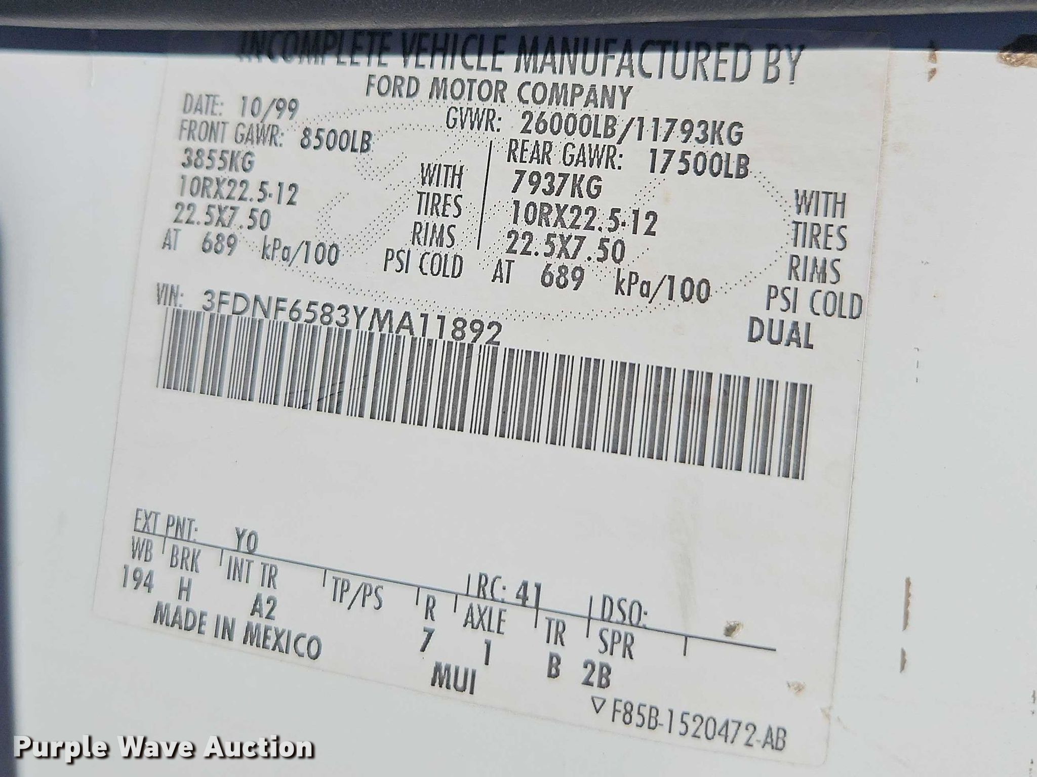 - VIN: 3FDNF6583YMA11892