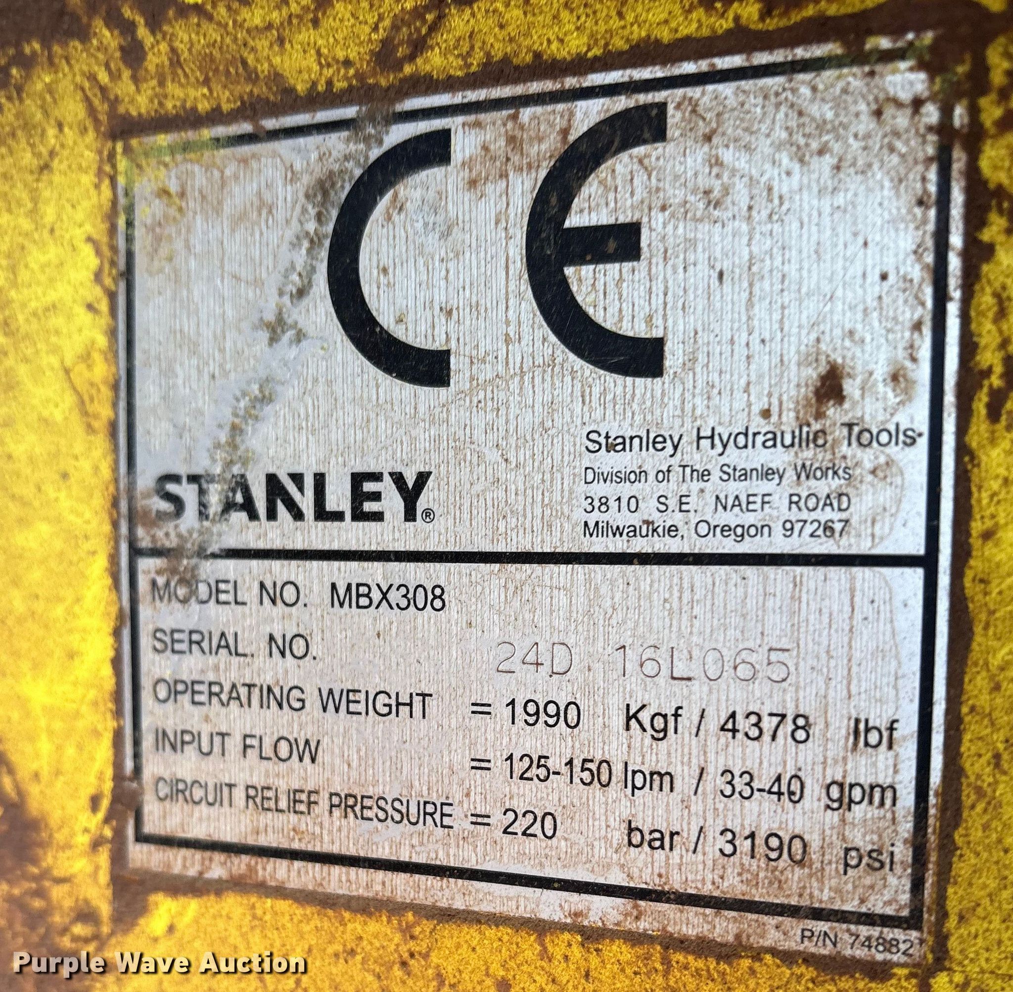 Purple Wave is selling a used Breaker or Hammer in Texas. This item is a Stanley MBX308 breaker with the following: Serial: 24D16L065