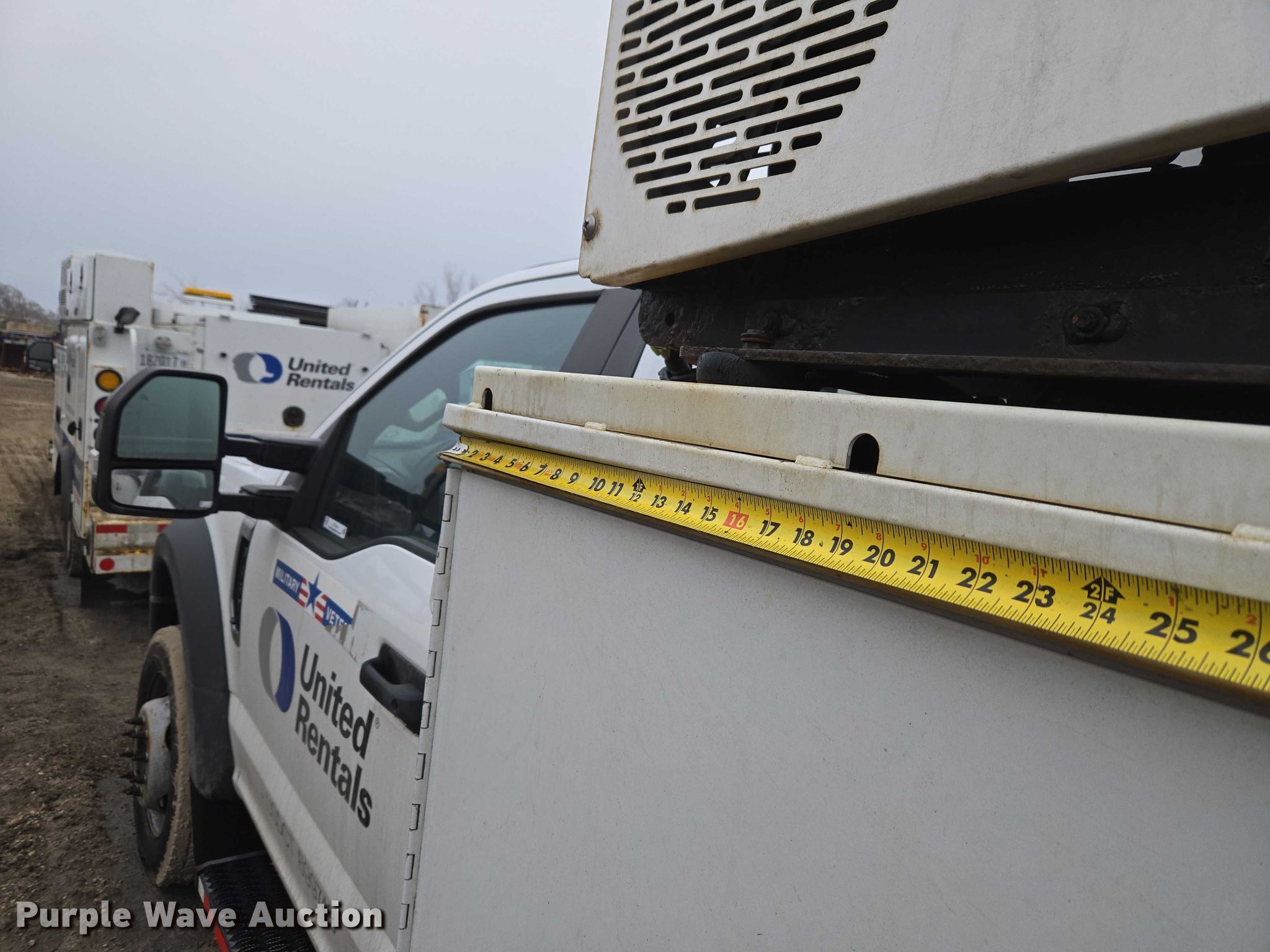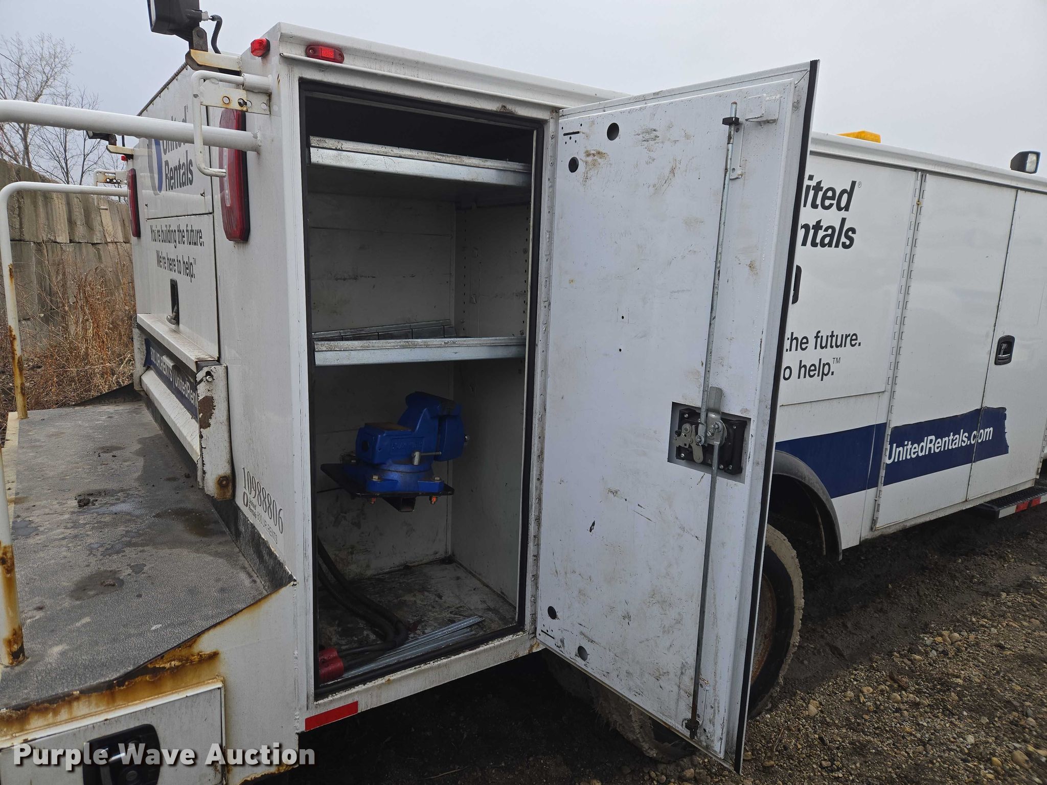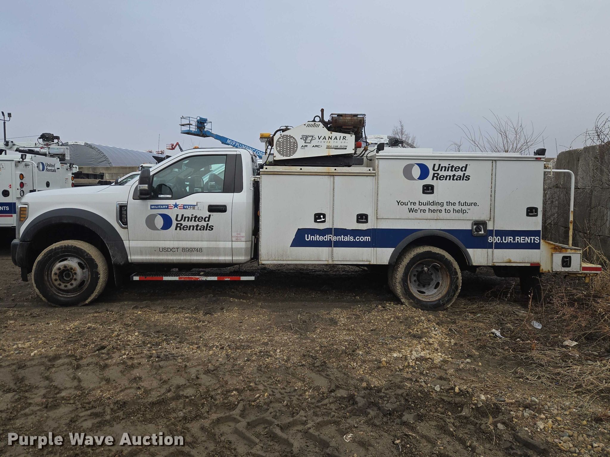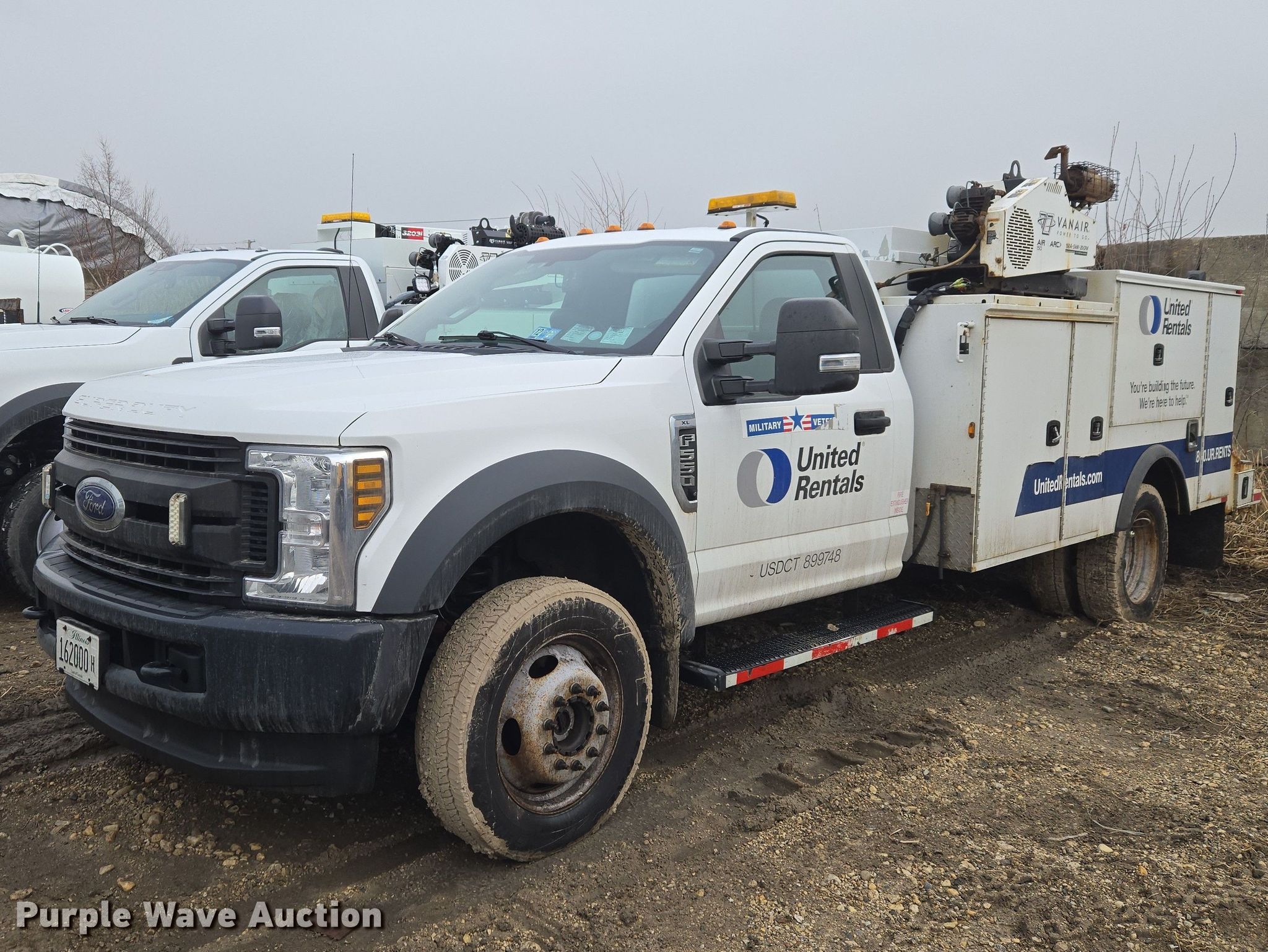 2019 Ford F550 Super Duty utility / service truck. Miles: 150,875 on odometer, VIN: 1FDUF5HY3KEE45874, Unit #: 10988806. Engine Ford, Displacement: 6.8L, Cylinders: 10, Fuel type: Gas. Transmission Automatic. Chassis Four wheel drive, Axles: Single, Suspension: Spring, Brakes: Hydraulic, GVWR: 19,500 lbs. Interior AC, Heat, Heated mirrors, Power windows, Power locks, Cruise control, Auxiliary controls, Brake controller. Features Bed Utility bed, Knapheide, Length: 13' 8", Width: 7' 10", Torch bottle rack Tanks not included, Welder/generator VanAir Air N Arc 150, Hours: 240 on meter, Fuel type: Gas, 240V outlets: 1, 120V outlets: 1, Welder type: CC, CV, Stick (AC/DC), Air compressor VanAir Air N Arc 150, Kohler Command Pro, Oil/lube system Reservoirs Motor oil, Used oil, Nozzles, Pump.. Tires Size: 225/75R19.5. Notes Suspension issues, Brake issues , Unit must be towed or hauled. Buyer is hereby notified that seller has assigned its rights (but not its obligations) in the agreement to sell the asset(s) described herein to United Rentals Exchange, LLC., a qualified intermediary, as part of Section 1031 like-kind exchange program. Title distribution may be delayed up to 60 days from verification of funds. United Rentals. Elk Grove Village, IL 60007