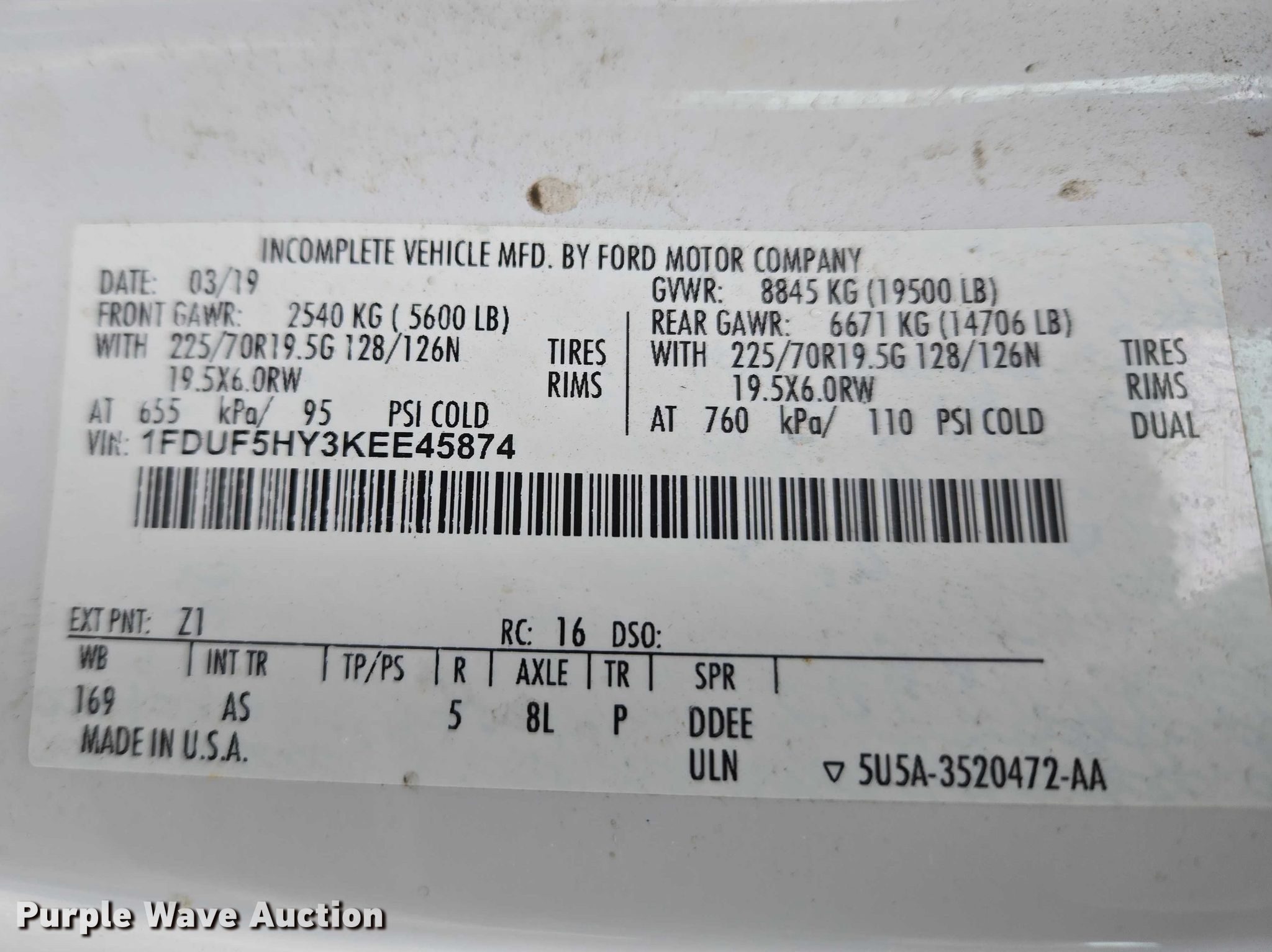 - VIN: 1FDUF5HY3KEE45874