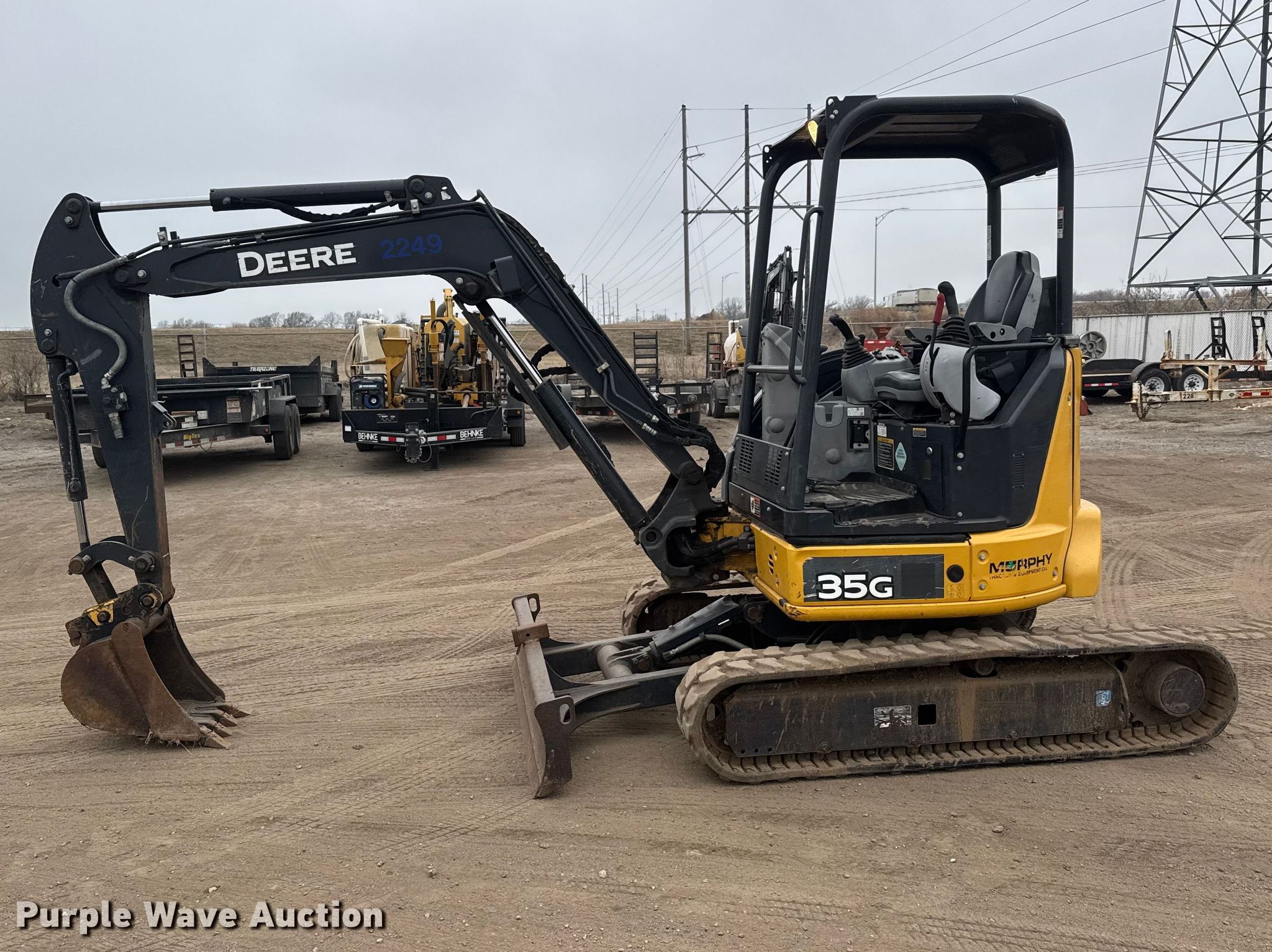 Purple Wave is selling a used Mini Excavator in Kansas. This item is a 2020 John Deere 35G Mini excavator with the following: Hours: 2,182 on meter, Serial: 1FF035GXCLK289409, Unit #: 2249